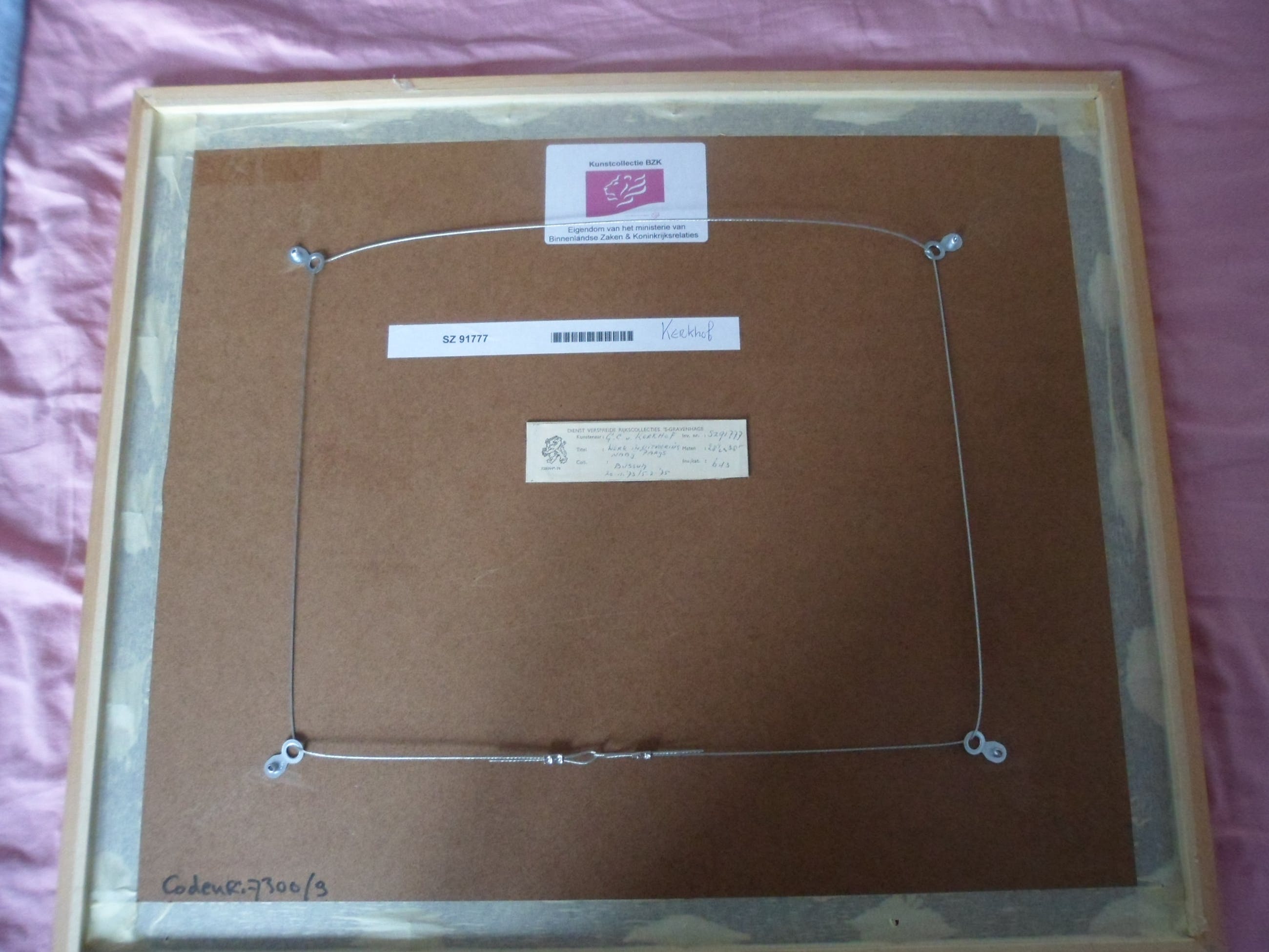 Ingelijst: Ingelijst in een houten lijst met passe-partout en glasplaat.