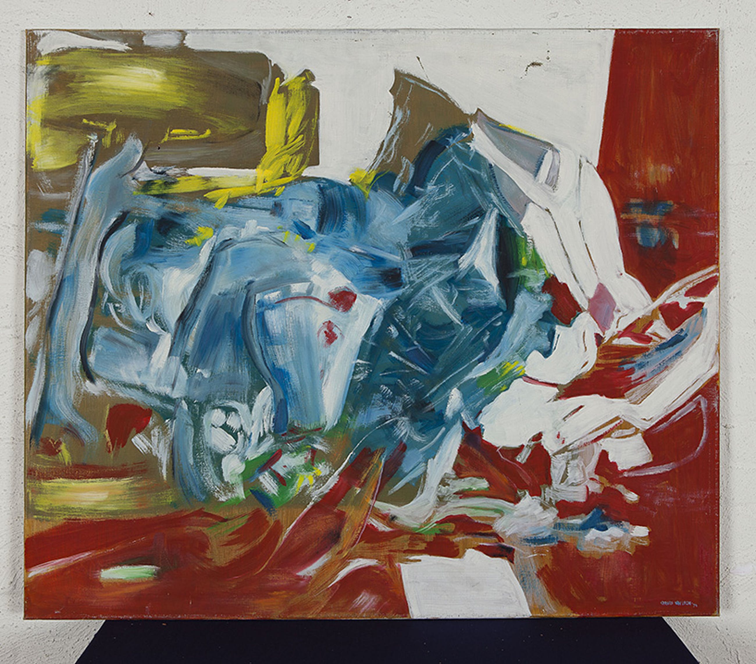 Het doek is gescheurd in het witte vlak aan de rechts bovenzijde. | |