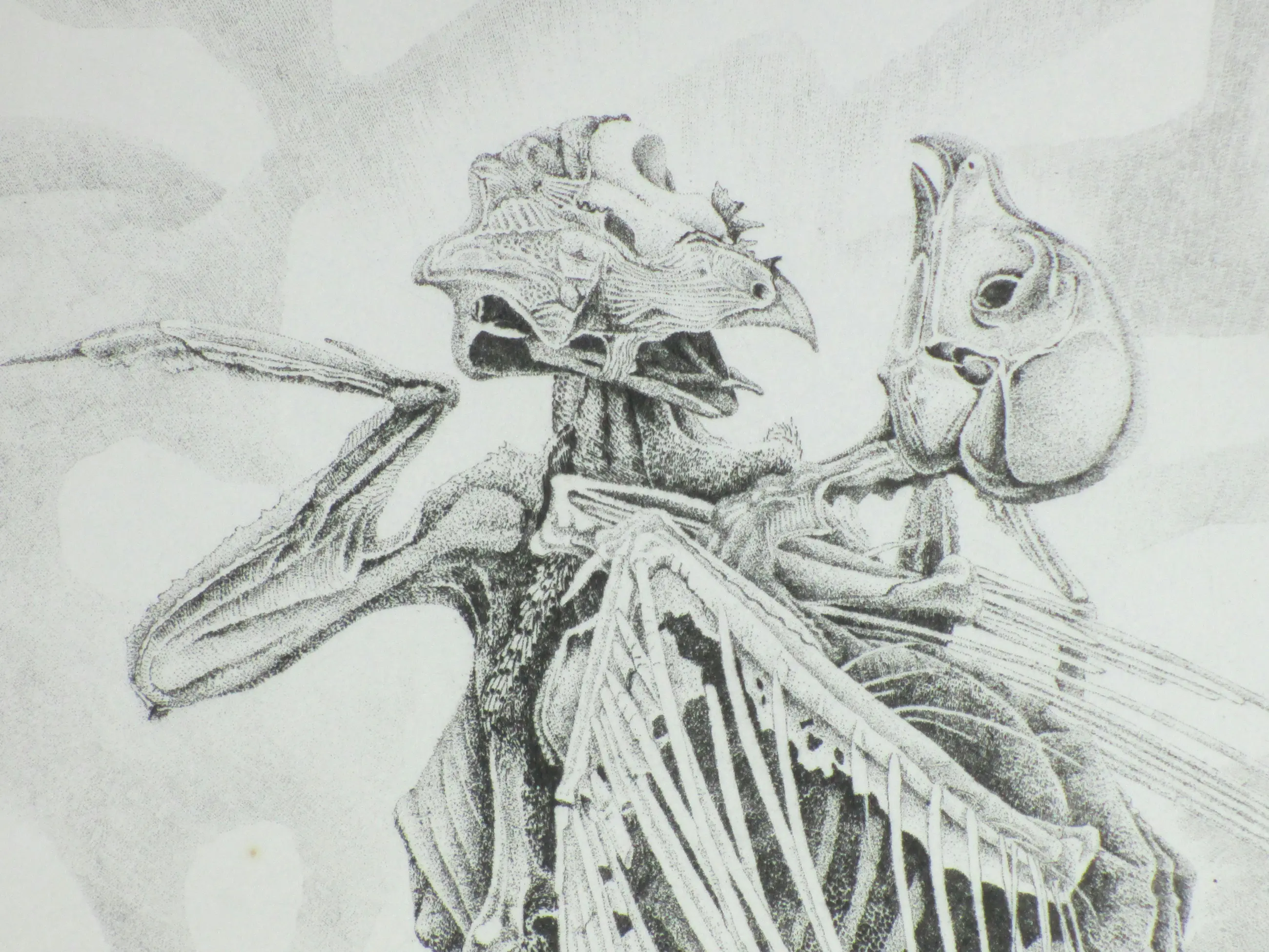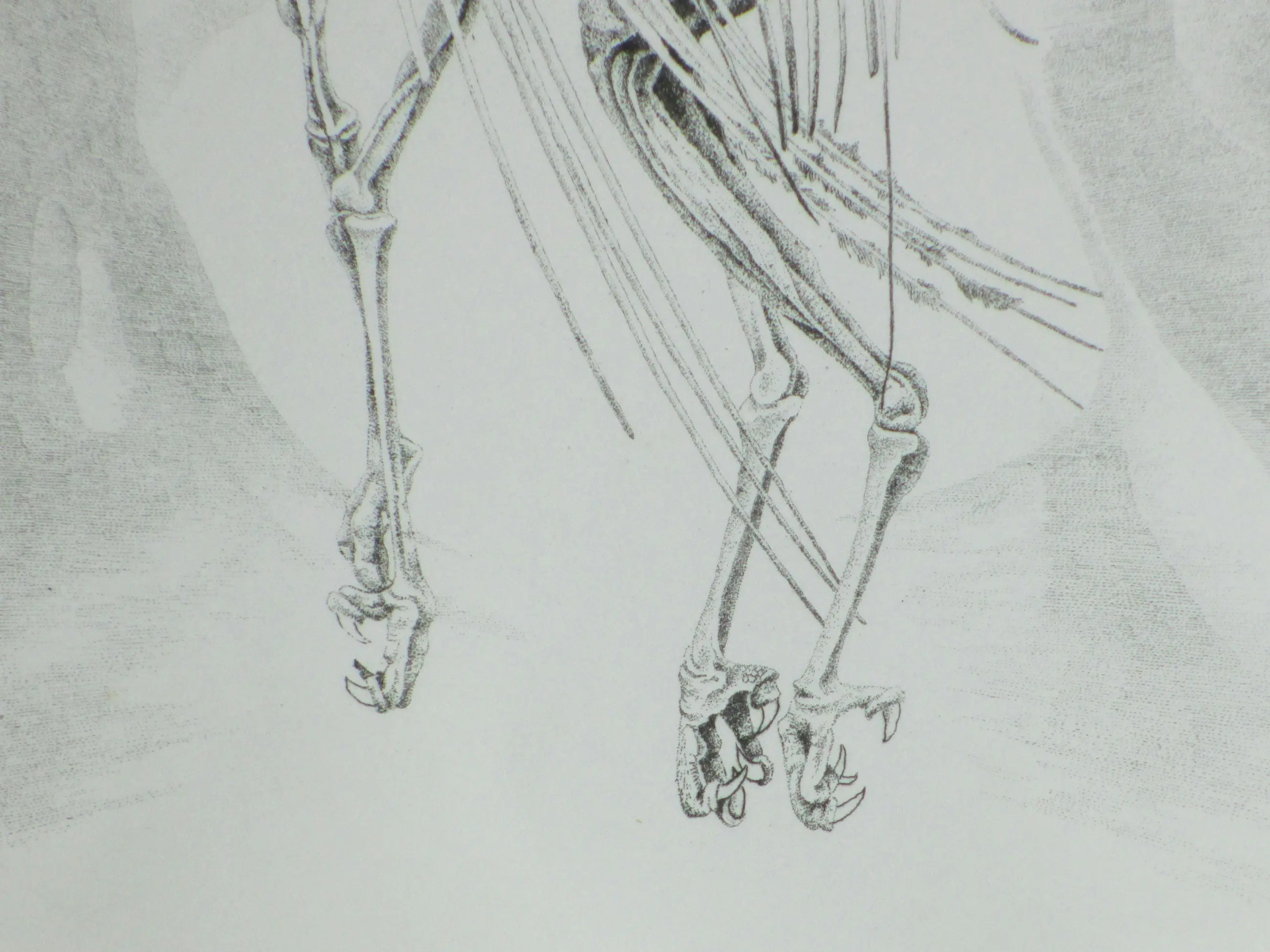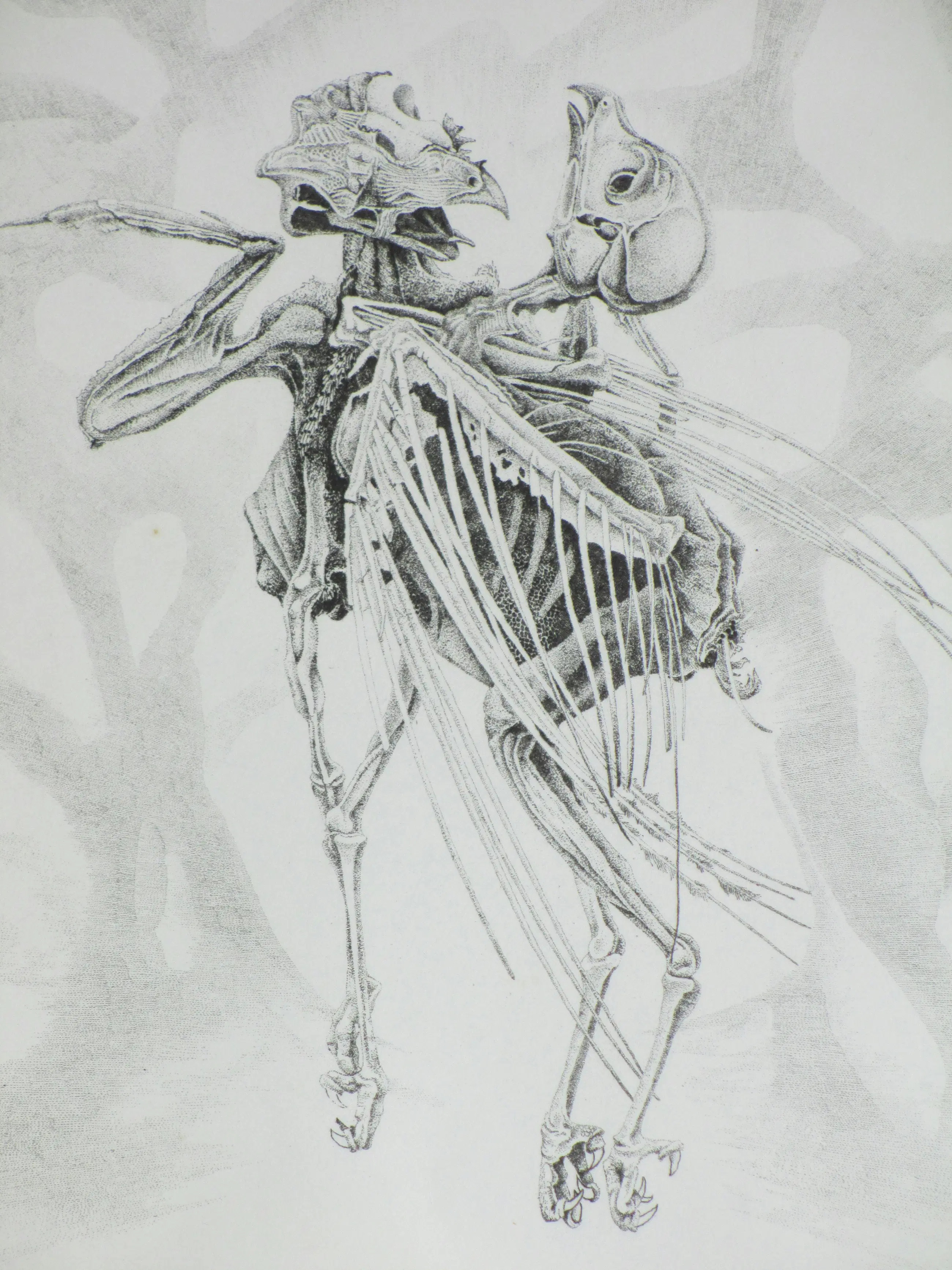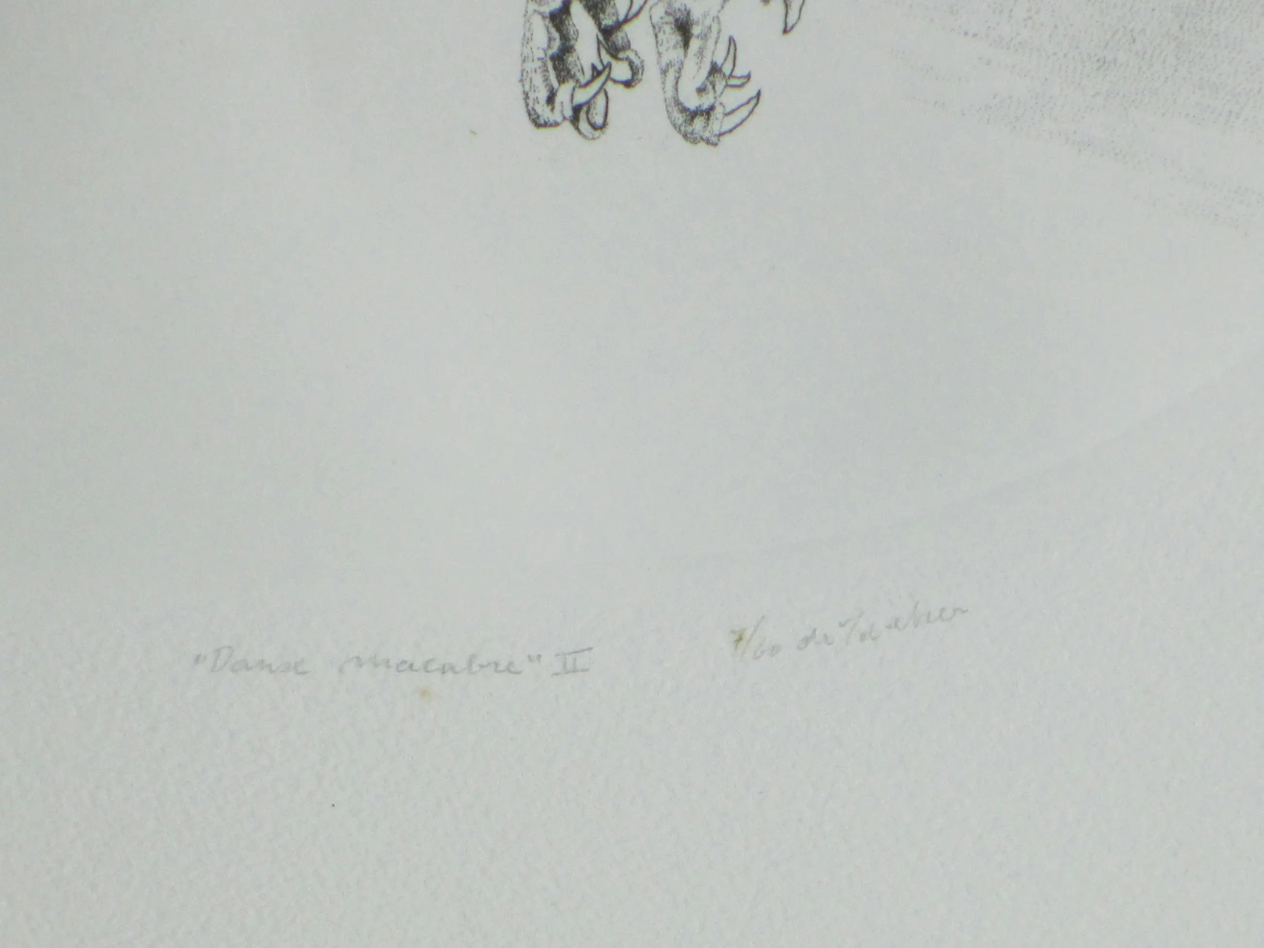 Ets in ovaal door Gerard van Rooy Voorstelling van twee vogelskeletten in een macabere dans Losbladig, beeldmaat 36x30, bladmaat 56x39 Gesigneerd en gedateerd in potlood l.o.: 'G v Rooy '80' Getiteld in potlood m.o.: "Danse macabre" II Genummerd en annotatie in potlood r.o.: '7/60 dr v/d etser' Authenticiteit volledig gegarandeerd