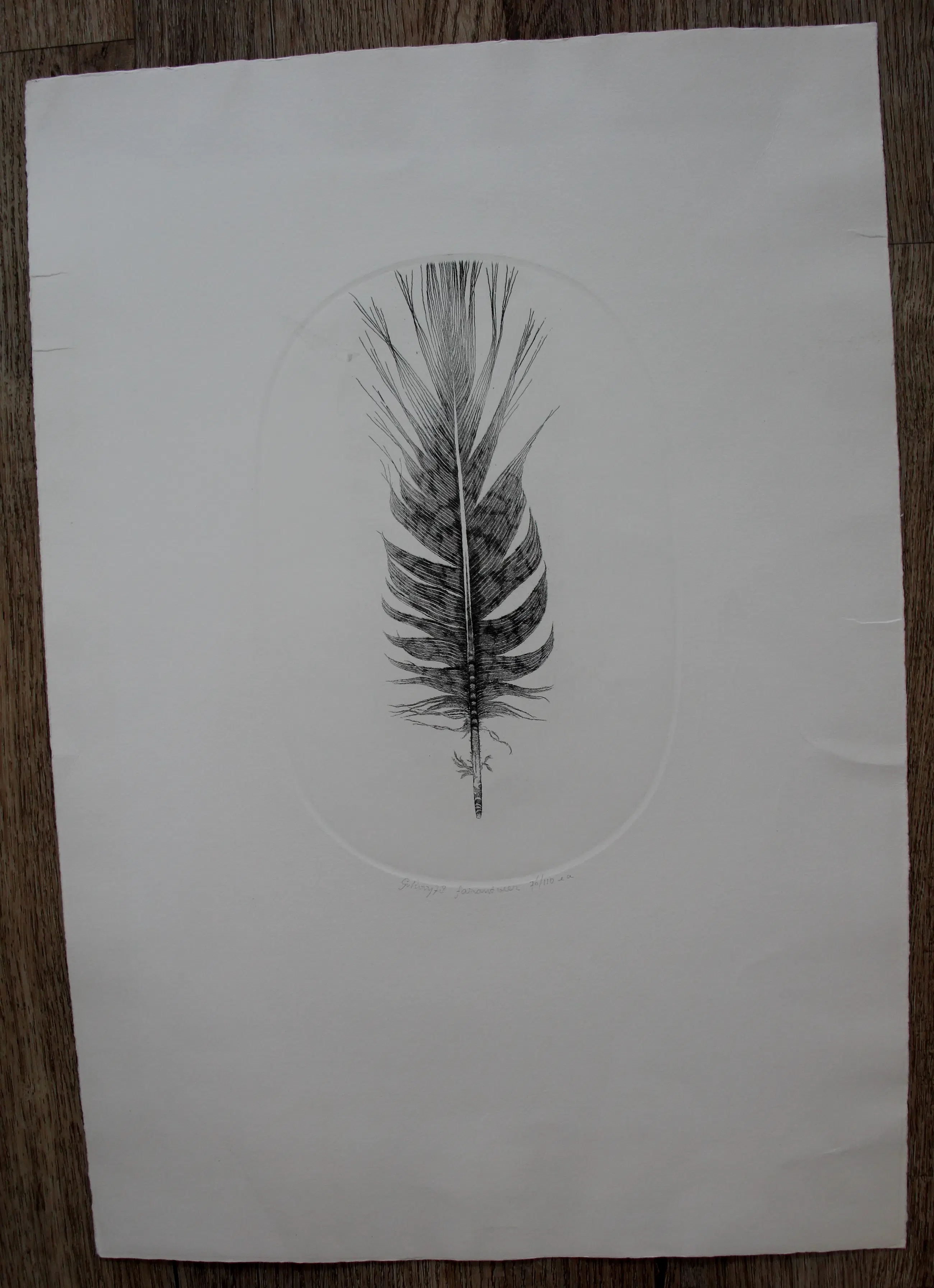 Ets van Gerard van Rooij. Titel: Fazantveer. Jaar: 1978. Nummer: 76/110, e.a. Afmetingen blad: H56,5 x b39cm. Afmetingen voorstelling: H28 x b19cm. Het werk is links onderaan, met potlood, gesigneerd door de kunstenaar. De authenticiteit van het, aangeboden, werk wordt volledig gegarandeerd. Een certificaat van echtheid kan, op aanvraag, worden gemaild.