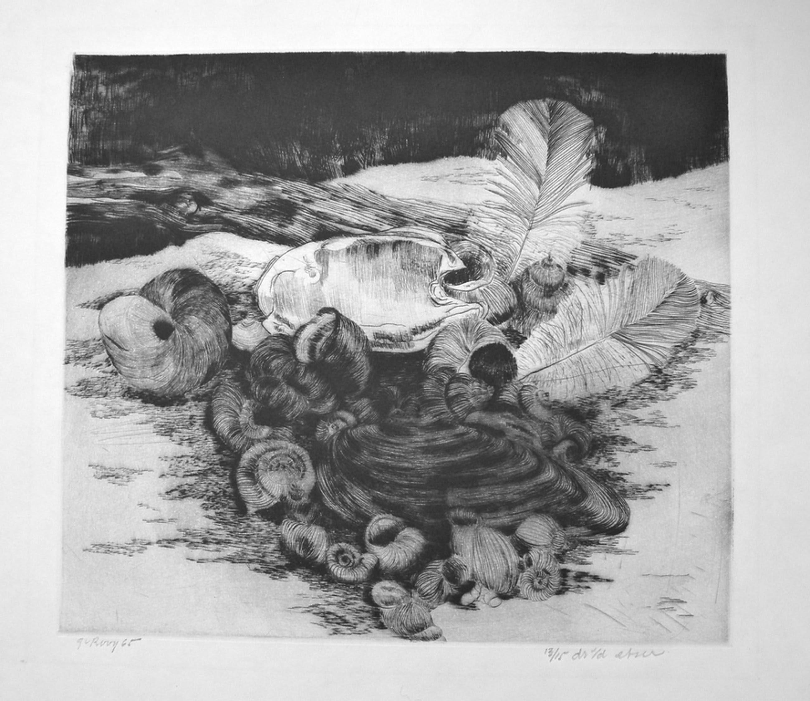 'Strandstilleven met schelpen, slakken en veren'