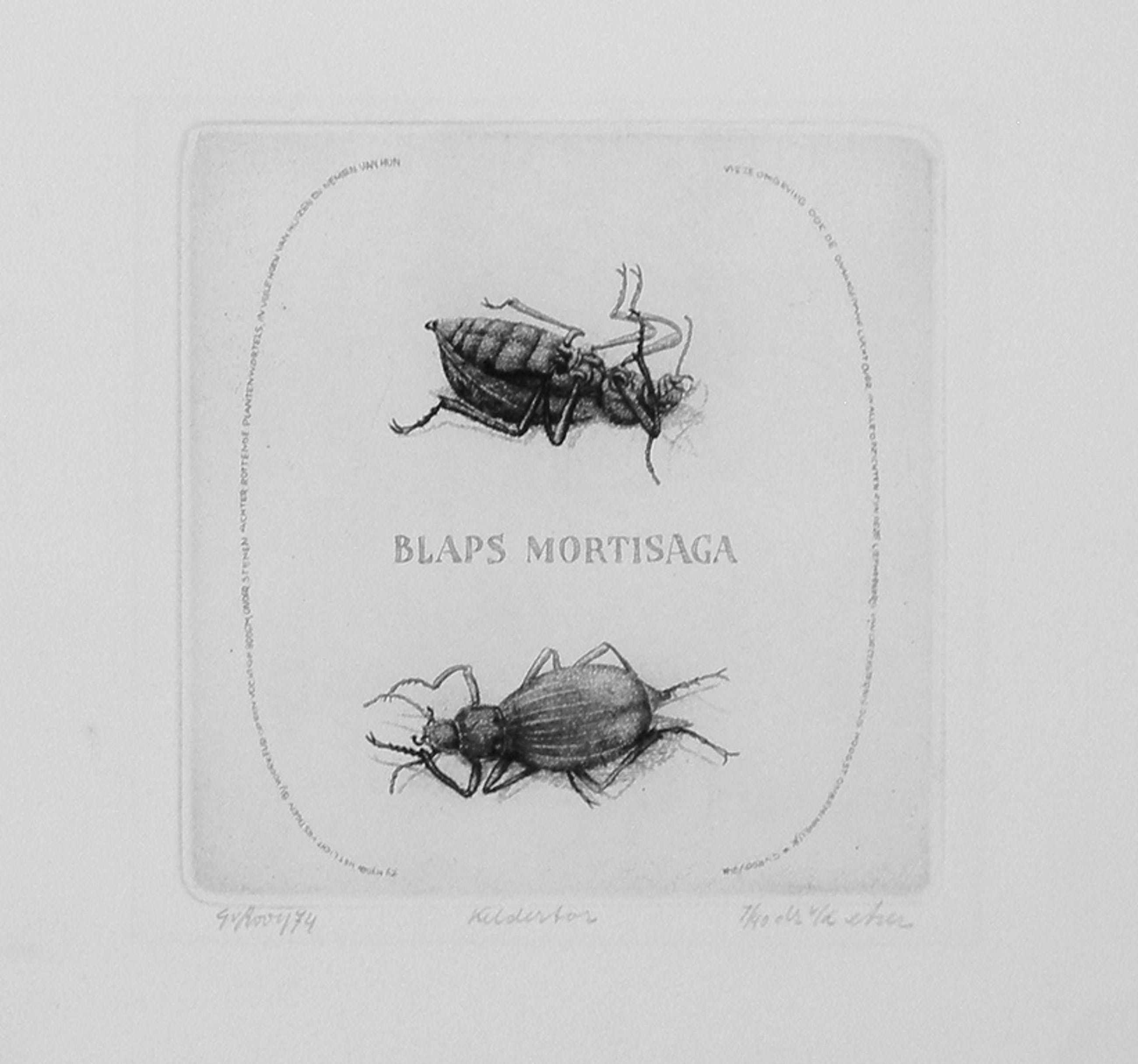 een vroege ets uit 1974: "BLAPS MORTISAGA - Keldertor", druk 7/40