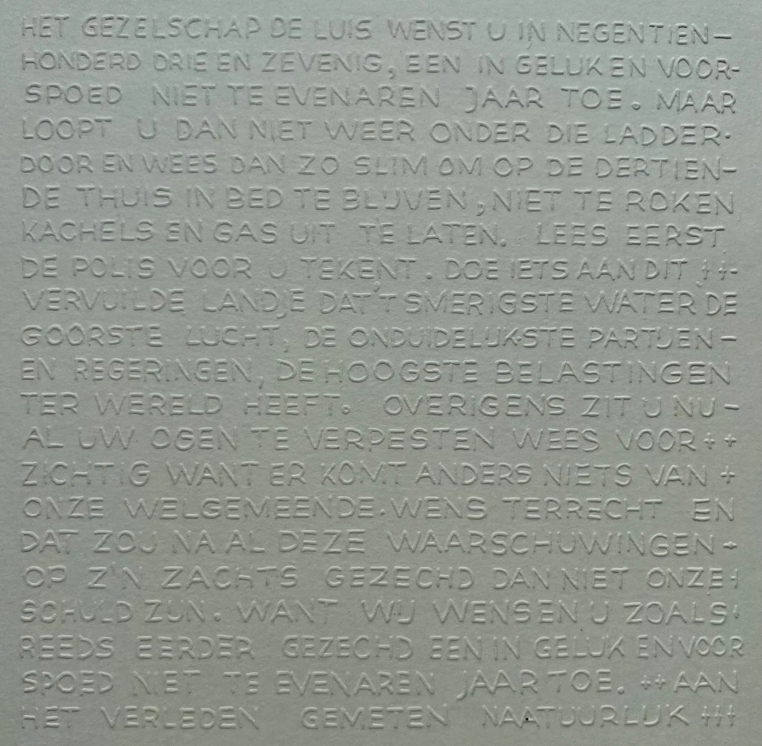Zeer recent hebben we een dikke map overgenomen van een overleden verzamelaar. Vol met speciale uitgaves voor, van en over De Luis. Kijk zeker even bij al onze items en de items in de aftersale. Uitnodigingen, affiches, etsen etc. etc.