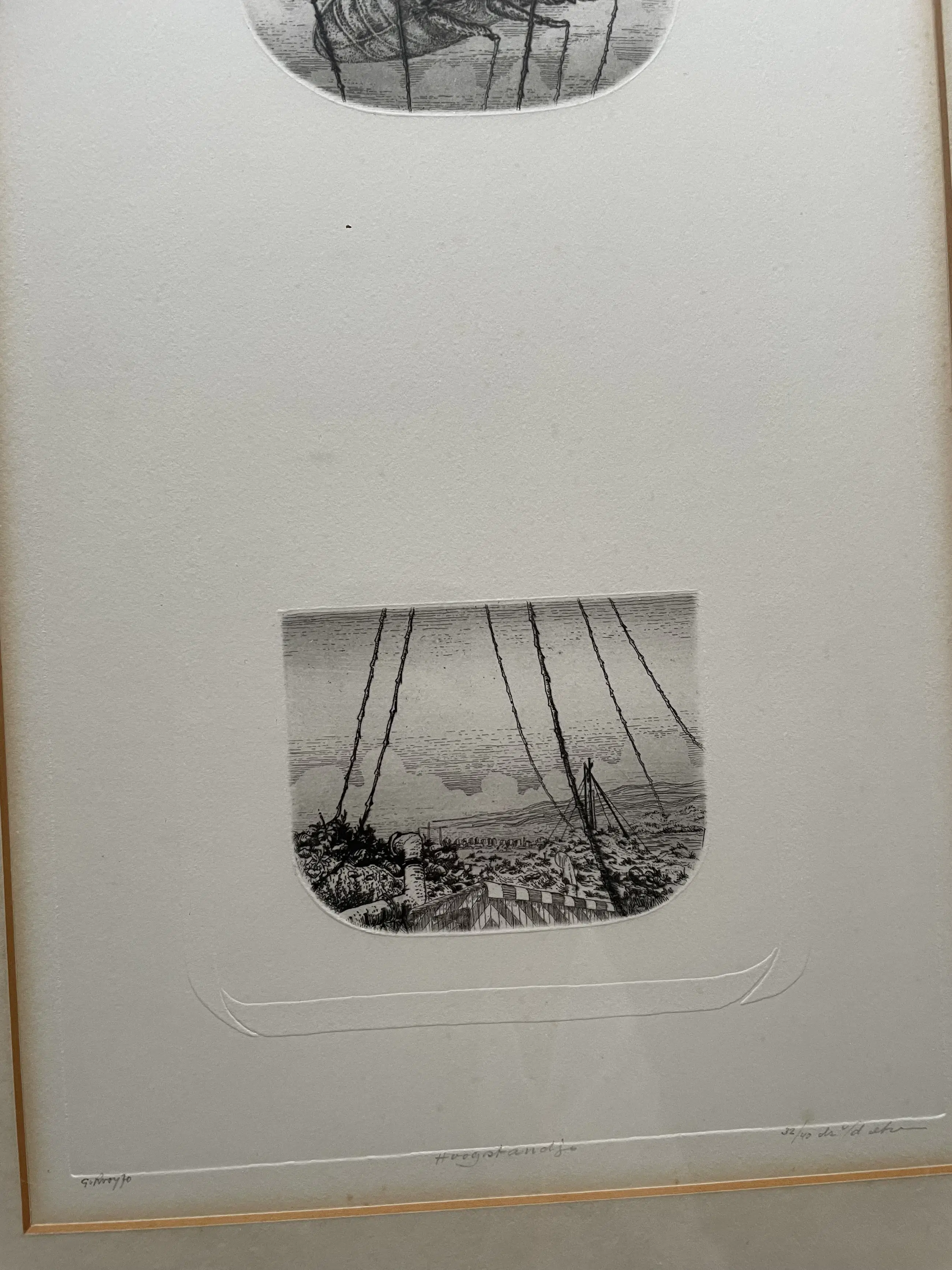 Twee etsen op 1 blad. Met l.o. G van Rooy met potlood, in het midden ‘Hoogstandje’ met potlood en r.o. druk van de etser met potlood.