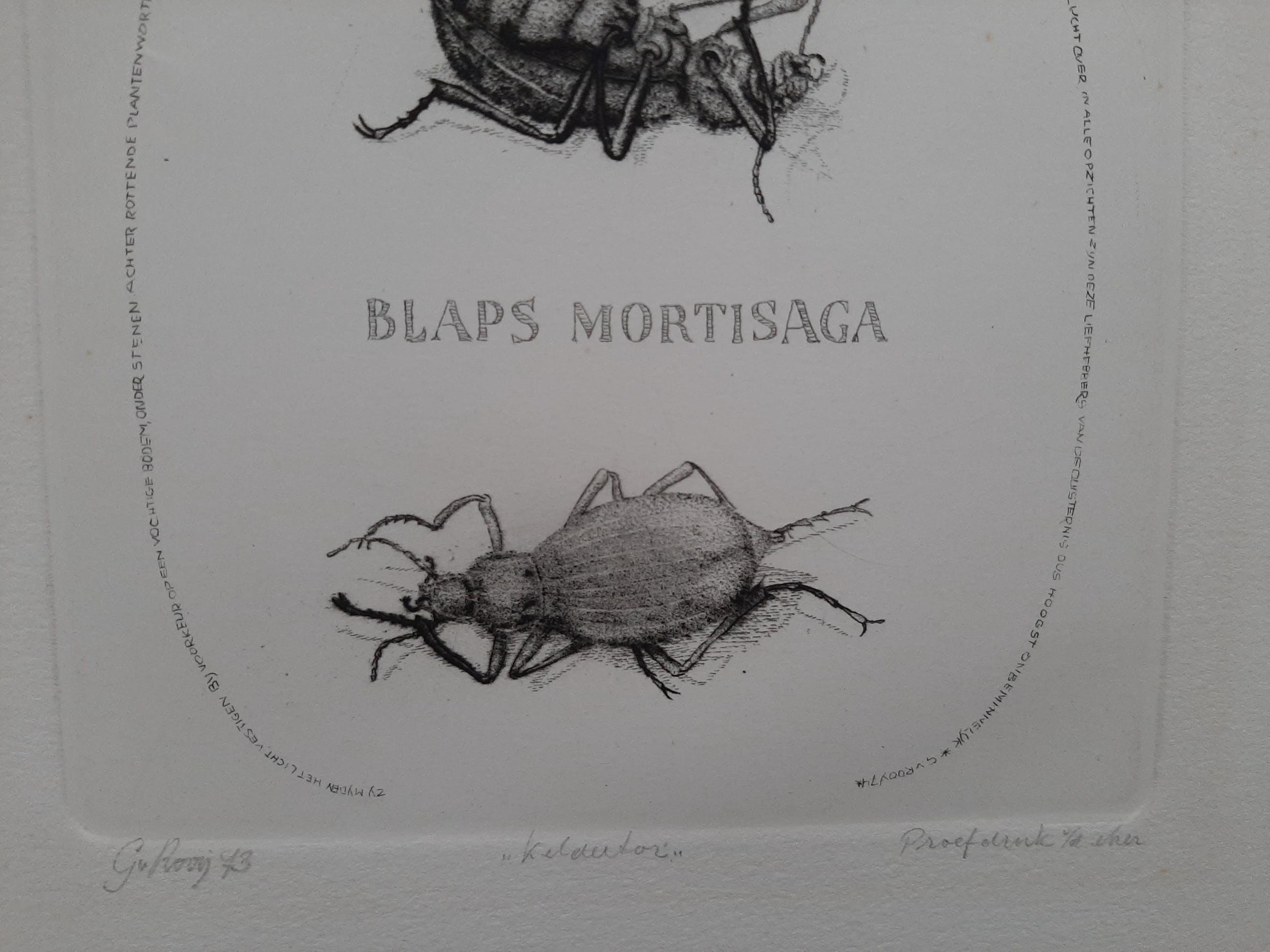 Het is een proefdruk van de etser, vandaar dat de oplage op deze prent niet is vermeld. Het kan zijn dat er nadien kleine wijzigingen zijn aangebracht alvorens de prent in oplage werd gedrukt. Dit is in ieder geval een mooie heldere druk. Van Rooy was een heel goede etser die hoge eisen stelde aan het drukken van zijn werk.