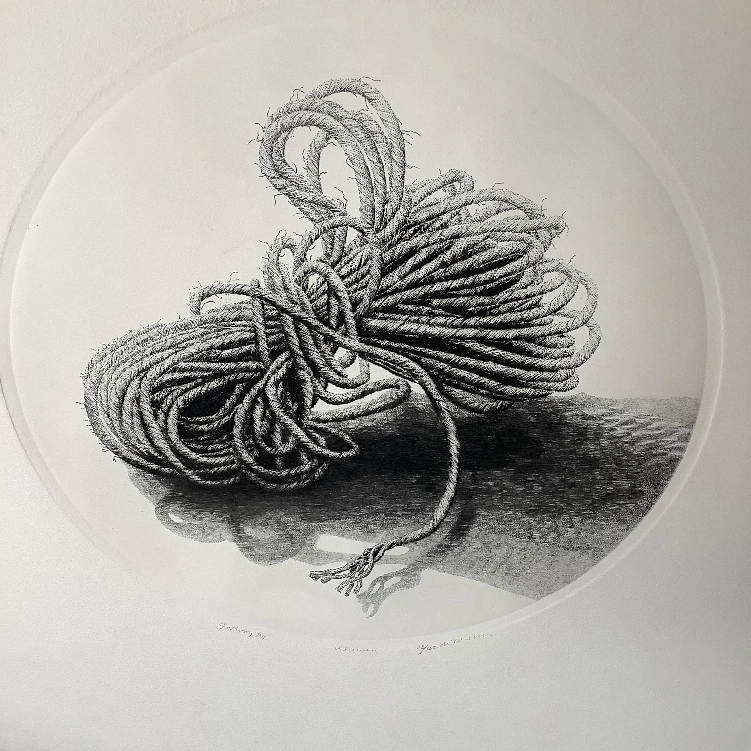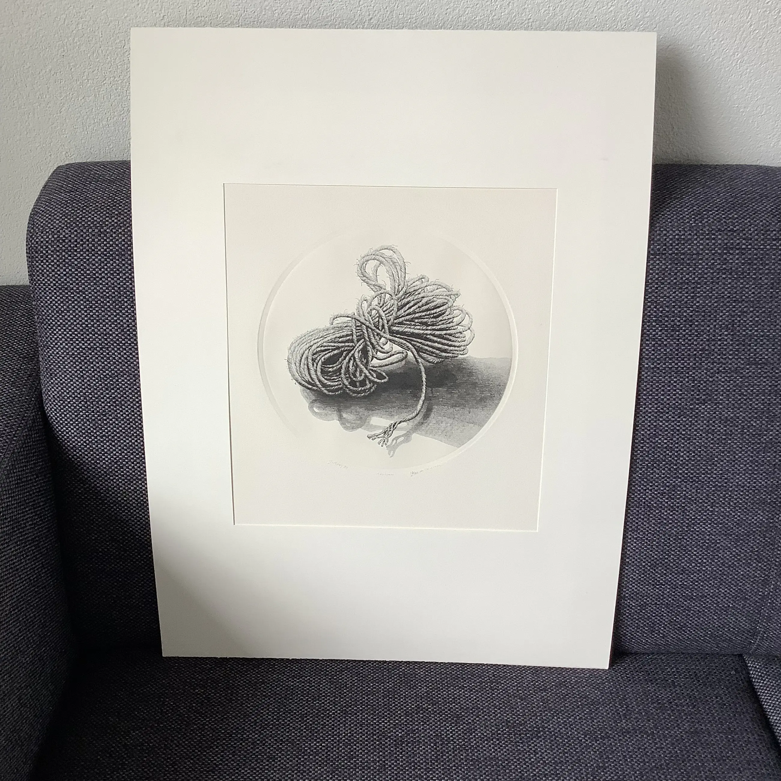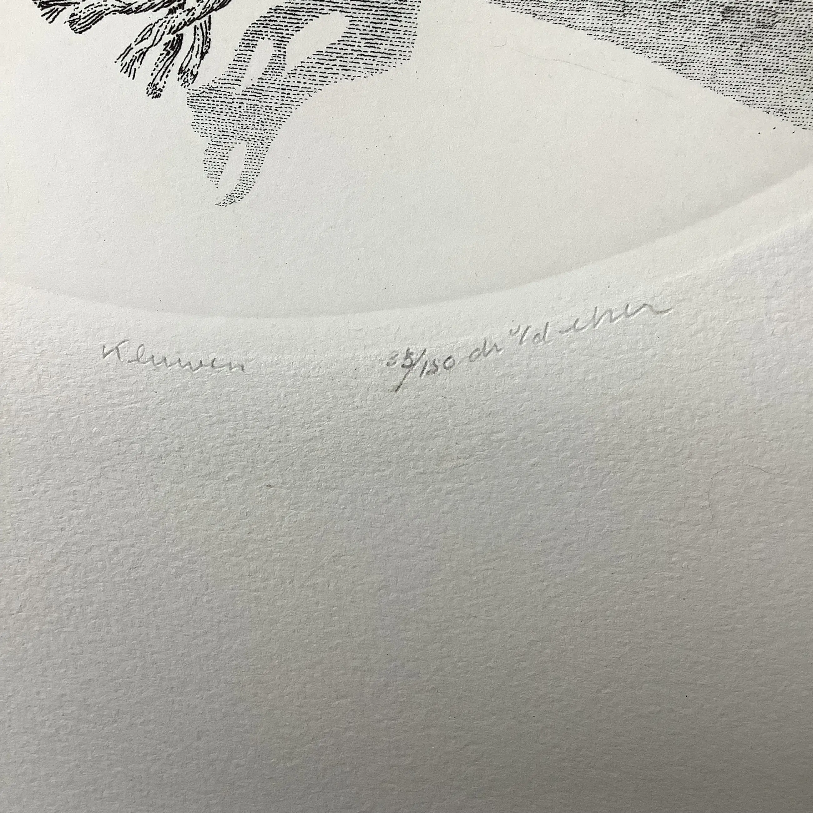 Het passe-partout is aan de bovenkant gevouwen Signatuur en gegevens onderin bij de ets.