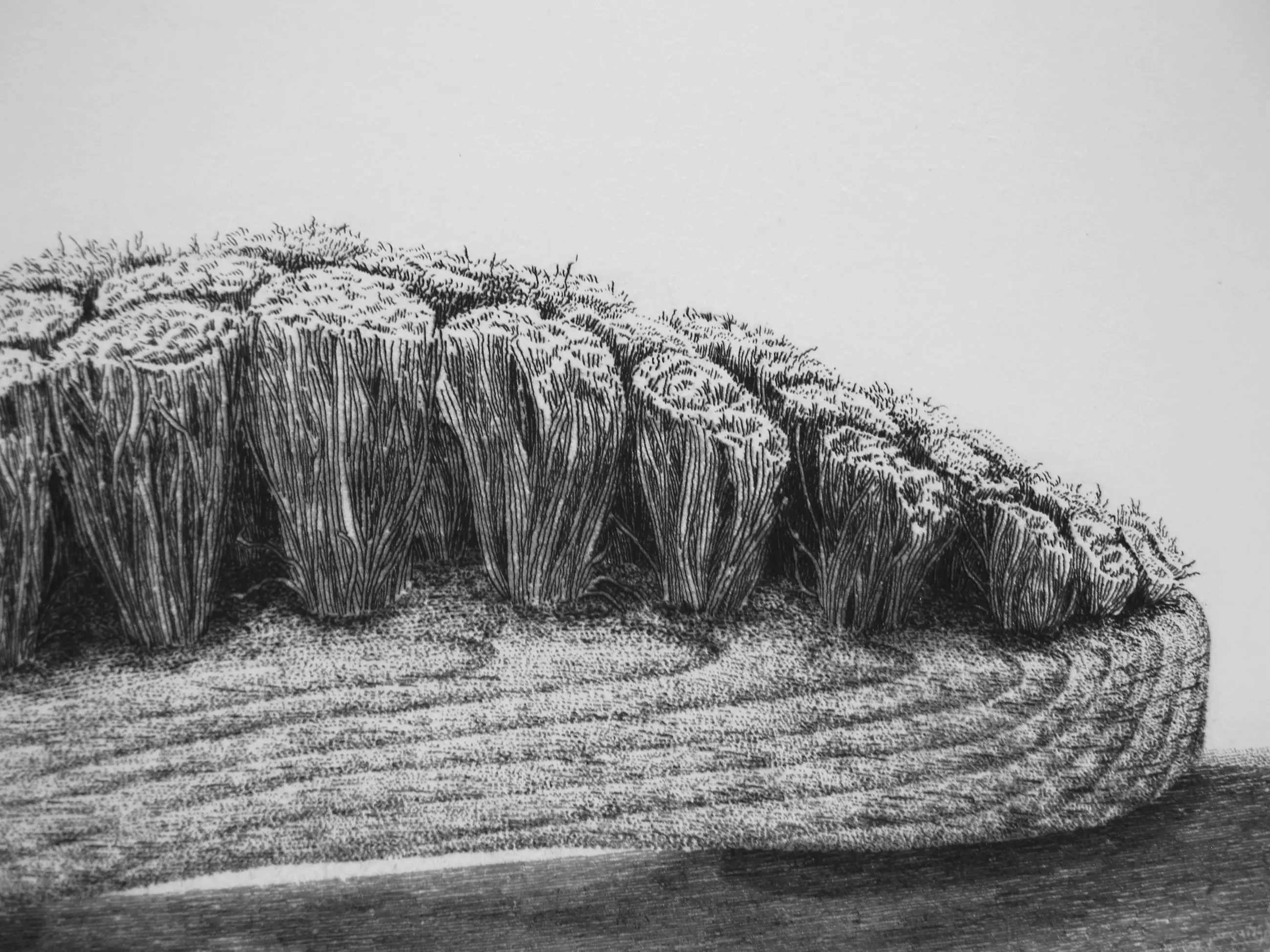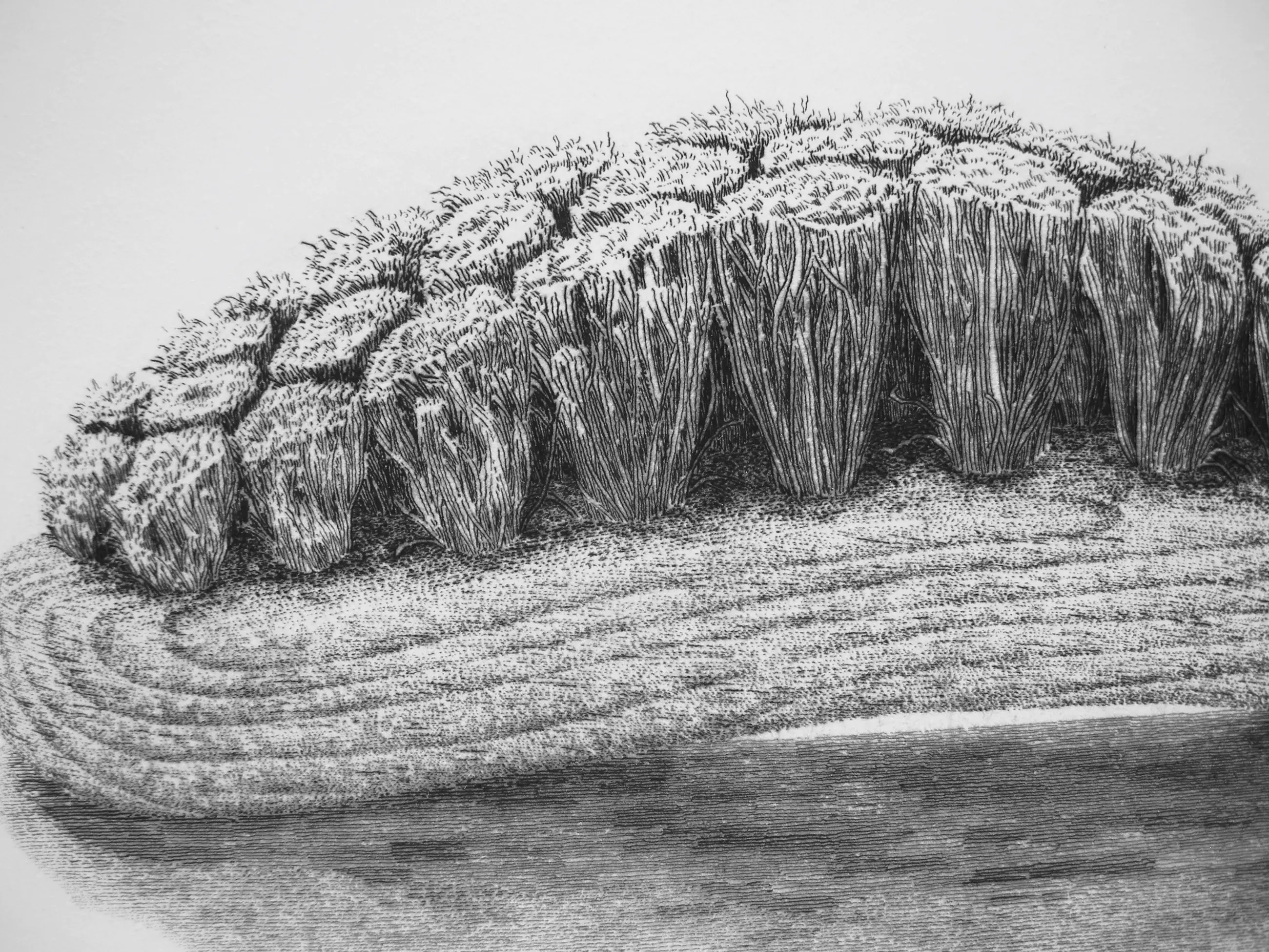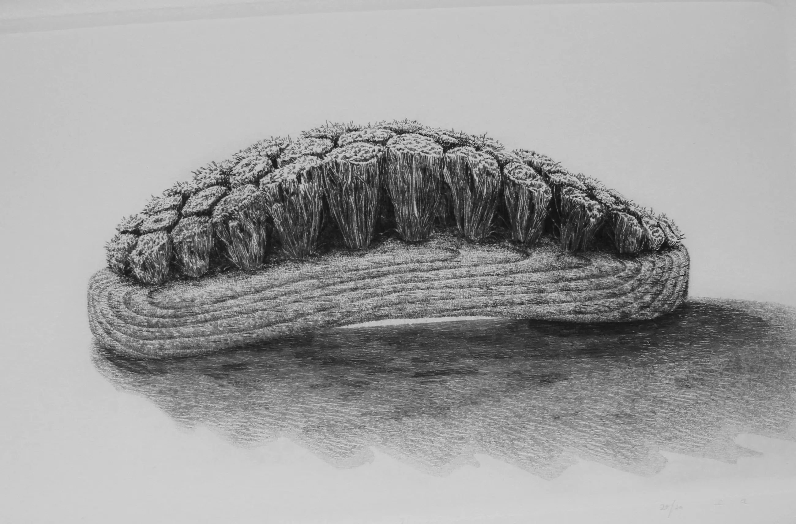 Deze ets is geheel getekend op de plaat in de etsgrond (dus geen aquatint gebruikt). Dit is de 20e druk van de 60 exemplaren. De ets zit in een passe-partout, echter er zit een vlekje op. Ik kan proberen deze zo te versturen (wel groot formaat), dan moet u maar kijken of u het passe-partout kan gebruiken.