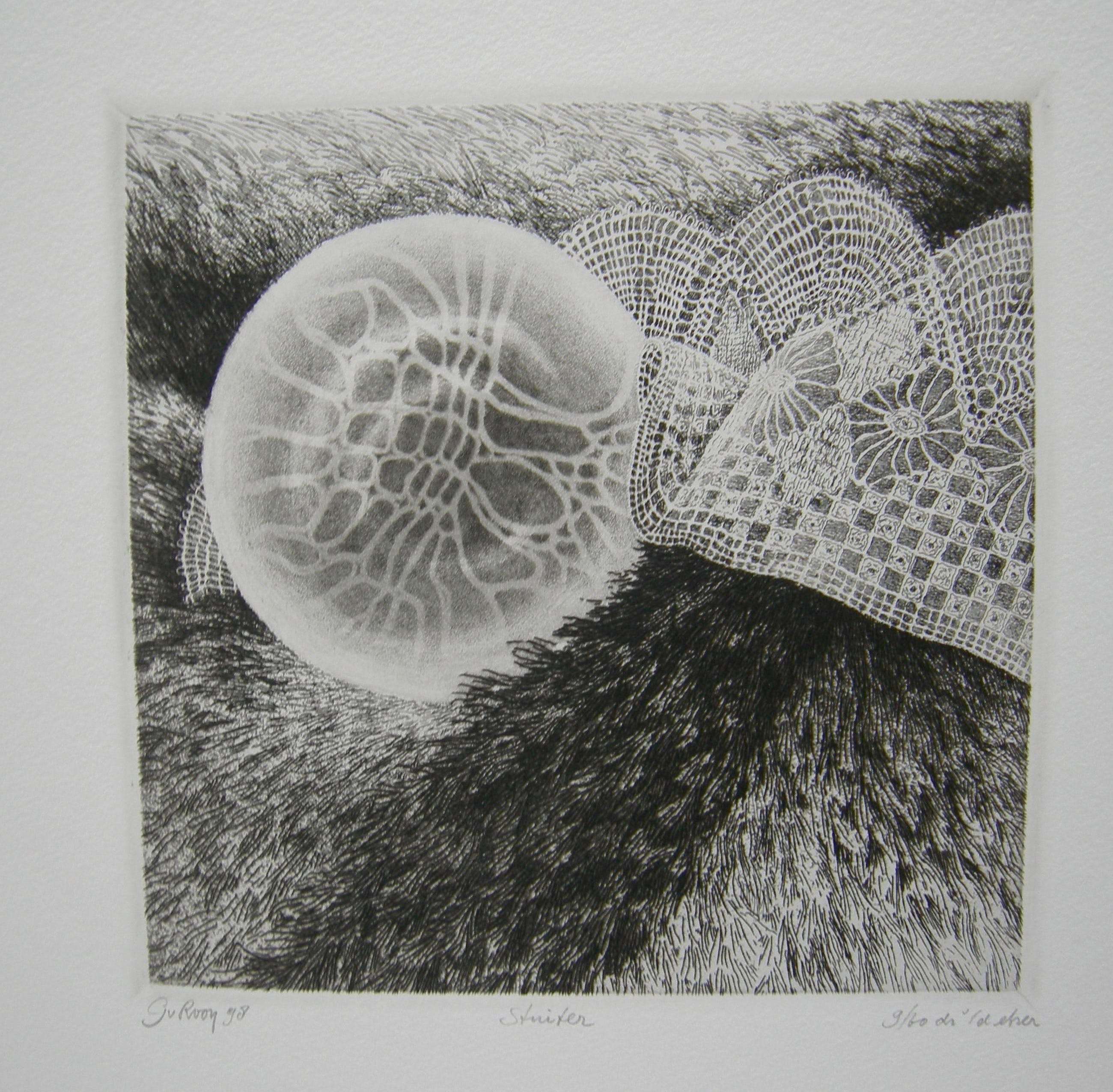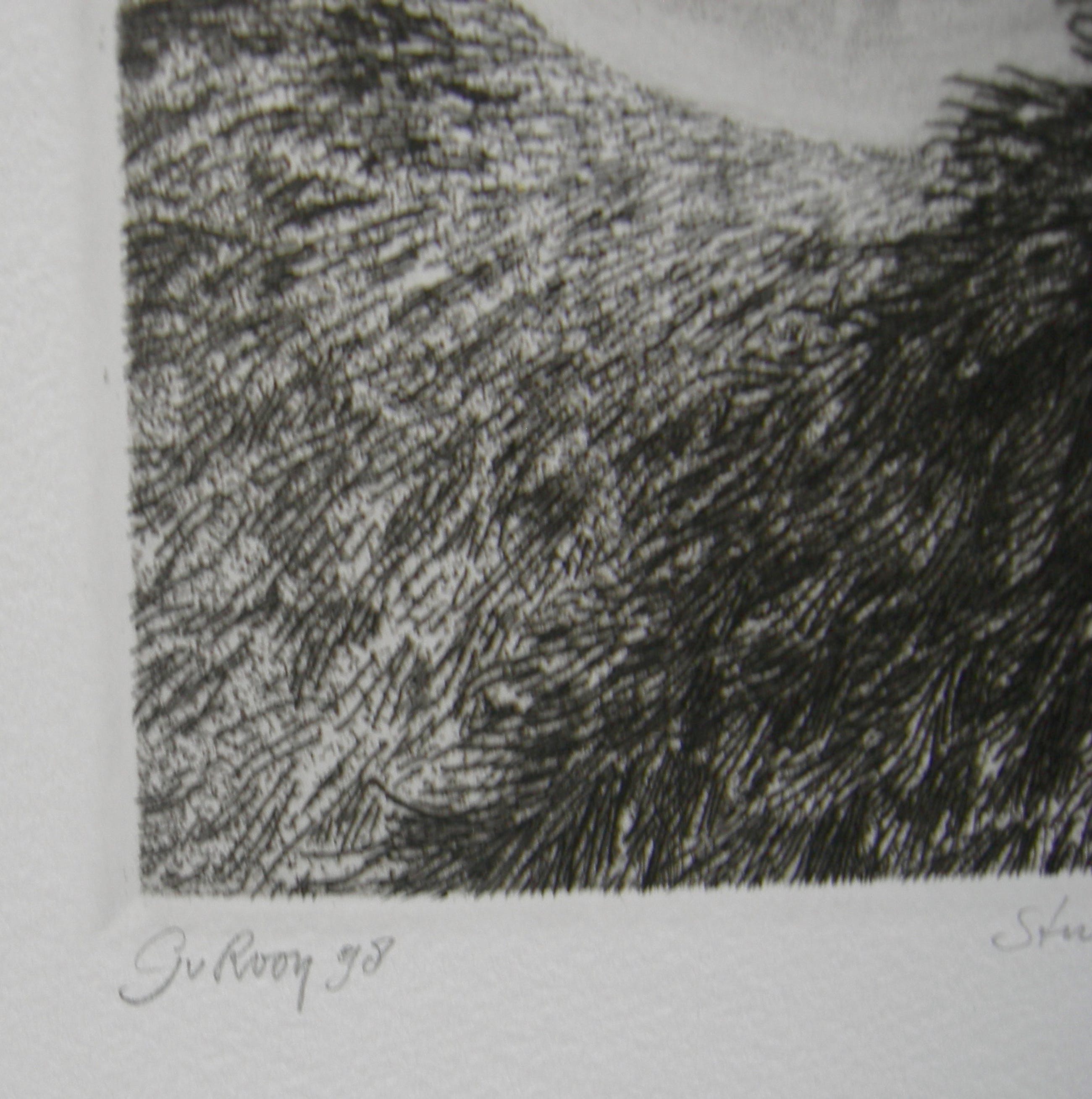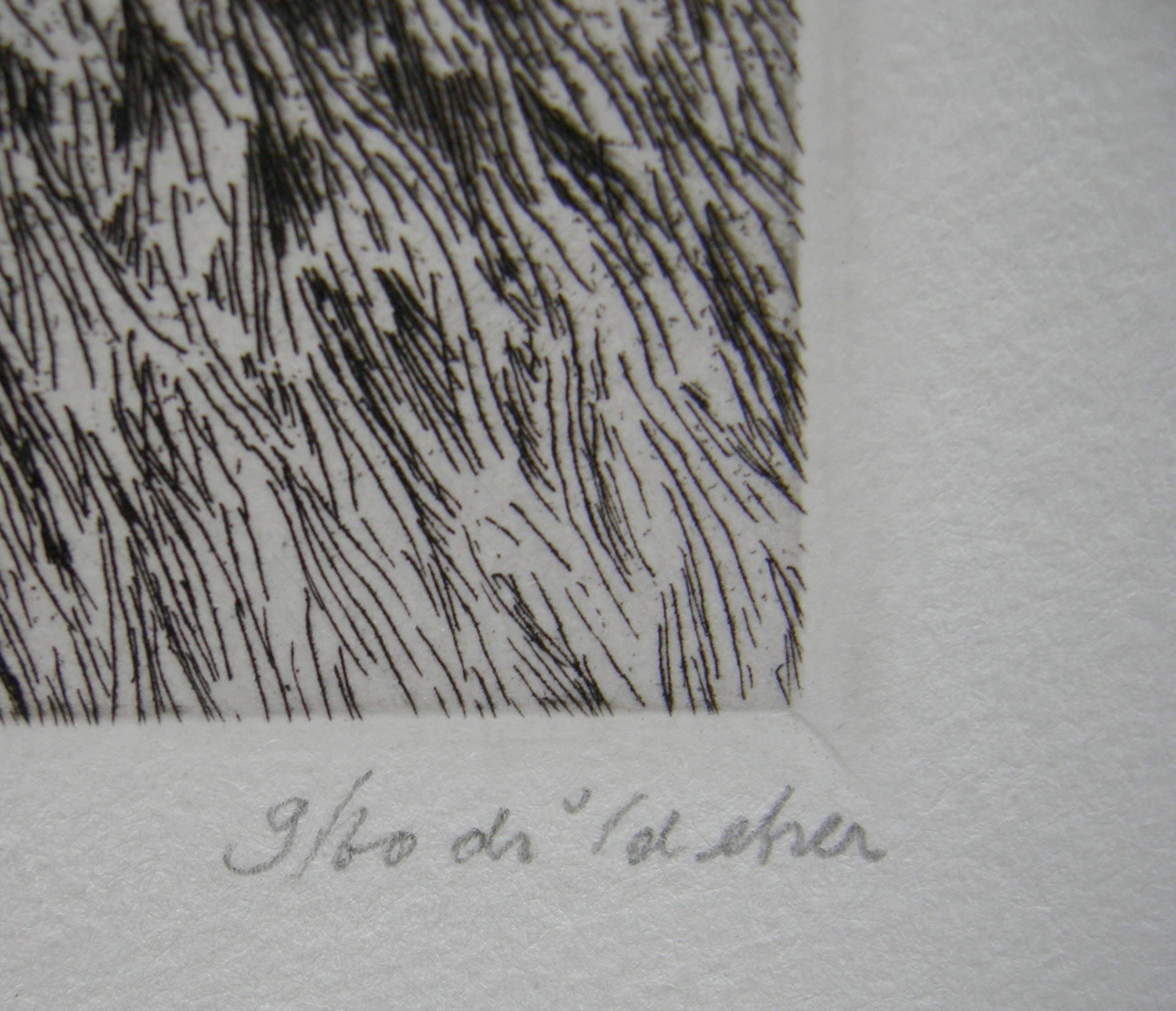 Deze ets 'Stuiter' is door de etser gedrukt op Hahnemühle. Dit is de 9e druk. Nooit ingelijst geweest. Papierformaat is 39 x 28 cm.