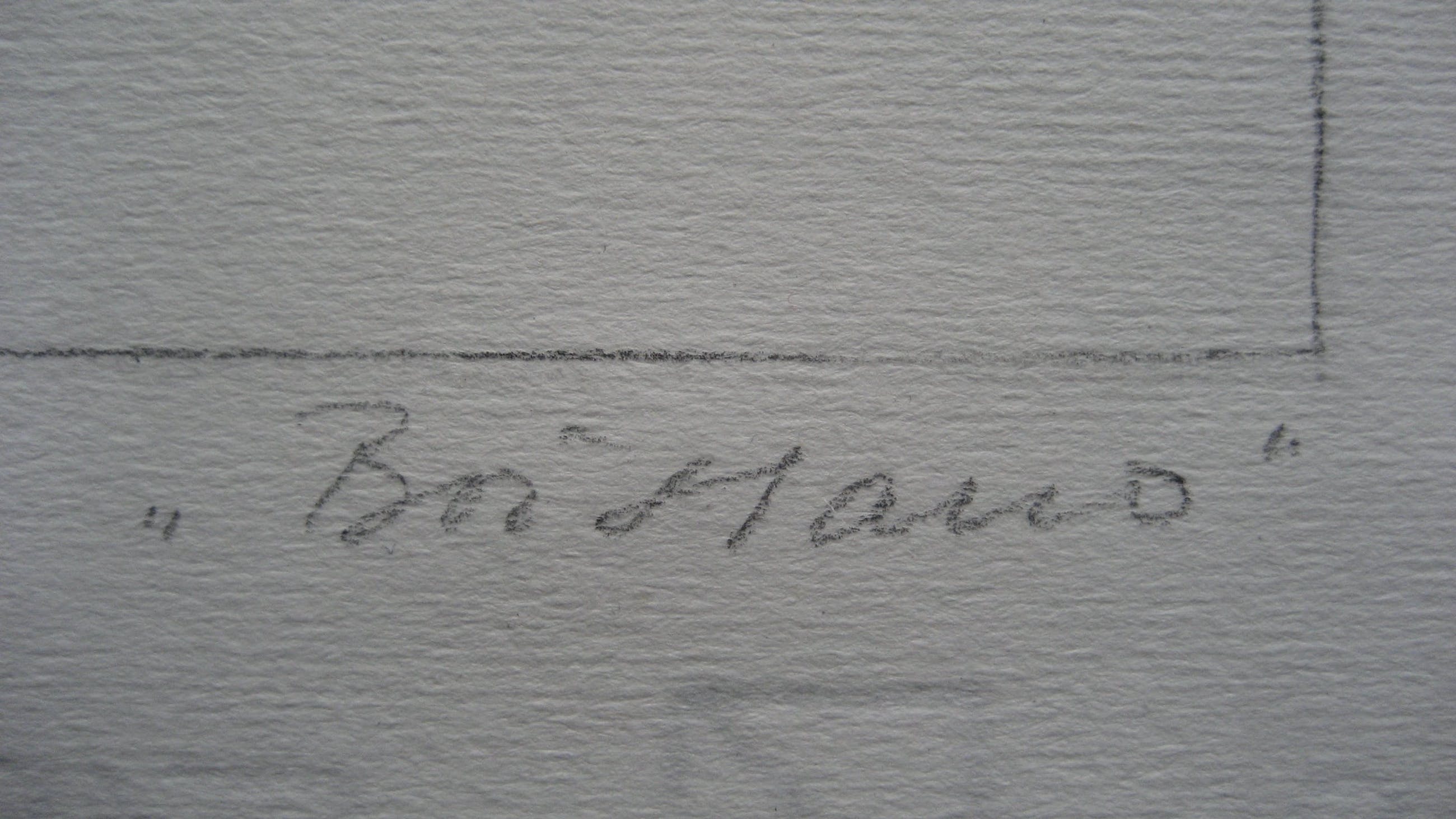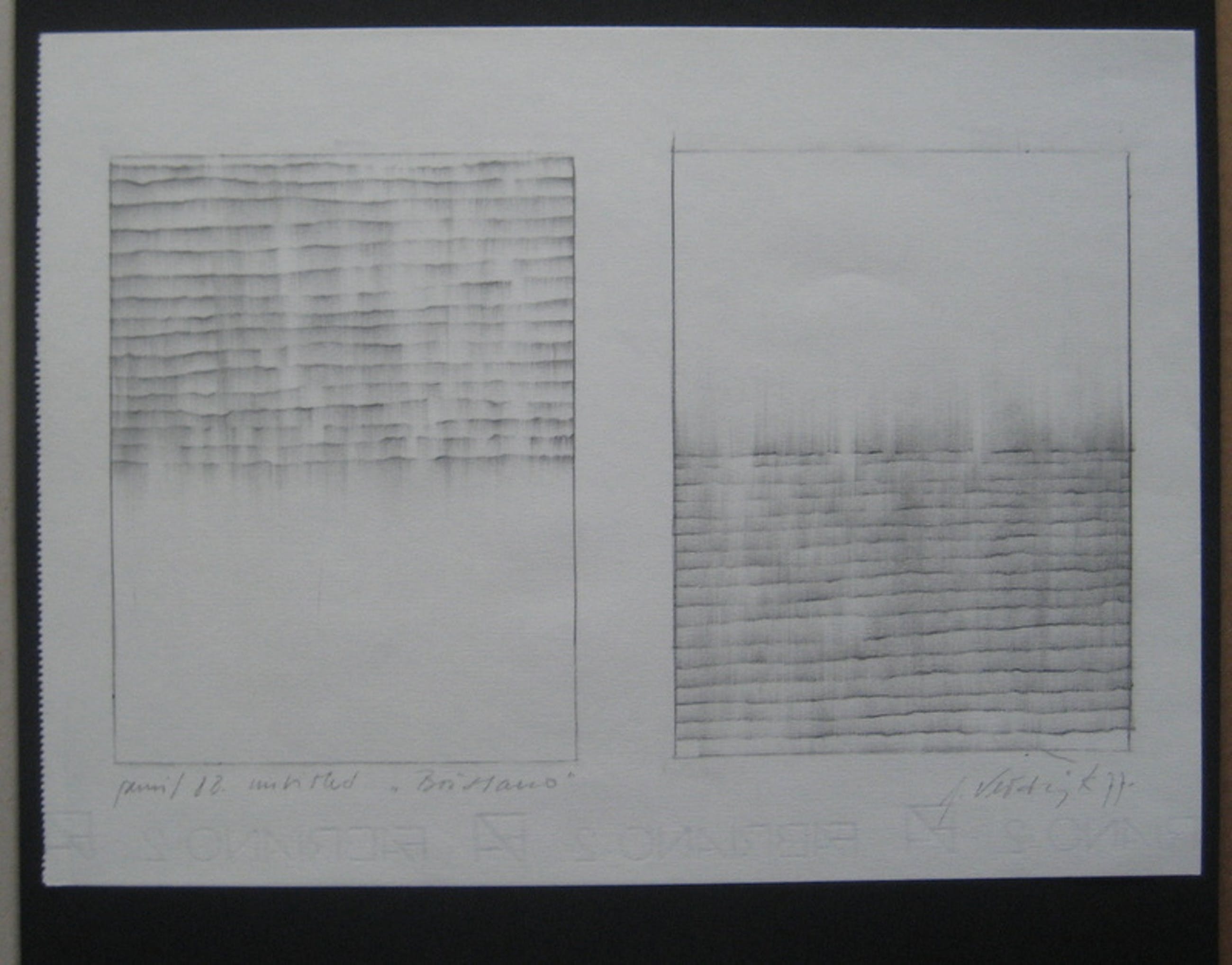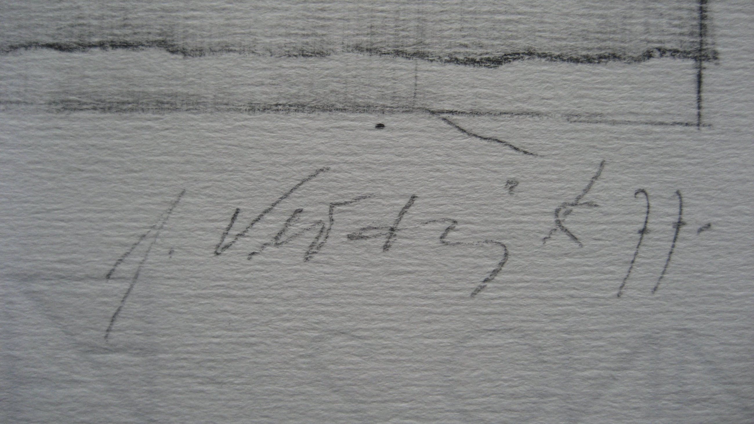 "Brissano".Gemengde techniek dwz grafiet en vlakgum op Fabriano papier. Afmetingen: 24-33 cm(blad) , 17-29 cm (afbeelding).