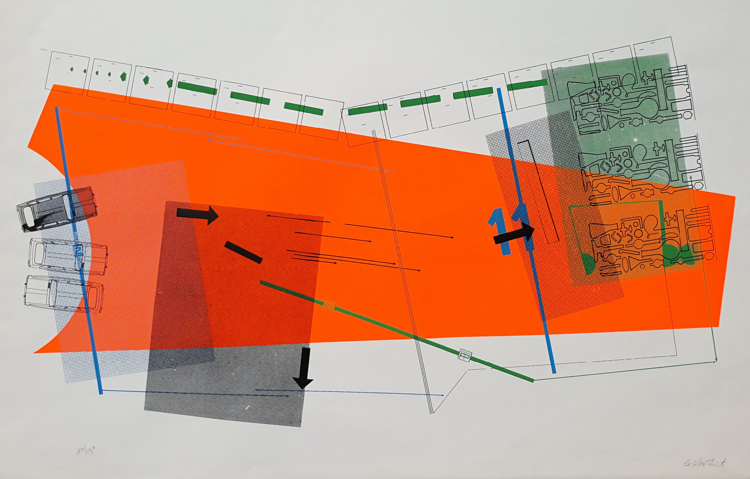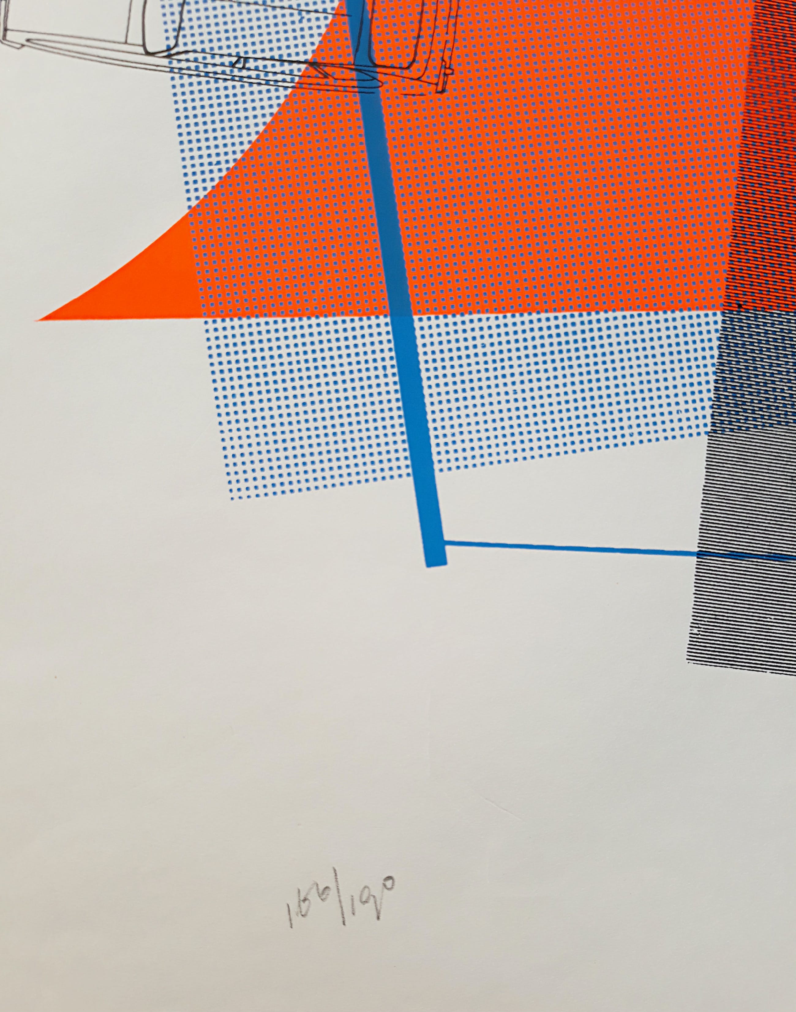 Afmetingen: 87cm x 61cm (blad), 76cm x 43cm (beeld zeefdruk)
