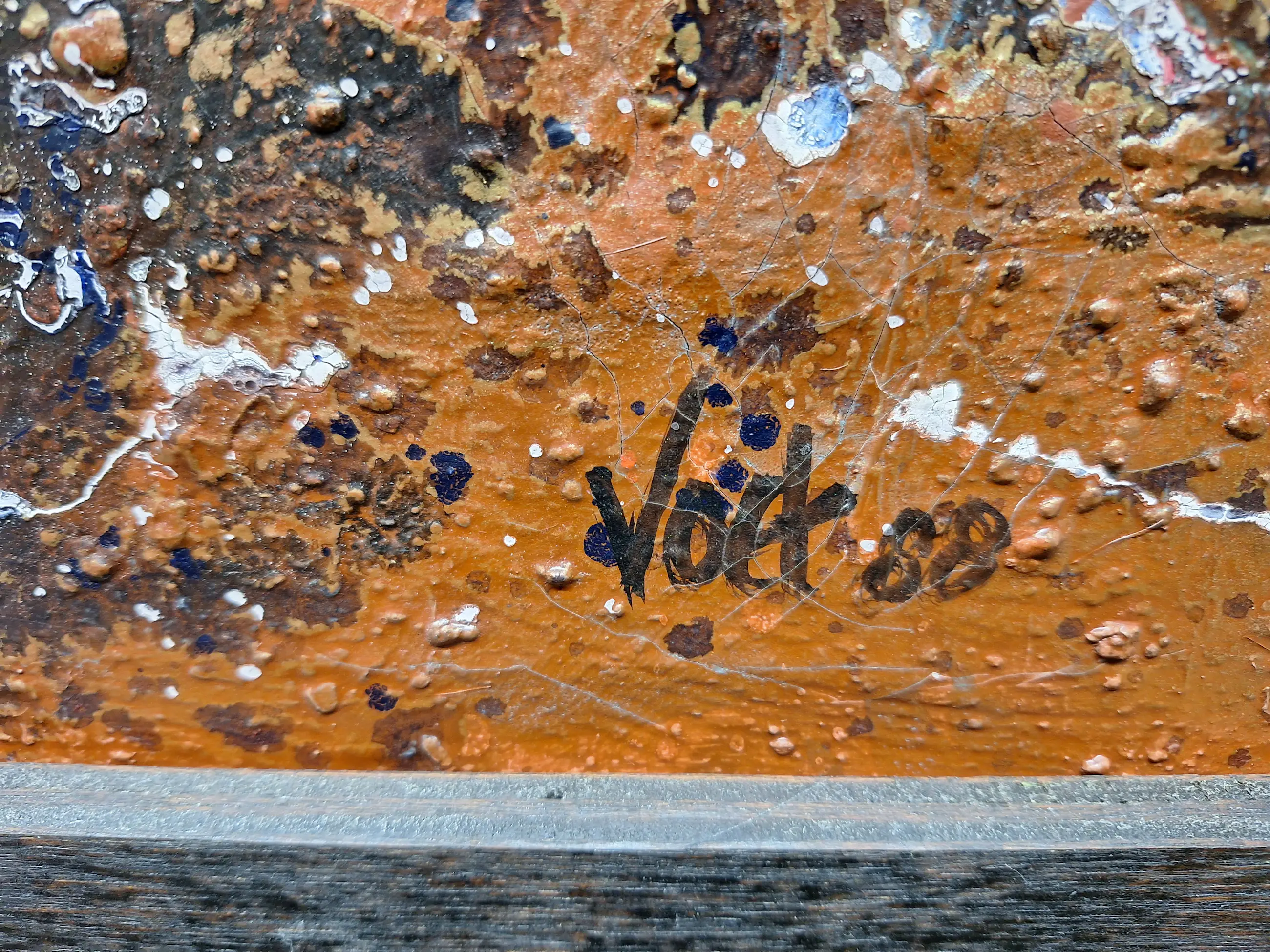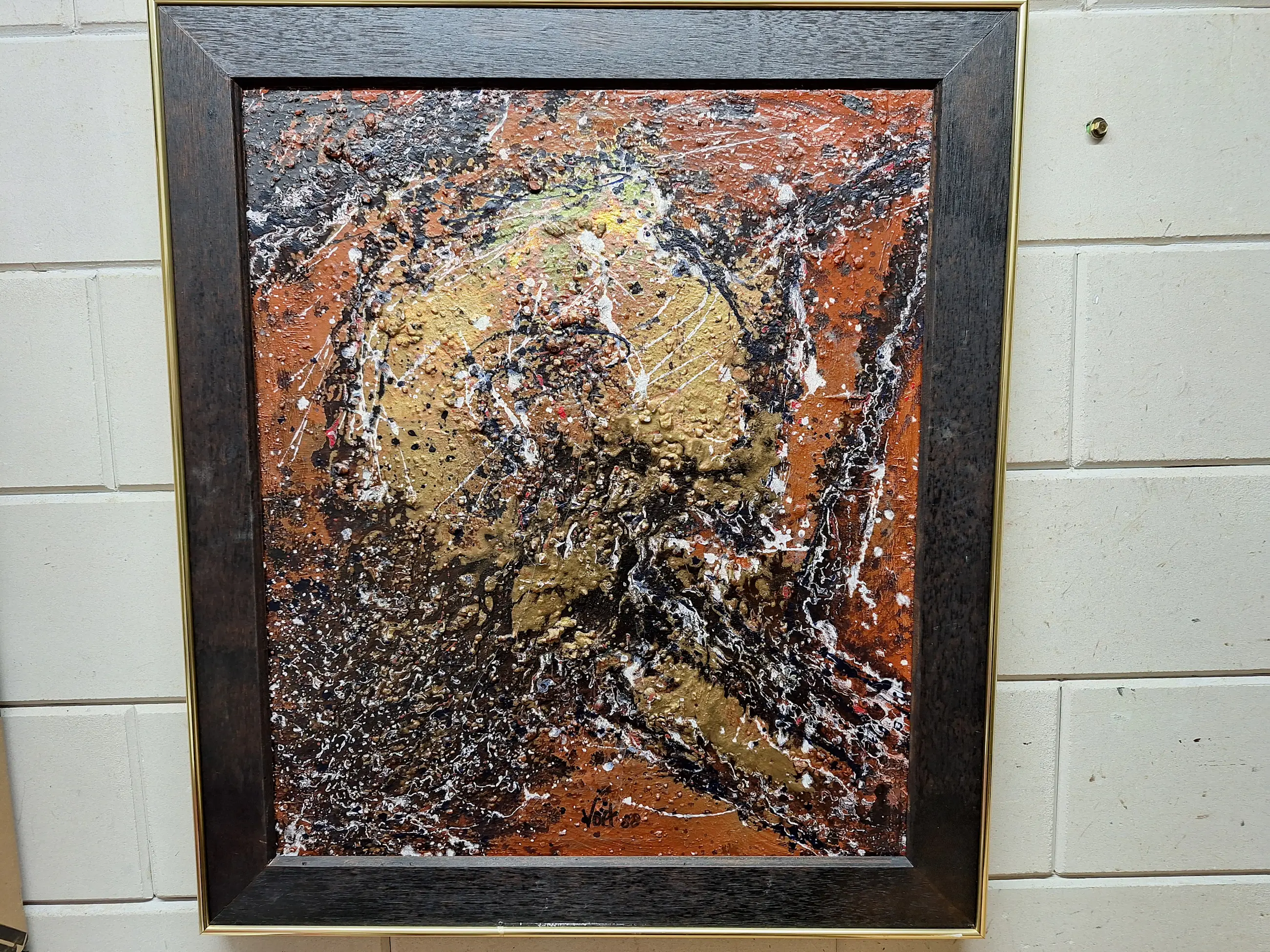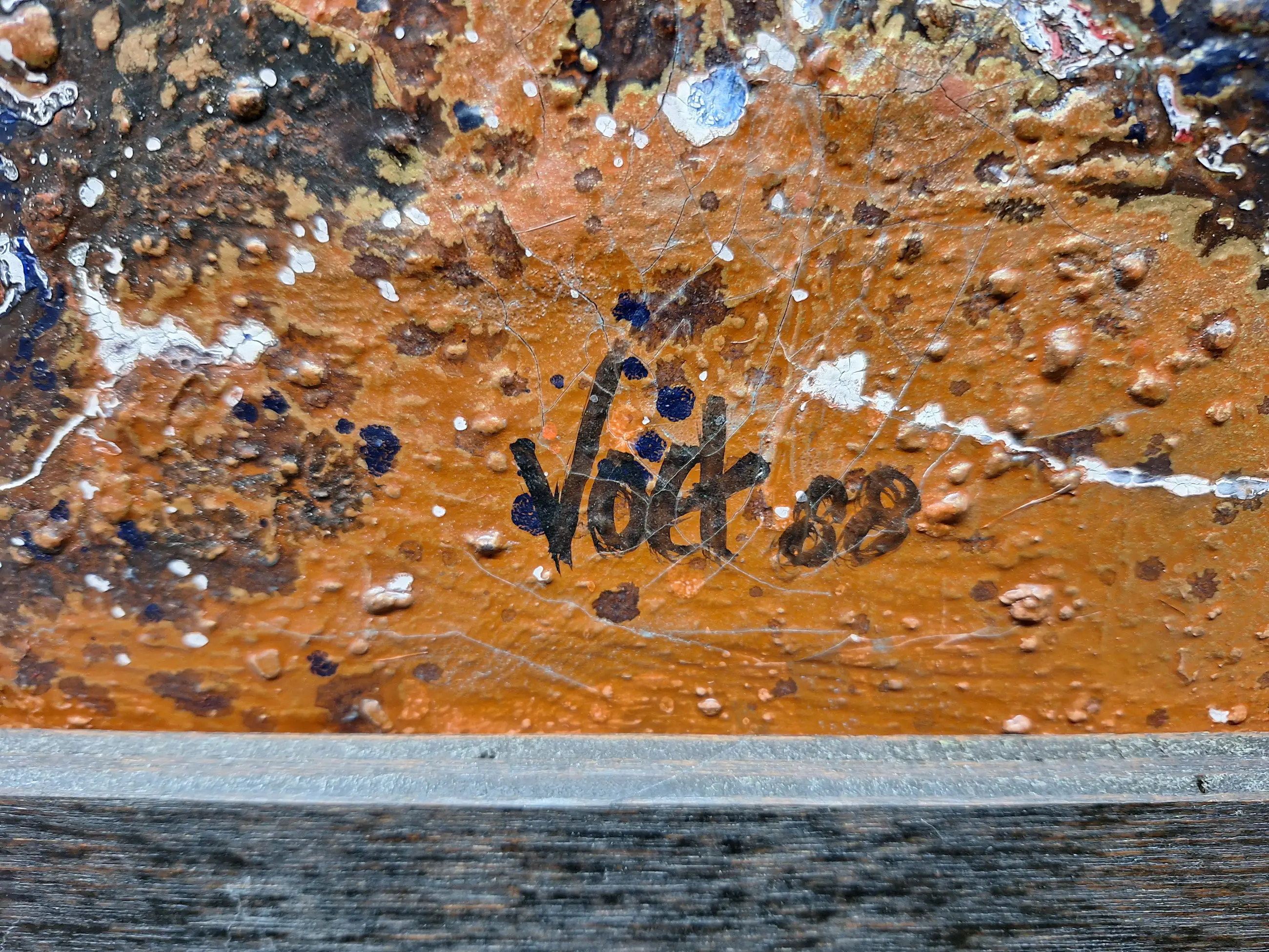 Een erg mooi schilderij op doek Maat met mooie lijst is 63 bij 73 Gesigneerd en gedateerd Voet'88