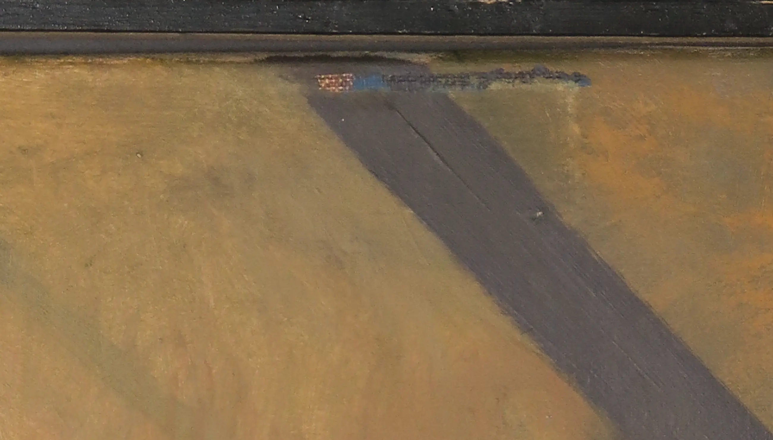 | Wat schade en loslating van de verf, met name aan de randen van het doek. (Zie foto's) | |