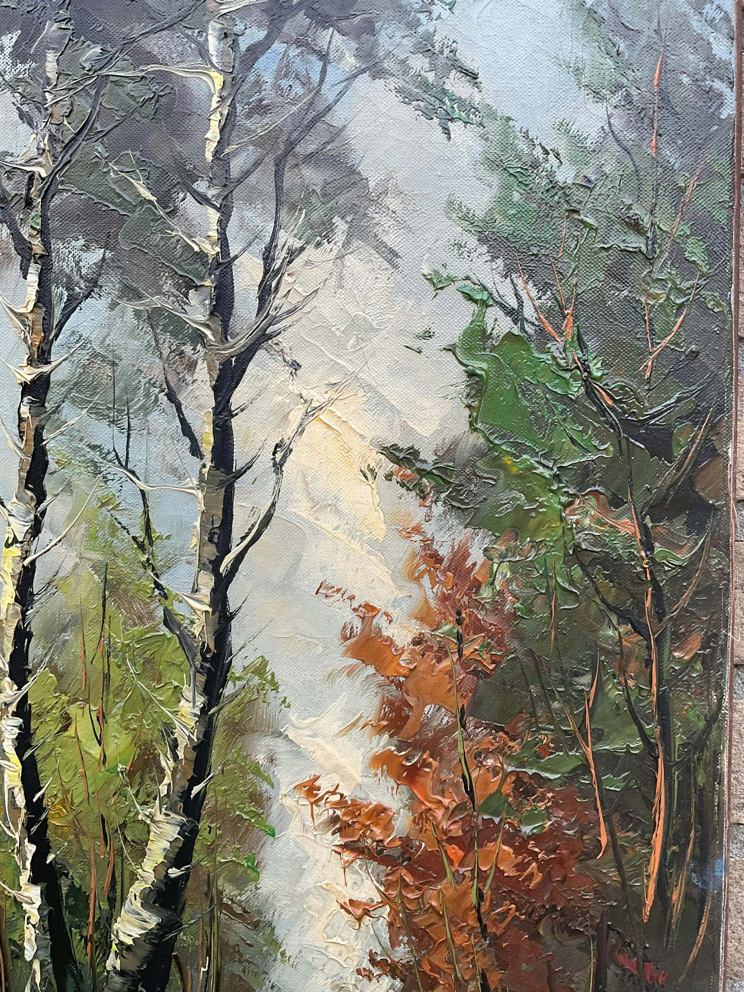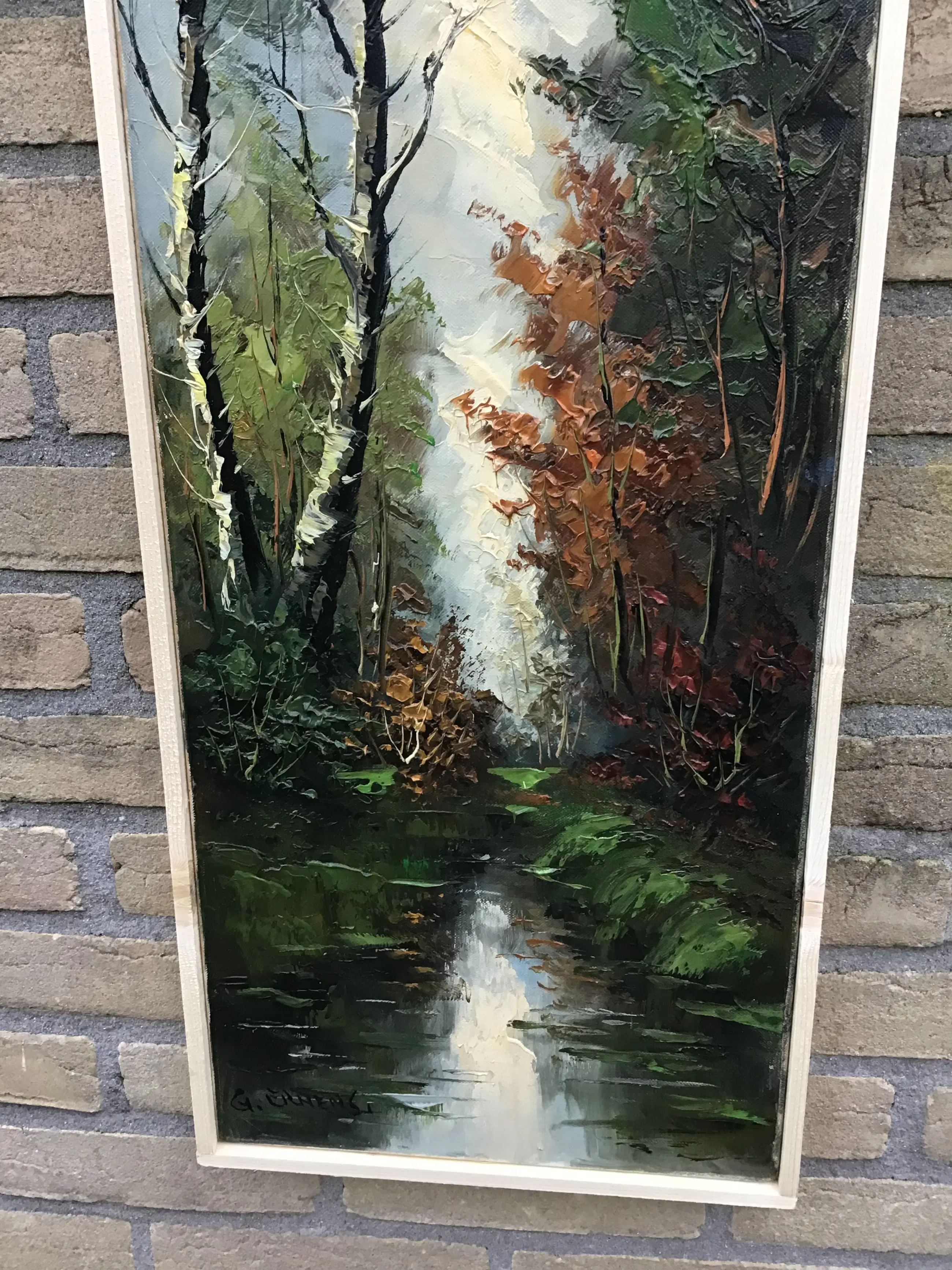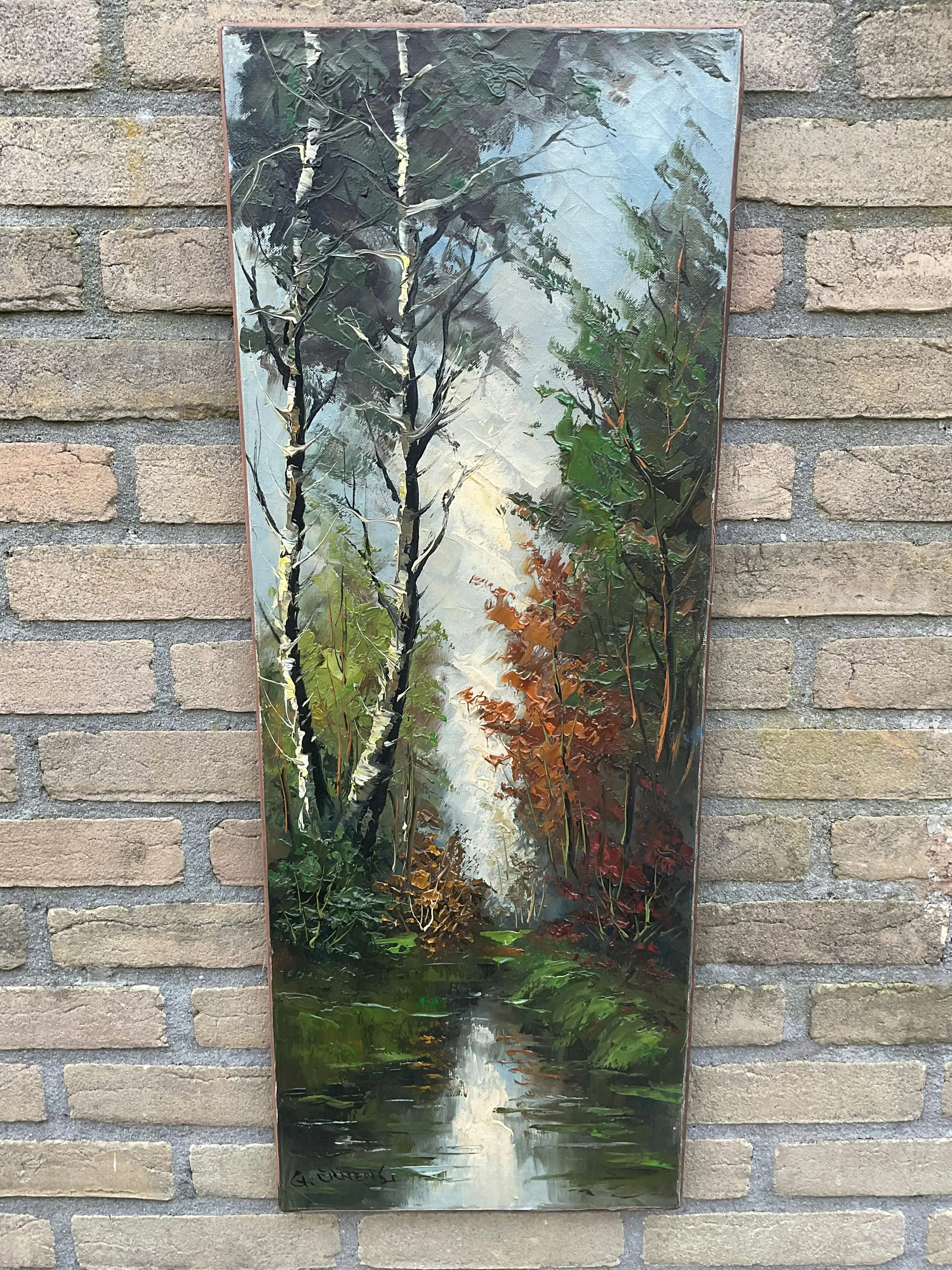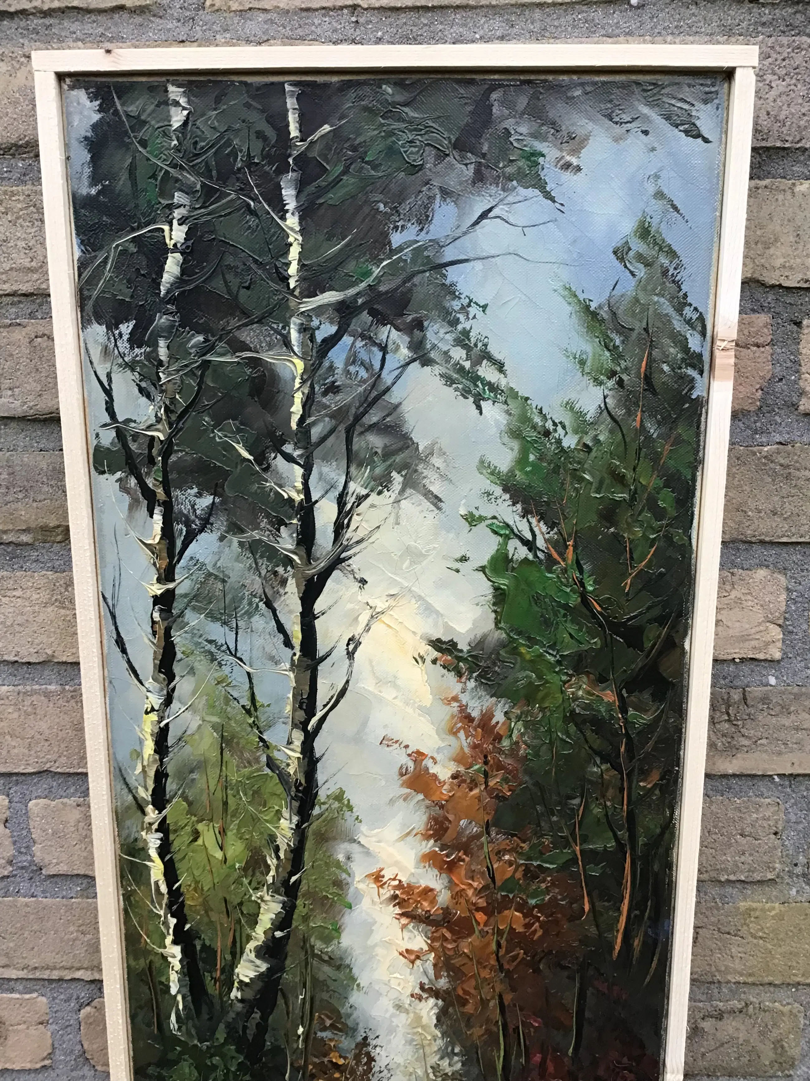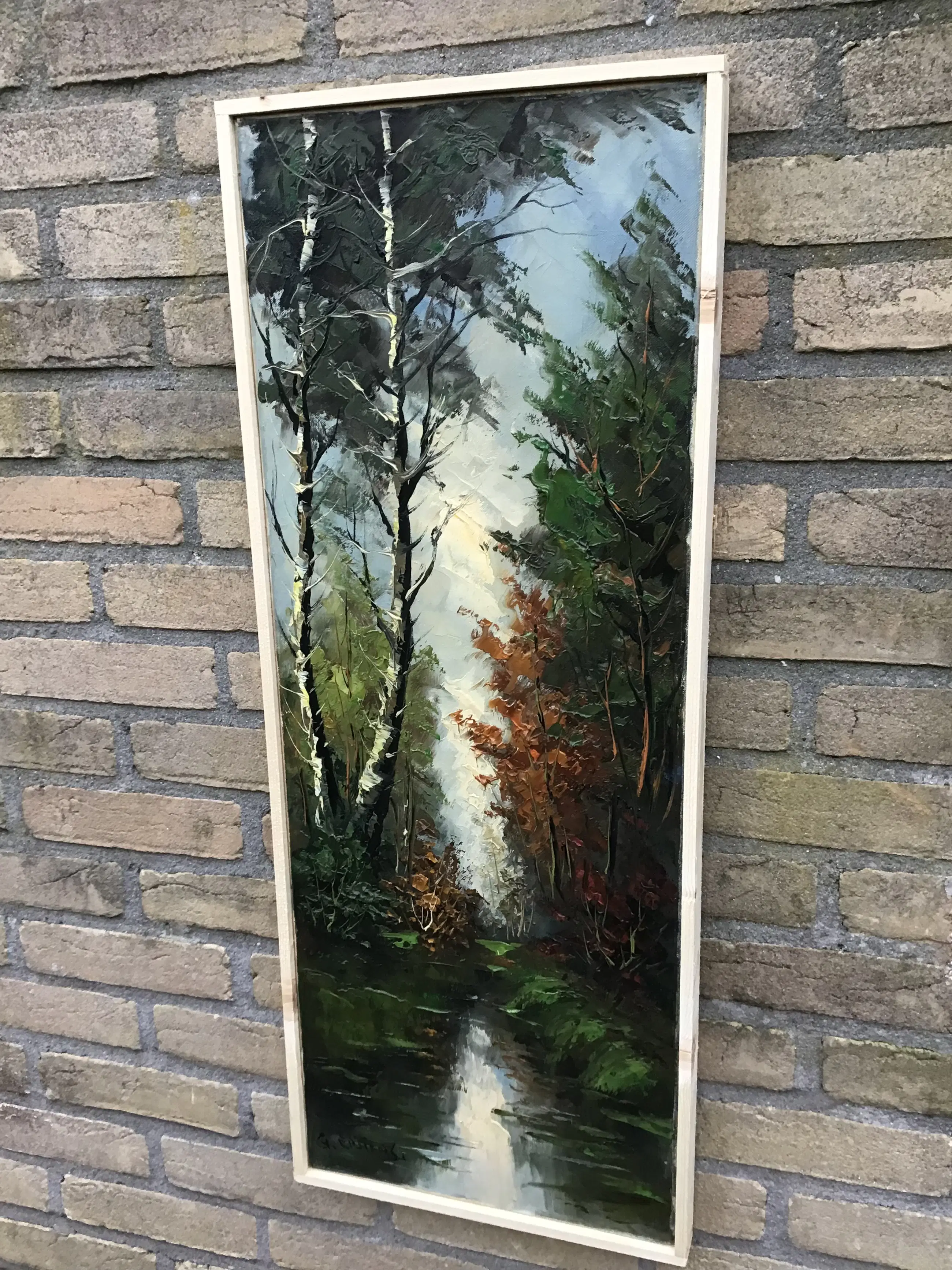 Opvallend werk qua formaat van Ernens(1935-2020) in goede staat zonder lijst. Met paletmes pasteus geschilderd. Beïnvloed door Jan Bevort en was net als hij ook lid van The International School of fine Art. Zijn werk is en wordt internationaal aangekocht. Er is een eenvoudige vurenhouten lijst omheen geplaatst.