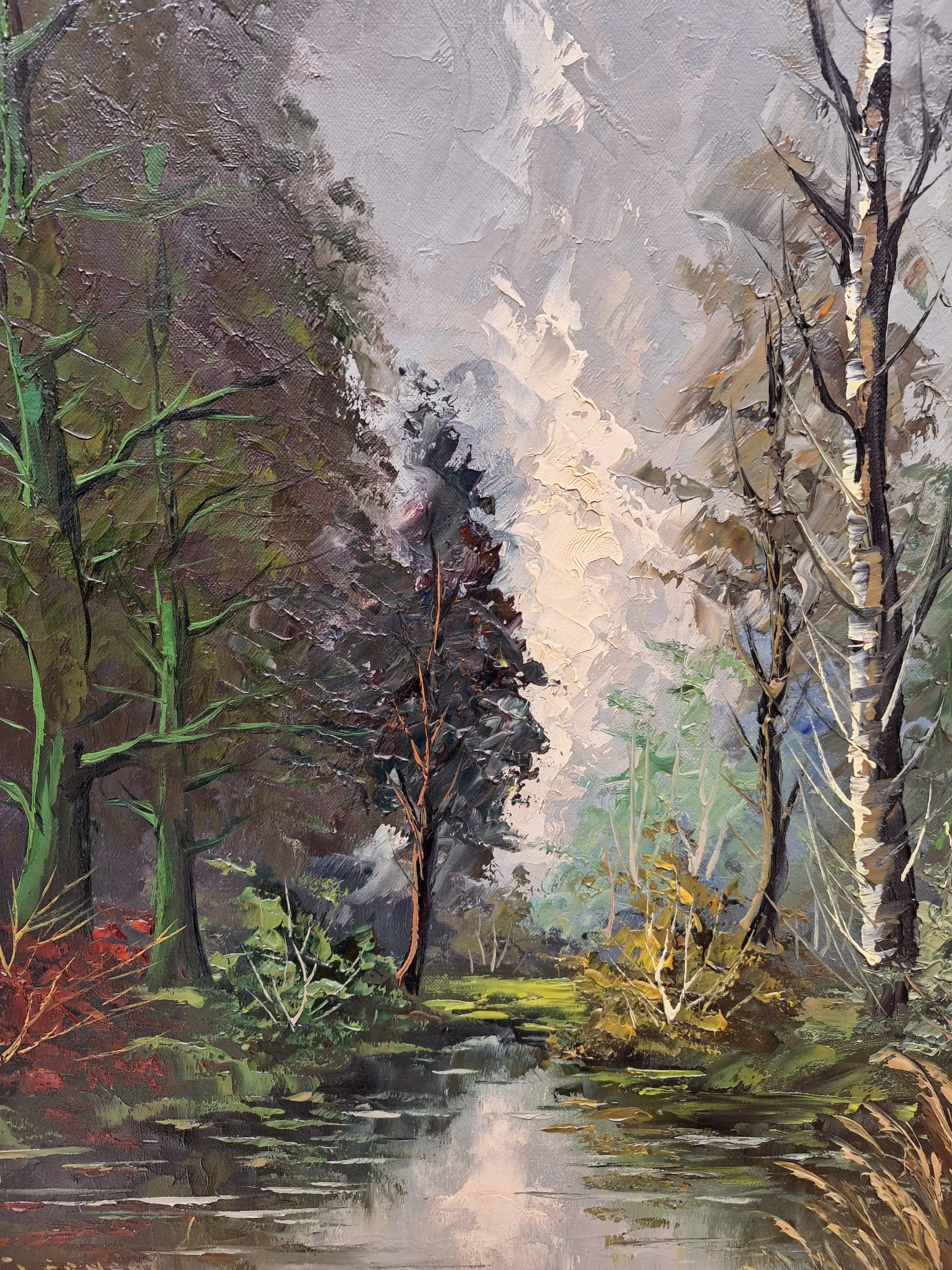 Zijn schilderijen hebben een licht impressionistische inslag en zijn toch duidelijk herkenbaar.