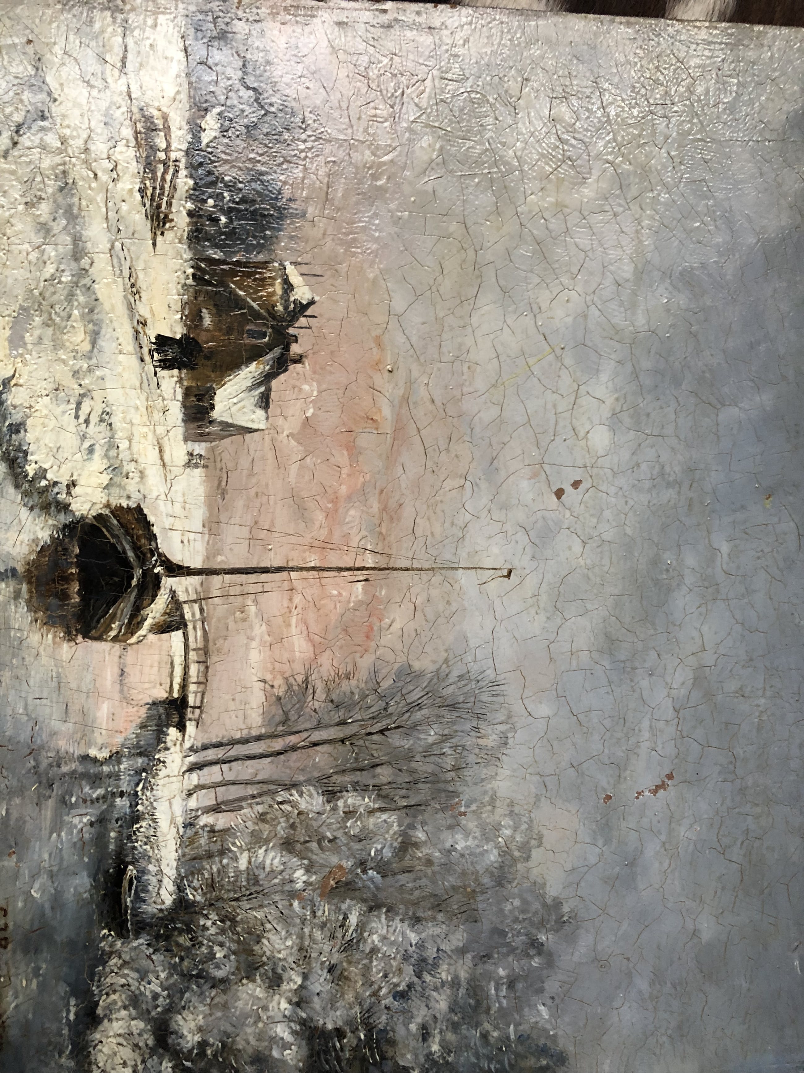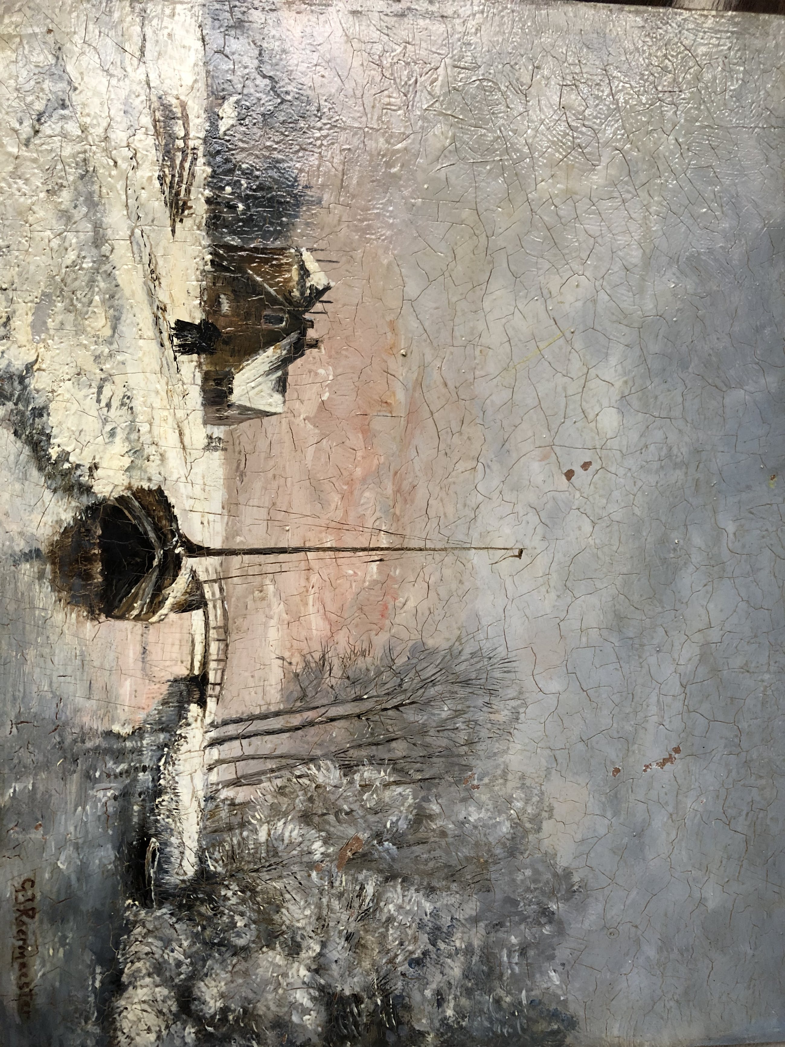 Roermeester 1843-1936 Olie op board Gesigneerd Niet ingelijst Craquelé Chip verlies