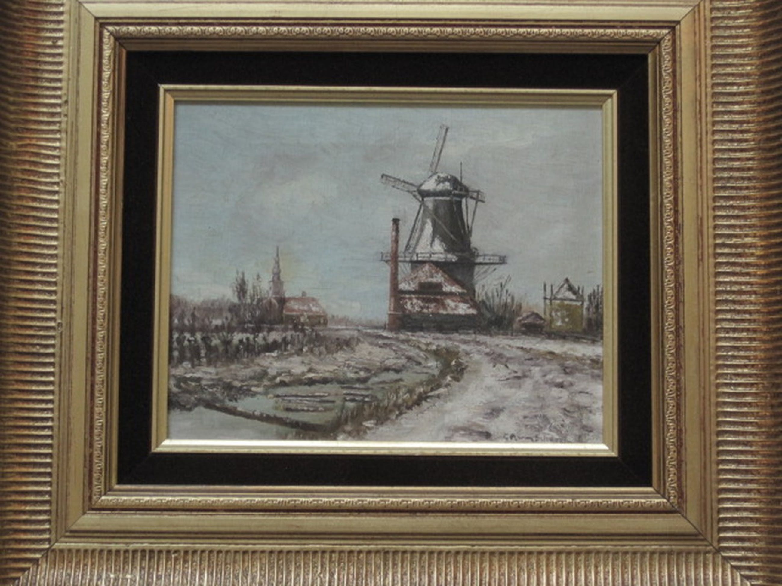 Maten : 25 x 20 cm (doek) en 46.5 x 41.5 cm ( ingelijst )