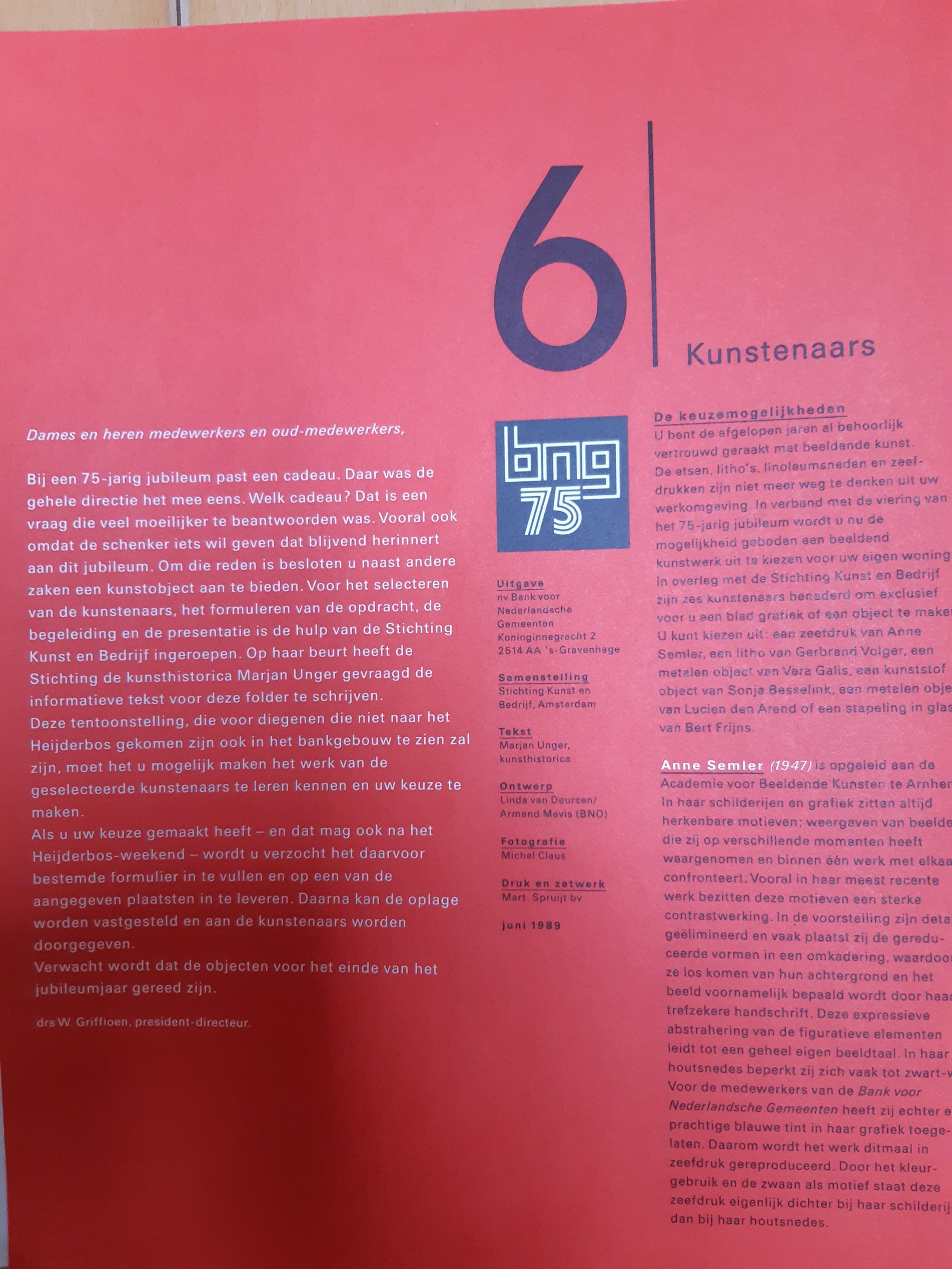 De litho is een geschenk aan het personeel van BNG Bank ter gelegenheid van het 75-jarig bestaan van de bank. Over het Hoogovens project van Gerbrand Volger en Willeke van Tijn verscheen een beschrijving in Vrij Nederland (18 november 1989). Zie ook het artikel van Bas Roodnat in het Cultureel Supplement van NRC Handelsblad op 4-2-00 onder de titel "Kunst uit het hellevuur".