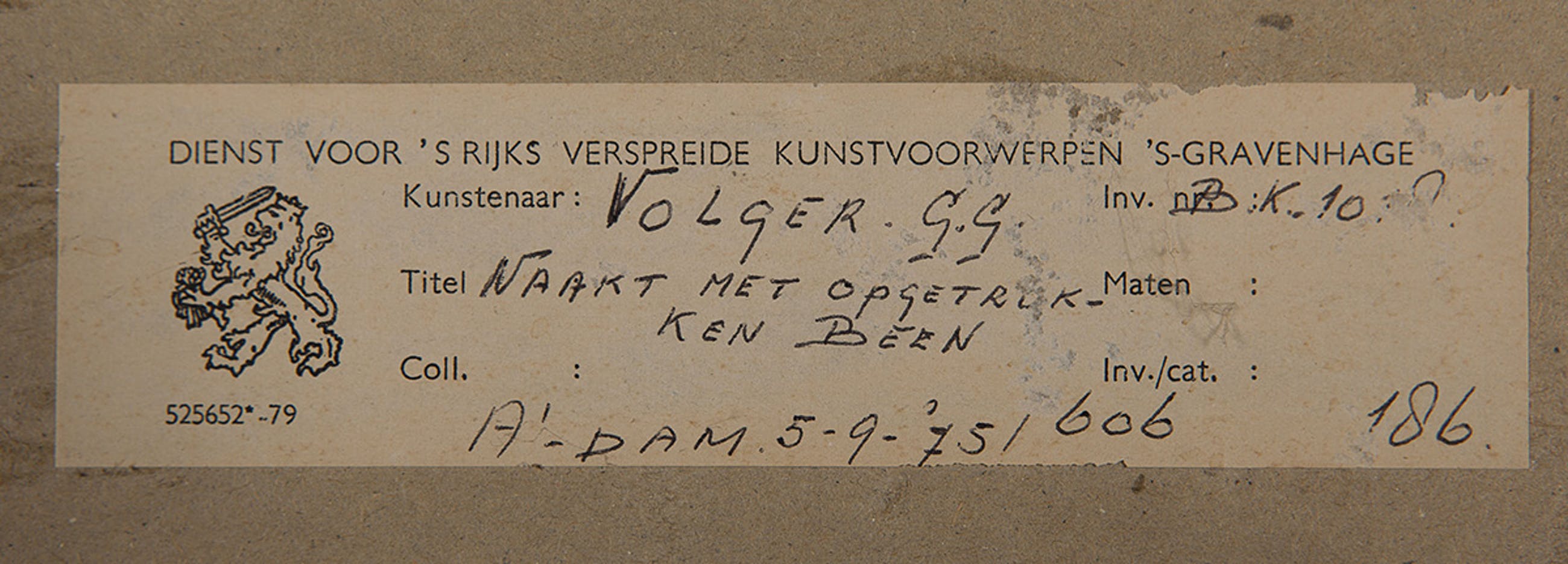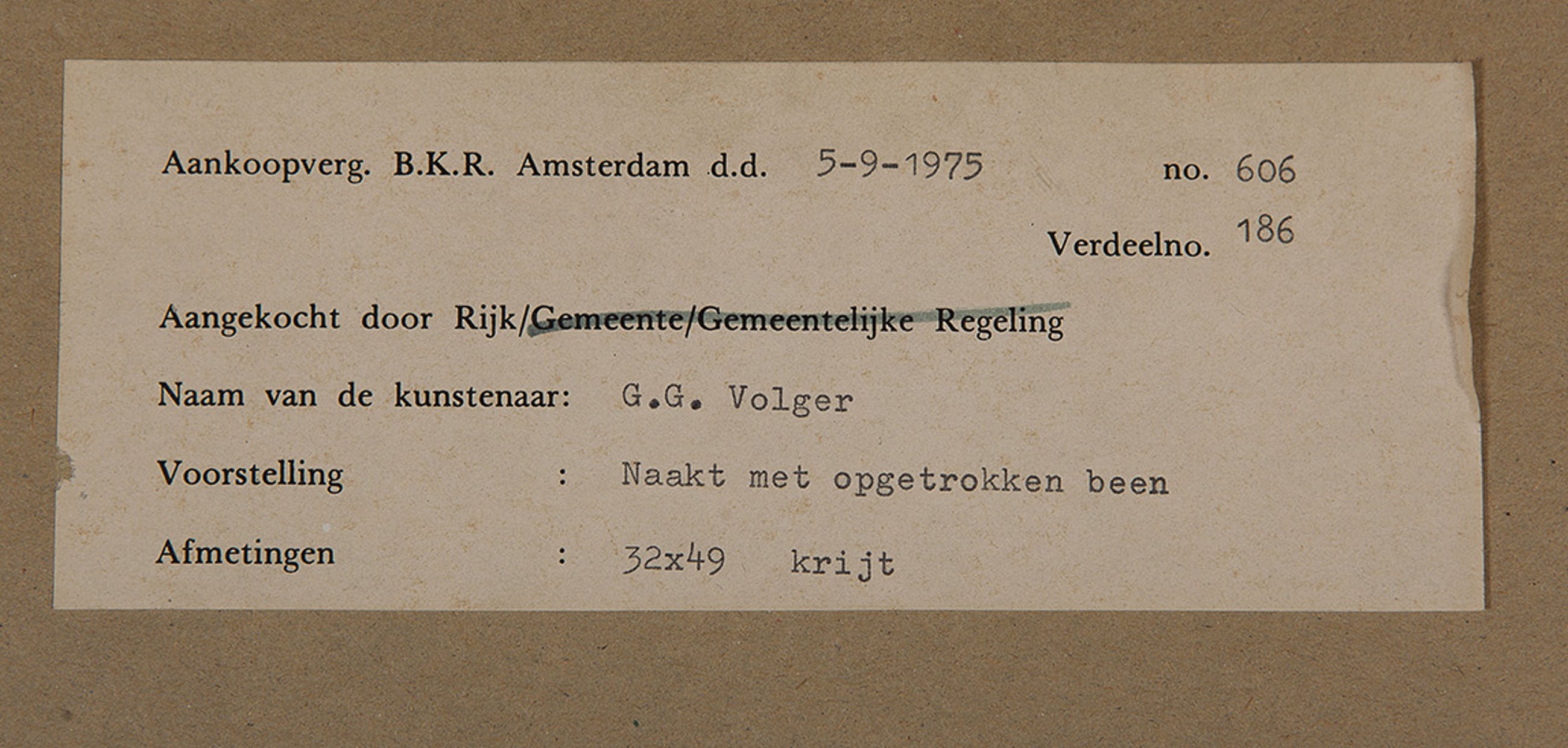 Herkomst: BKR Amsterdam (Het kunstwerk is afgevoerd uit de rijkscollectie in 2018)