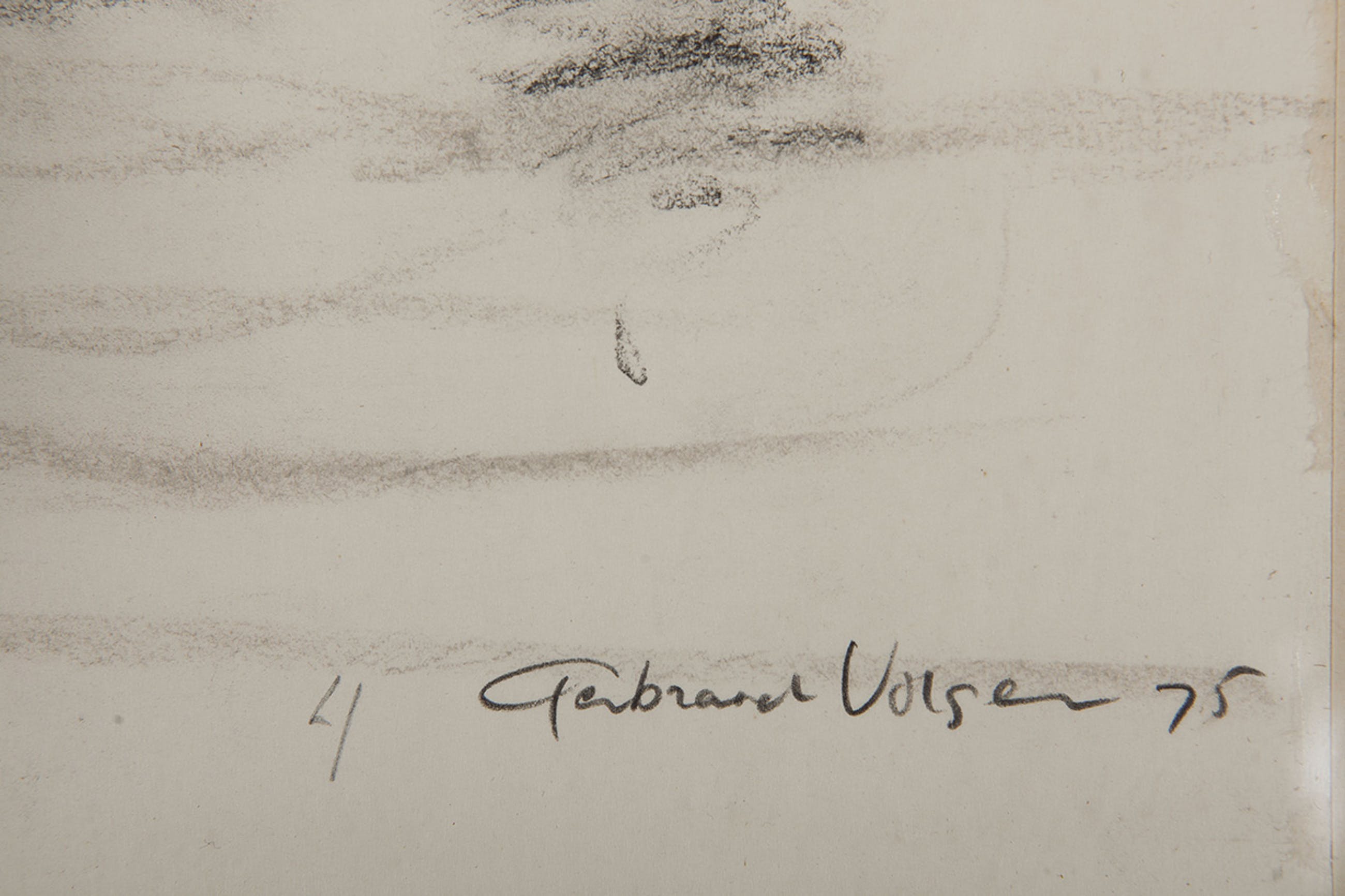 | Het werk valt ruim binnen passe-partout en lijkt onvakkundig bijgesneden te zijn. Plakbandresten op glasplaat. Lijst is vermoedelijk gemaakt door kunstenaar zelf. | |