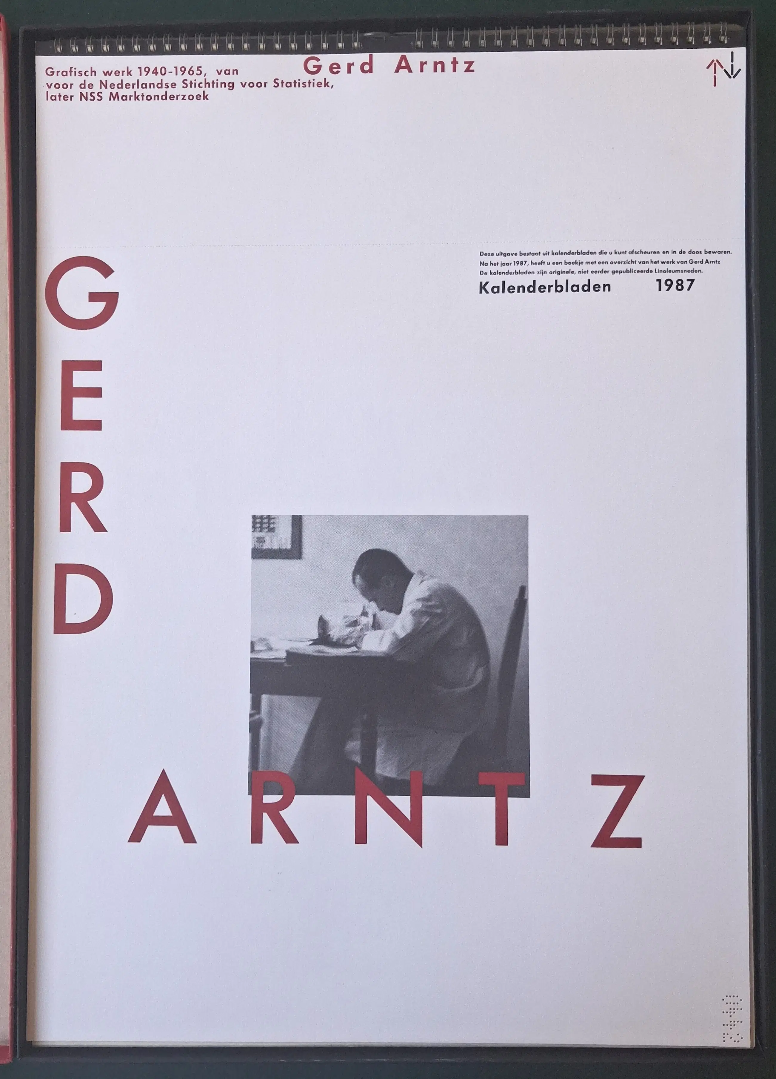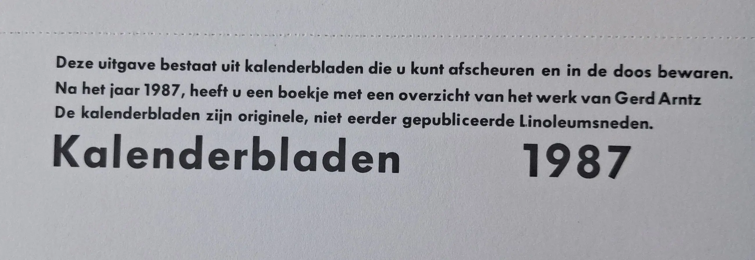 12 authentieke linosnedes, uitgegeven als kalenderIn een met rood linnen beklede doos, die genummerd is. De 12 lino's meten ieder 36 x 36 cm en kunnen gemakkelijk uit de kalender worden gehaald. Iedere lino is voorzien van schutblad. De conditie van de inhoud is als nieuw, de doos vertoont lichte gebruikssporen.