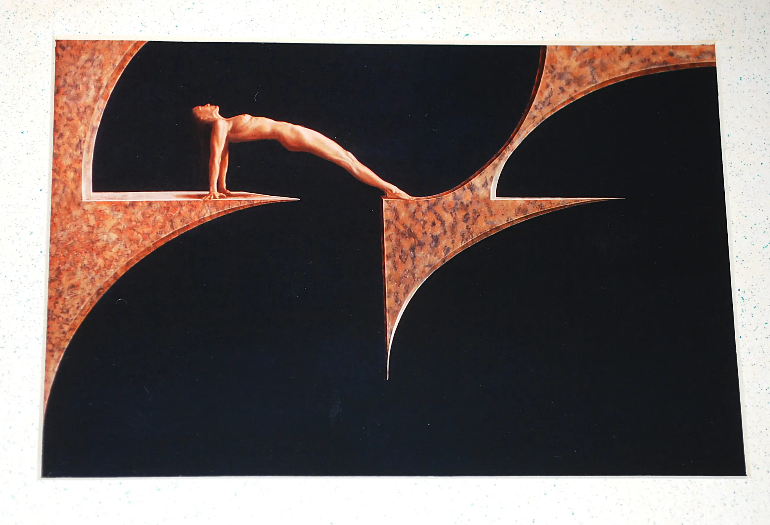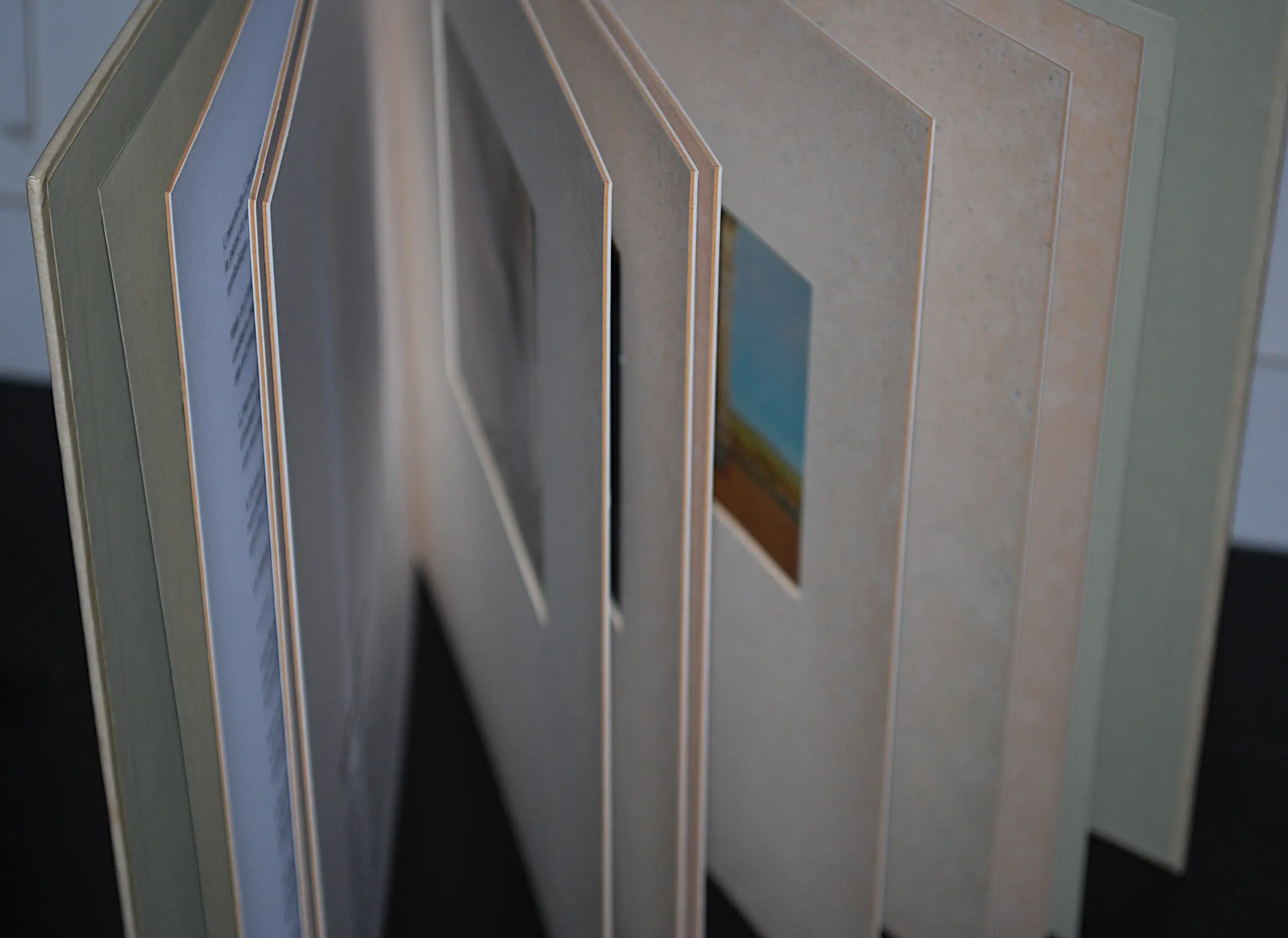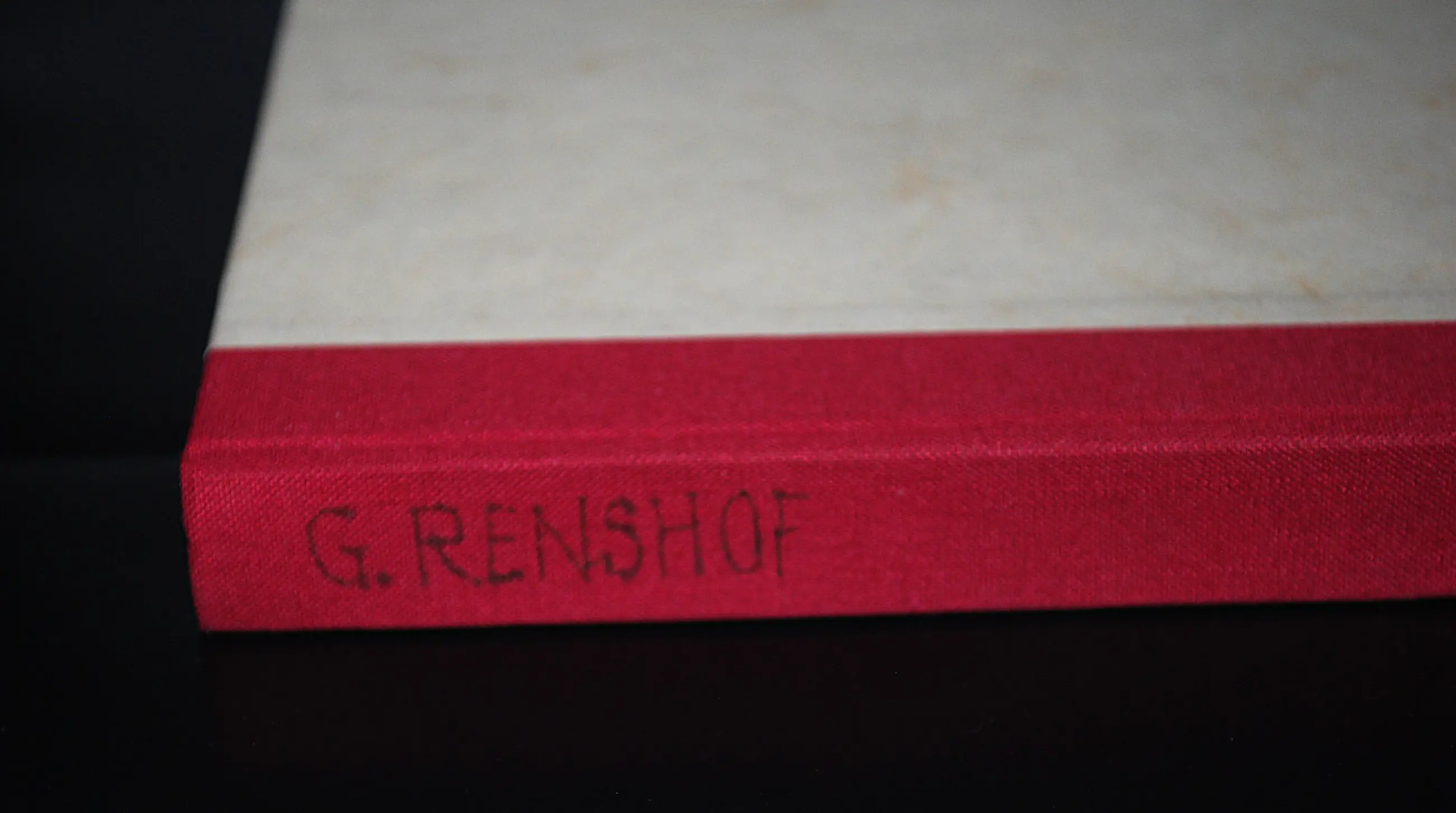 Hardcover catalogus. Waarschijnlijk/zeker handgemaakt in een oplage van 32. Genummerd (23/32) en gesigneerd. 7 (originele) foto's geplaatst achter 7 passepartouts, met telkens een toelichting op de tegenoverliggende pagina. Het geheel gebonden met linnen rug. De rug heeft zijn naam (mogelijk door Renshof zelf beschreven).