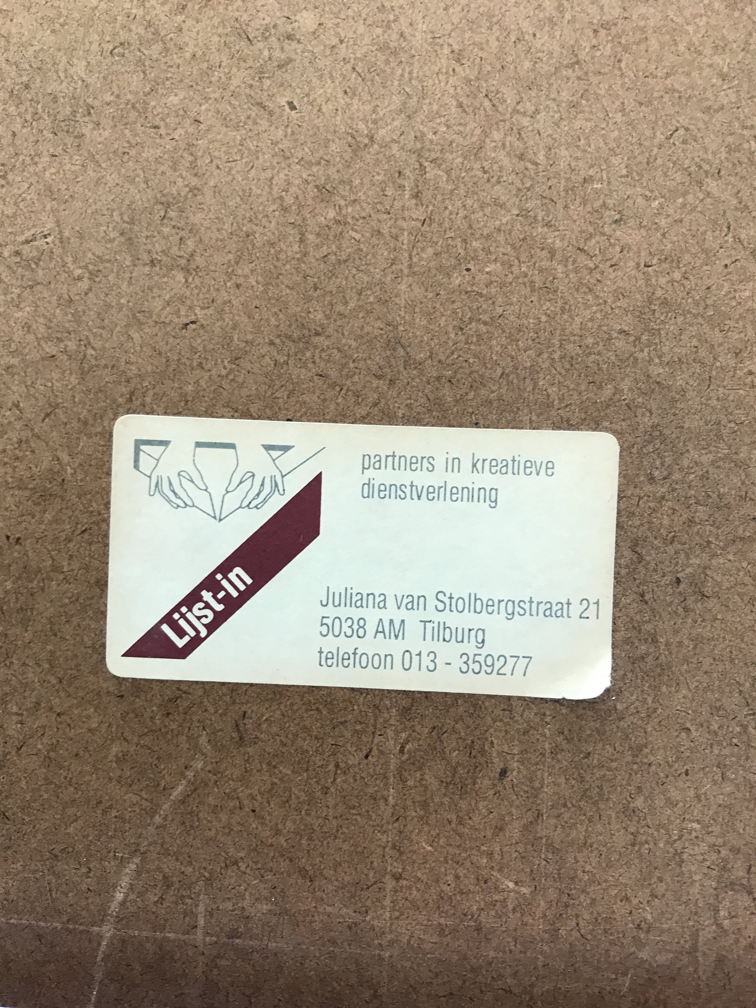 Het werk is af te halen op locatie. Als koper dient u zelf verpakkingsmateriaal mee te nemen. De locatie is: Oosterhout, Nederland