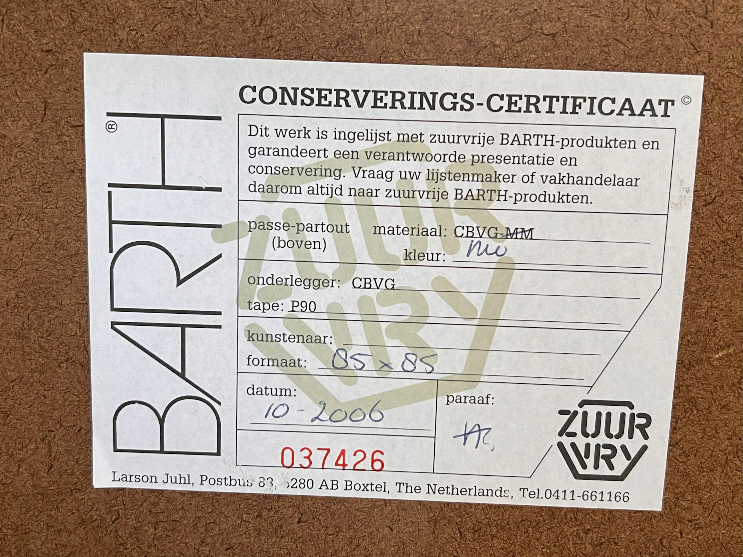 Professioneel ingelijst door Larson Juhl, glas, in een mooie zilveren lijst, met conserverings-certificaat (gegarandeerd zuurvrij BARTH-produkt).