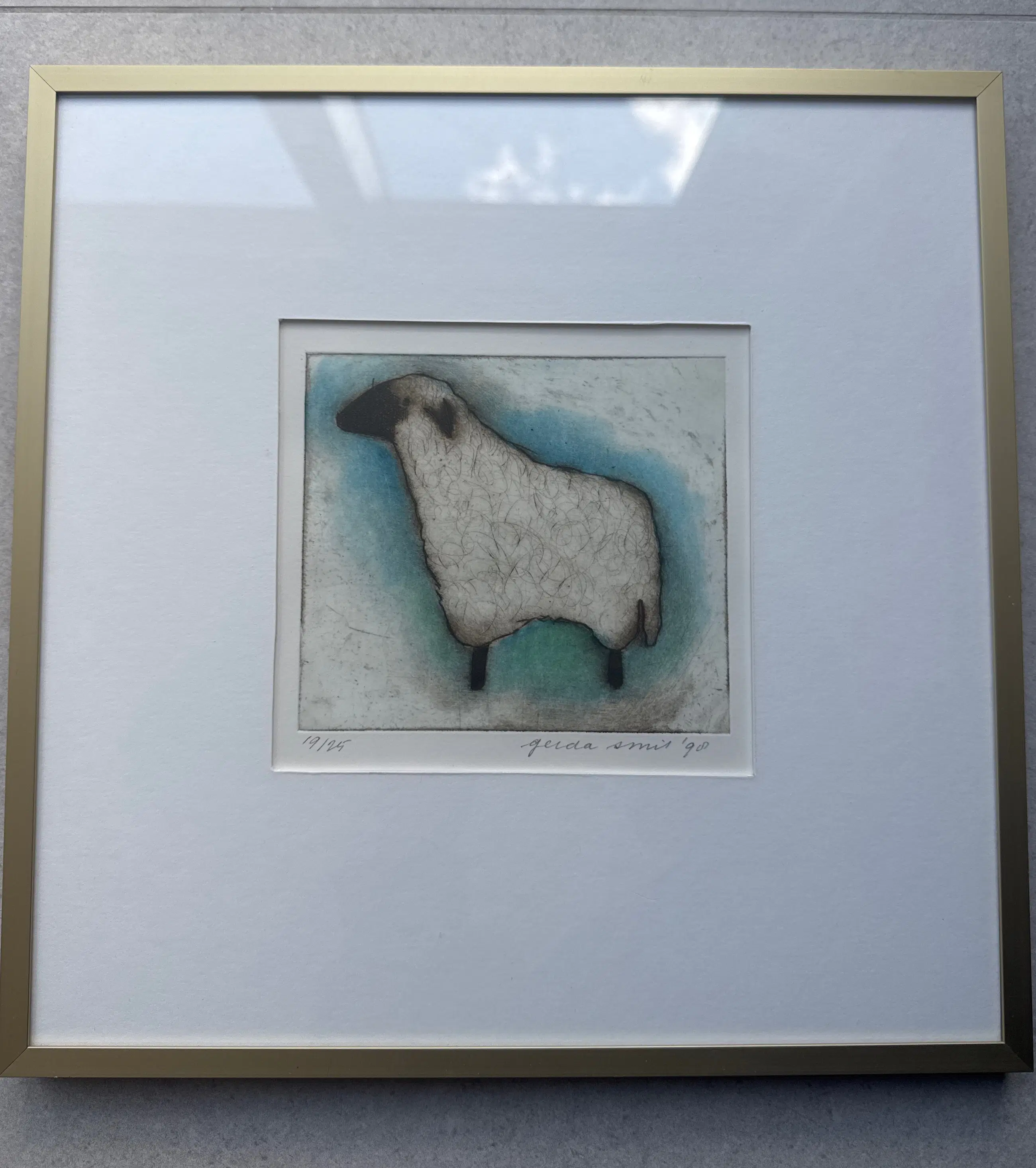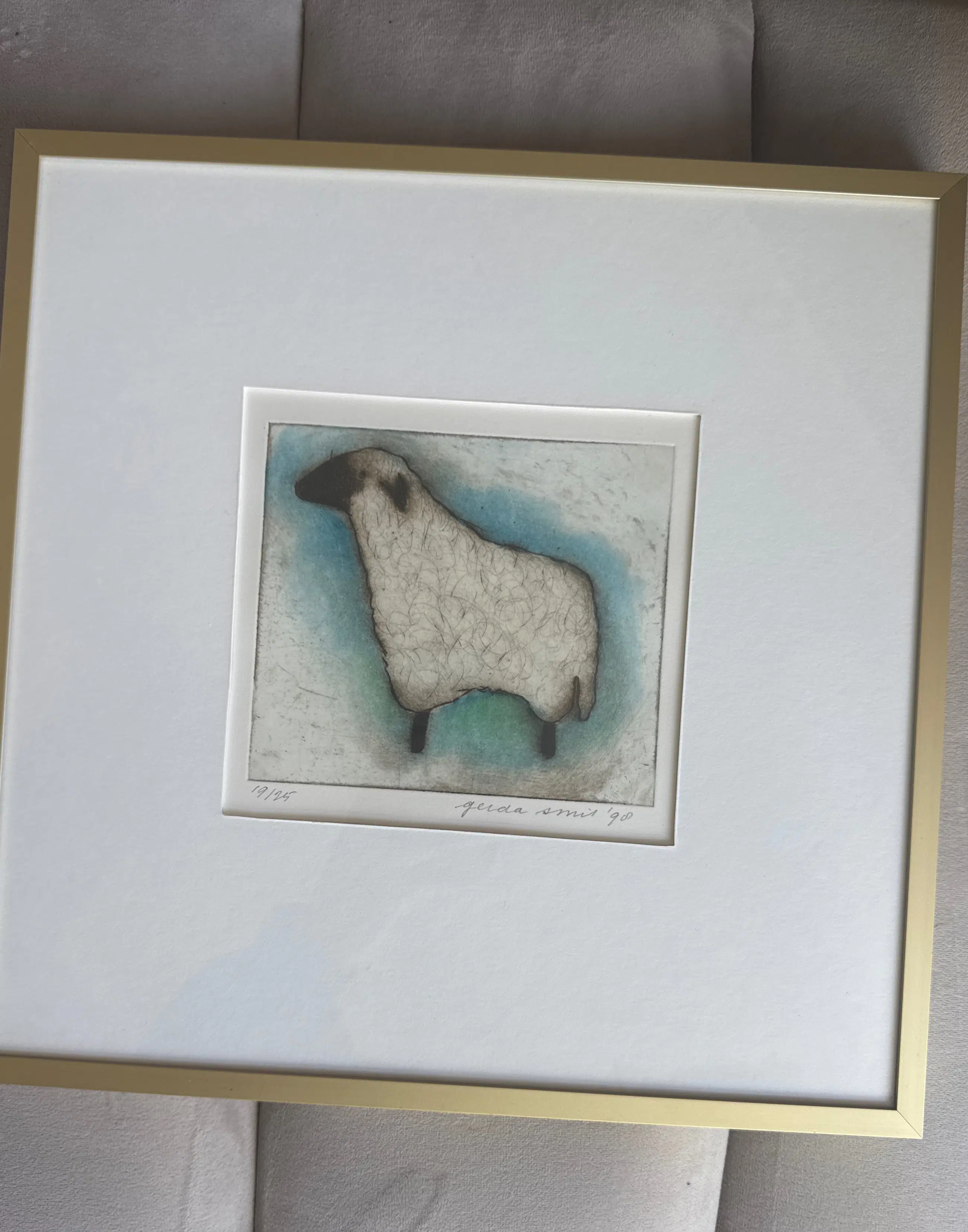 Originele ets (vermoedelijk met aquatint) op papier, gedrukt in oplage van 25. Dit is nummer 19/25. Gesigneerd en gedateerd (Gerda Smit, 1990). Ingelijst in metalen lijst met passe-partout. Techniek: grafiek / gemengde techniek.