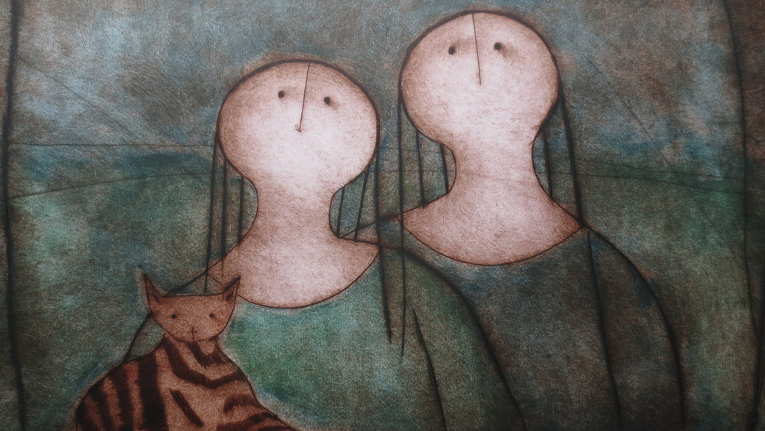 Aandoenlijke ets in het onmiskenbare handschrift van deze kunstenares.