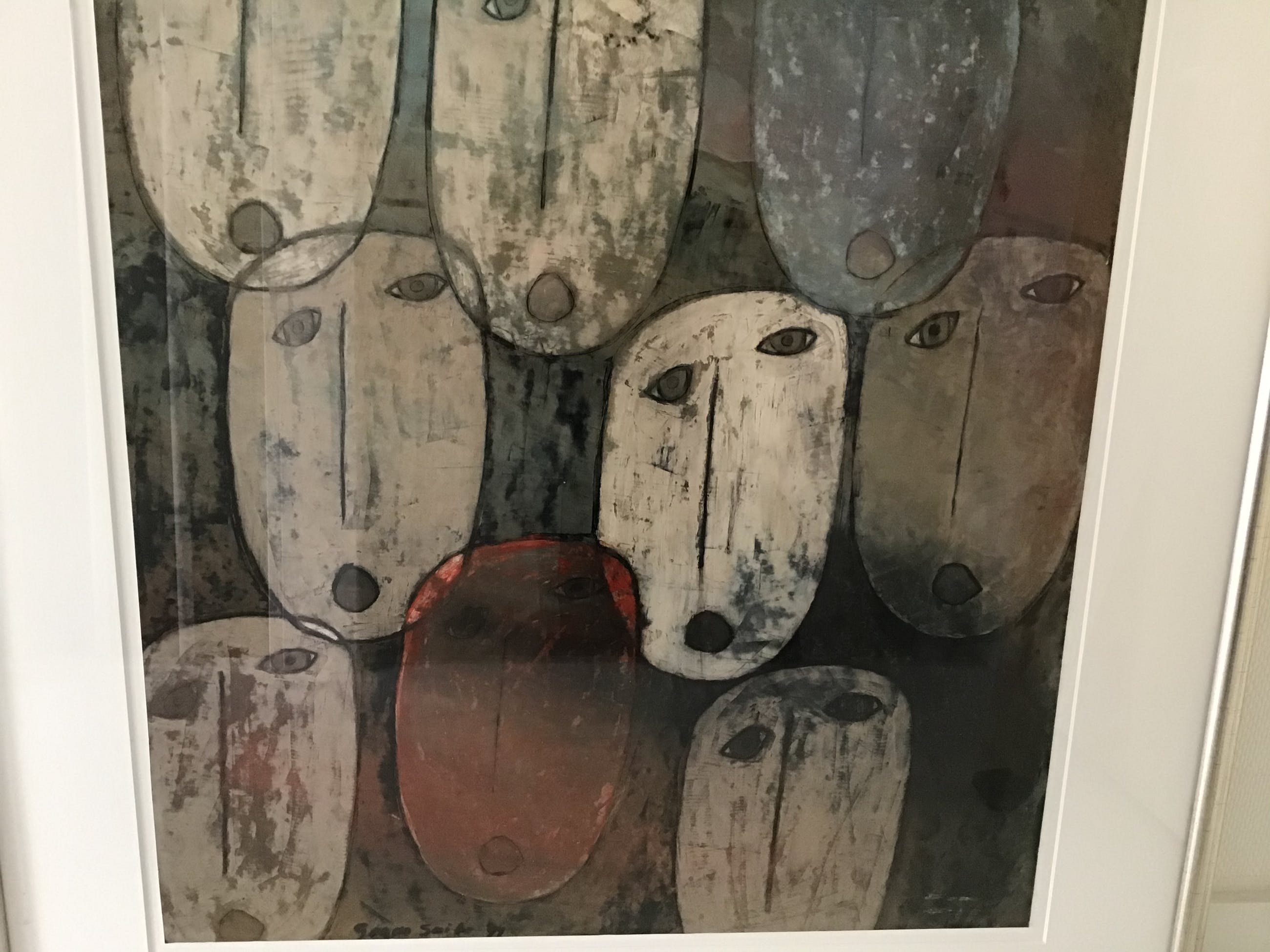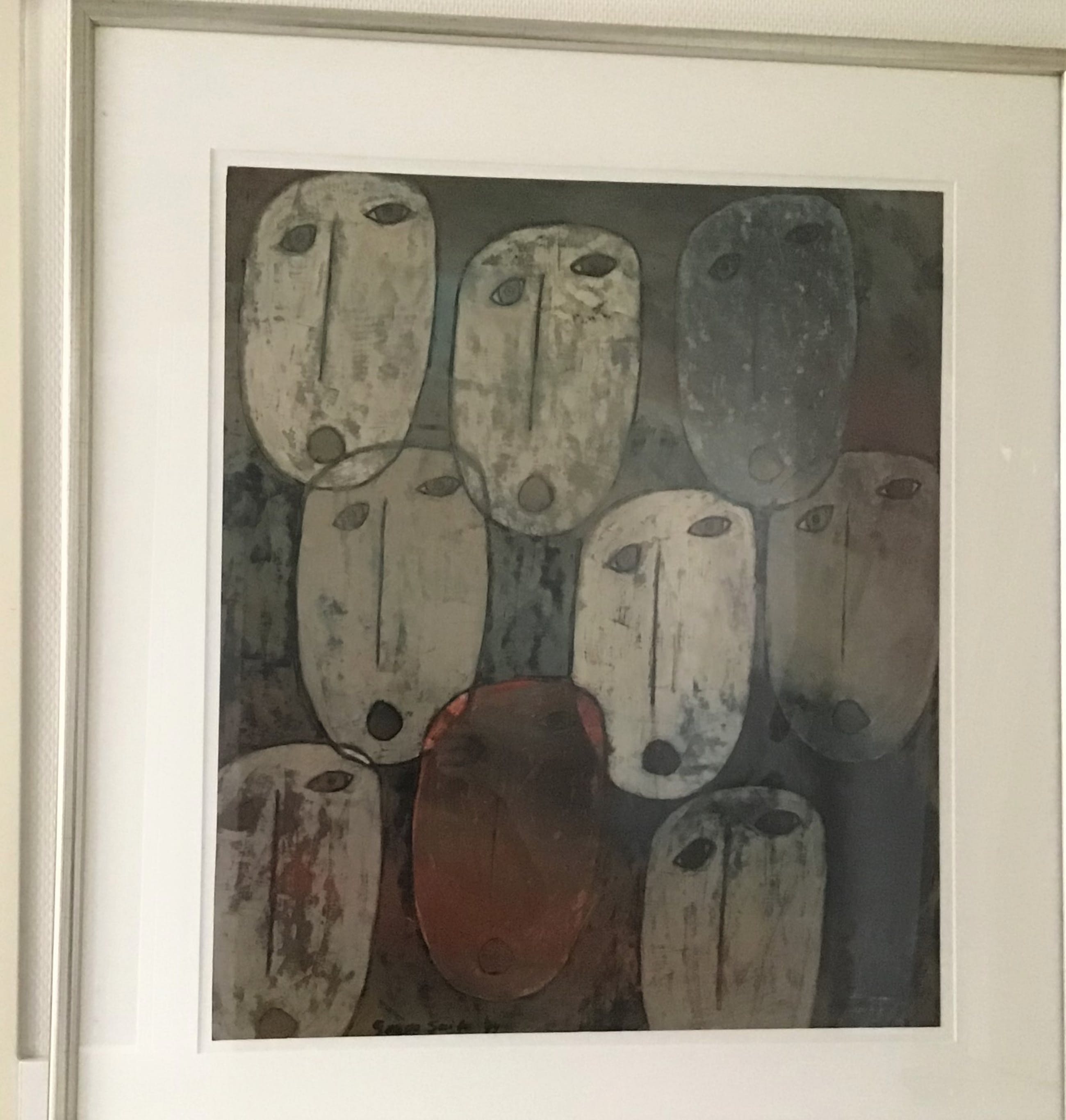 een mooi, groot schilderij met 9 zangers(koppen). Vooral voor de liefhebber die van zingen houdt. Het is een olieverfschilderij (paintstick) op museumkarton.