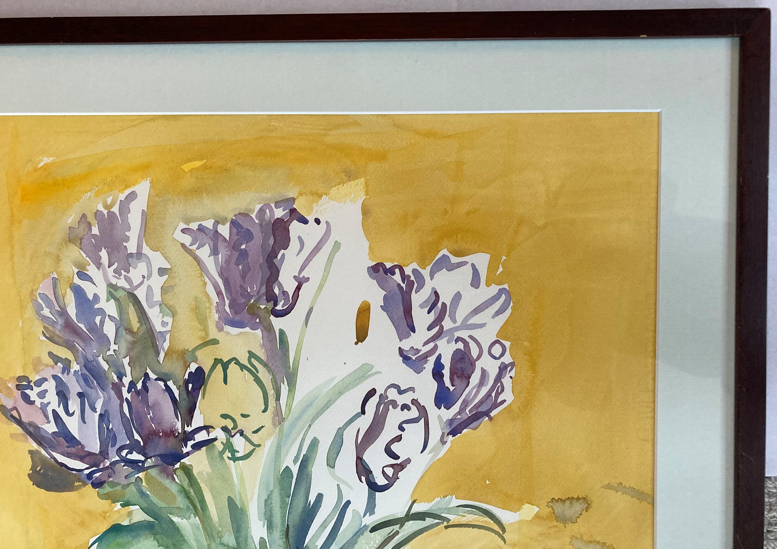 Groot fleurig aquarel van Gerda van Kersbergen (1954). Vroeg werk uit