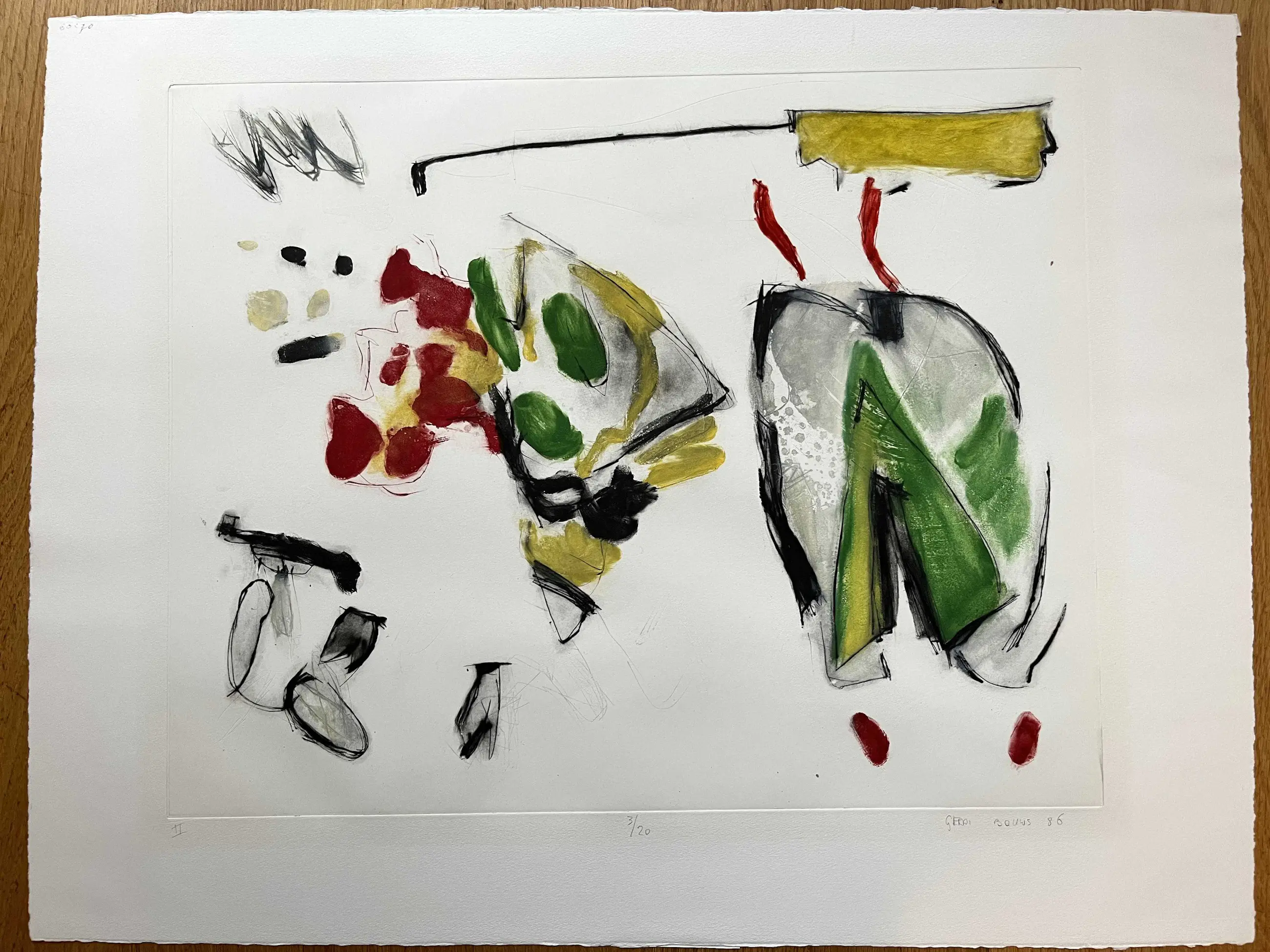 Kleurrijke ets uit 1986. Kleine oplage 3/20. Afmeting blad 50,5 x 65,5 cm. Afbeelding 39,5 x 49,5 cm. Blad is in perfecte conditie. Ivm afmetingen hogere verzendkosten.