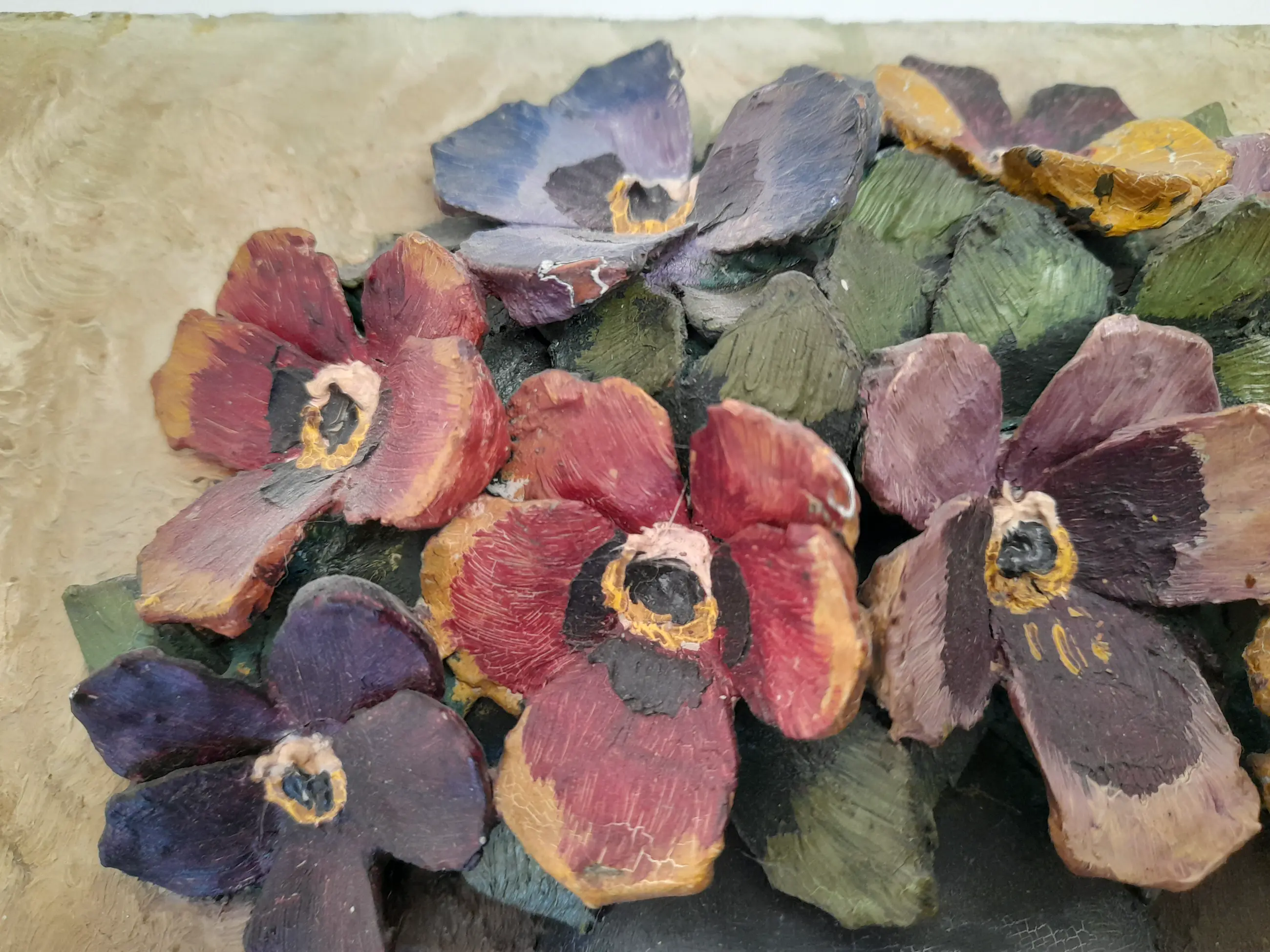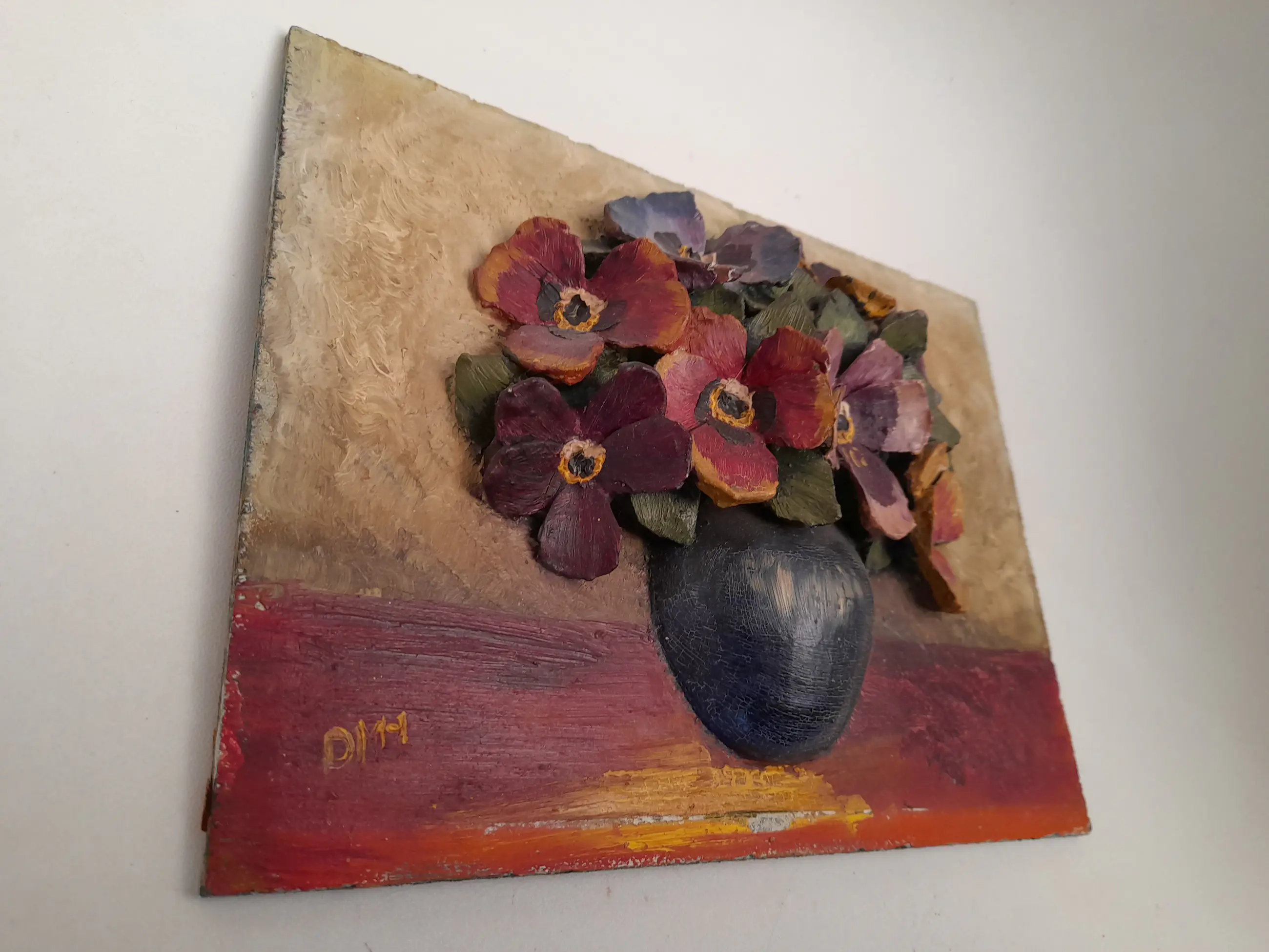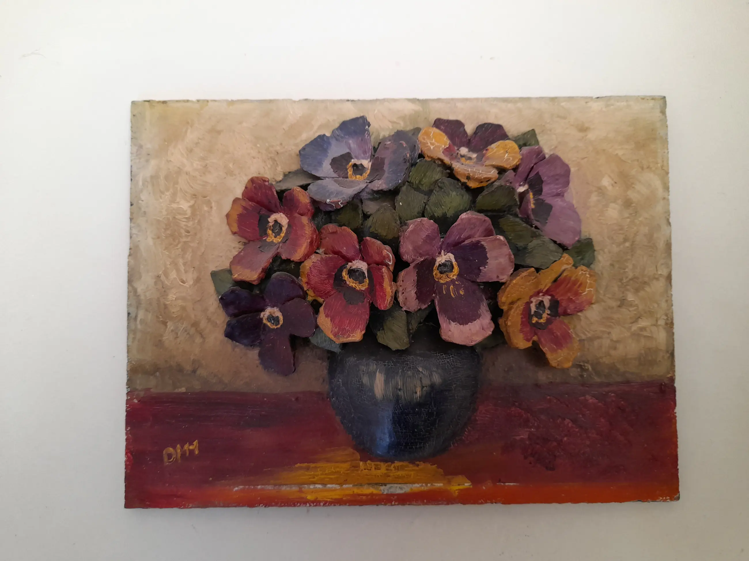 Mooie bloemen kleuren op houten paneel . Gesigneerd.