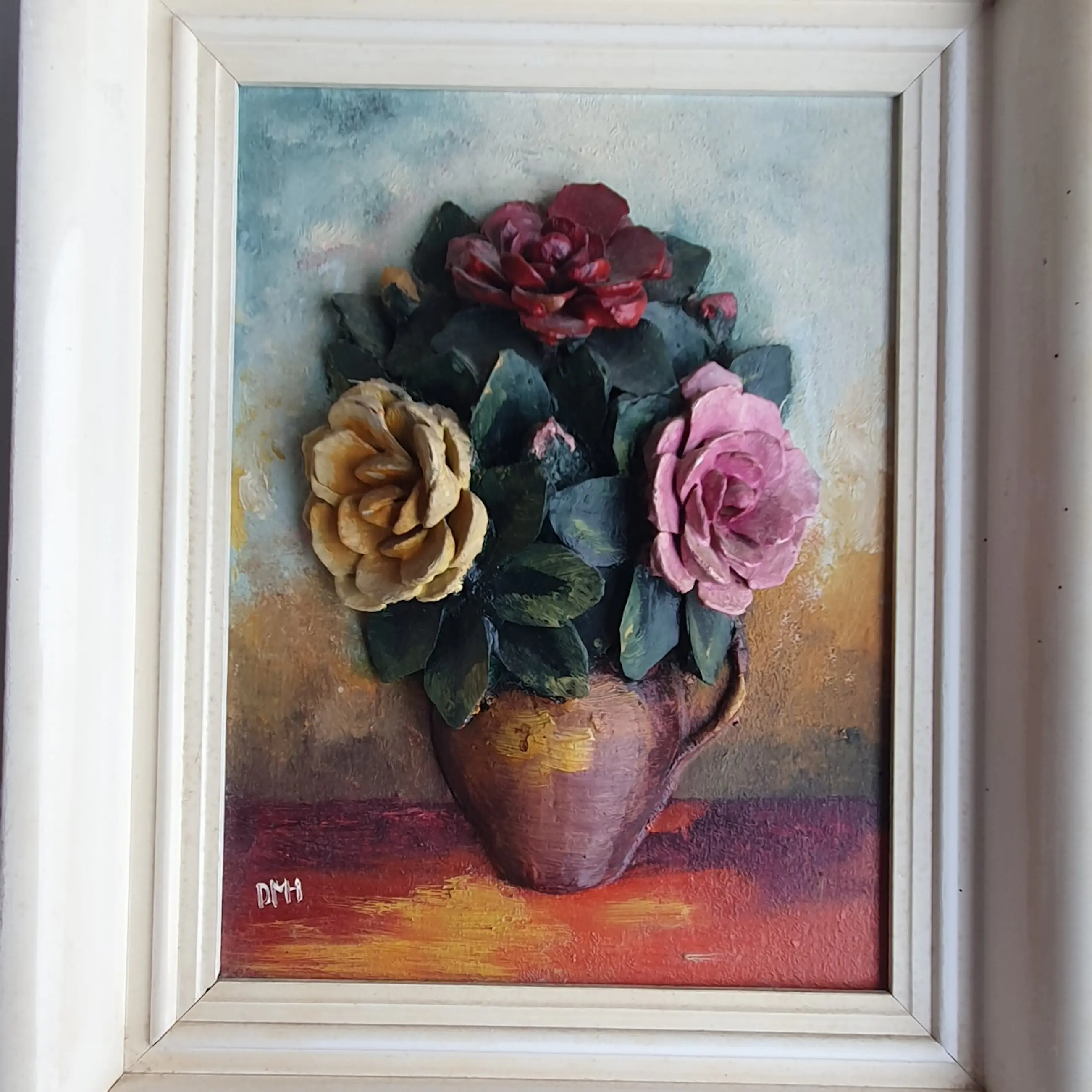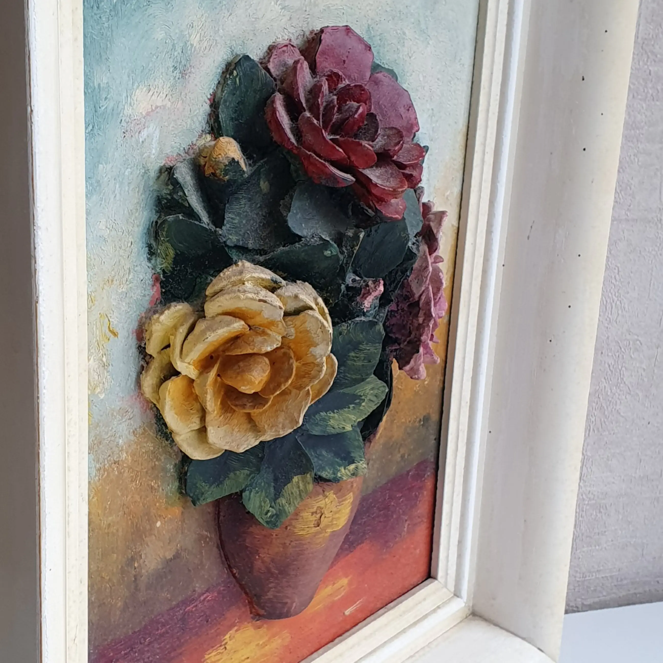 Mooi bloemenschilderij in reliëf.