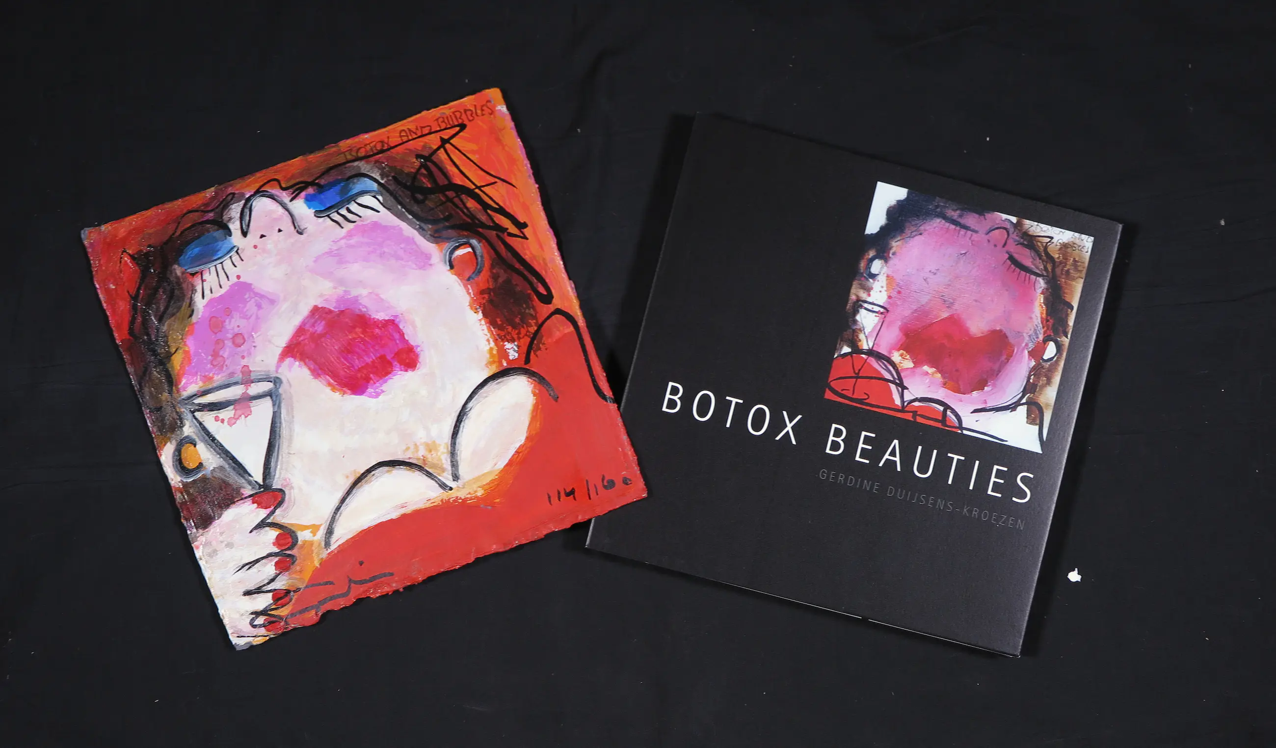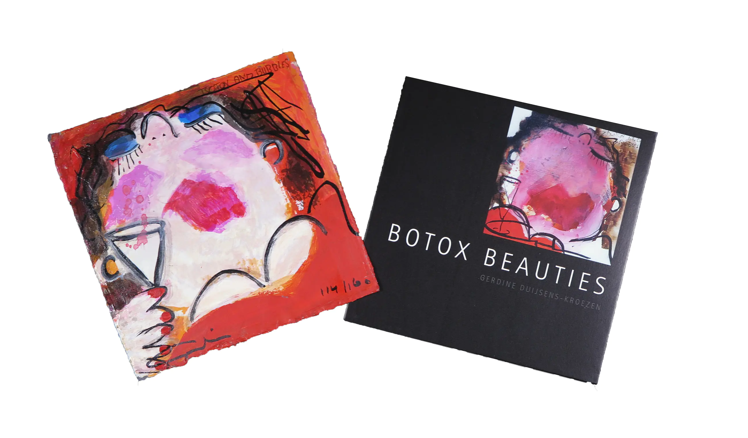 Dit lot bevat het boek van Gerdine Duijsens-Kroeze genaamd 'Botox Beaties'. Samen met het boek is een grafiek op geschept papier gemaakt genaamd Botox and Bubbles. Deze grafiek heeft als oplagenummer: 114/160.
