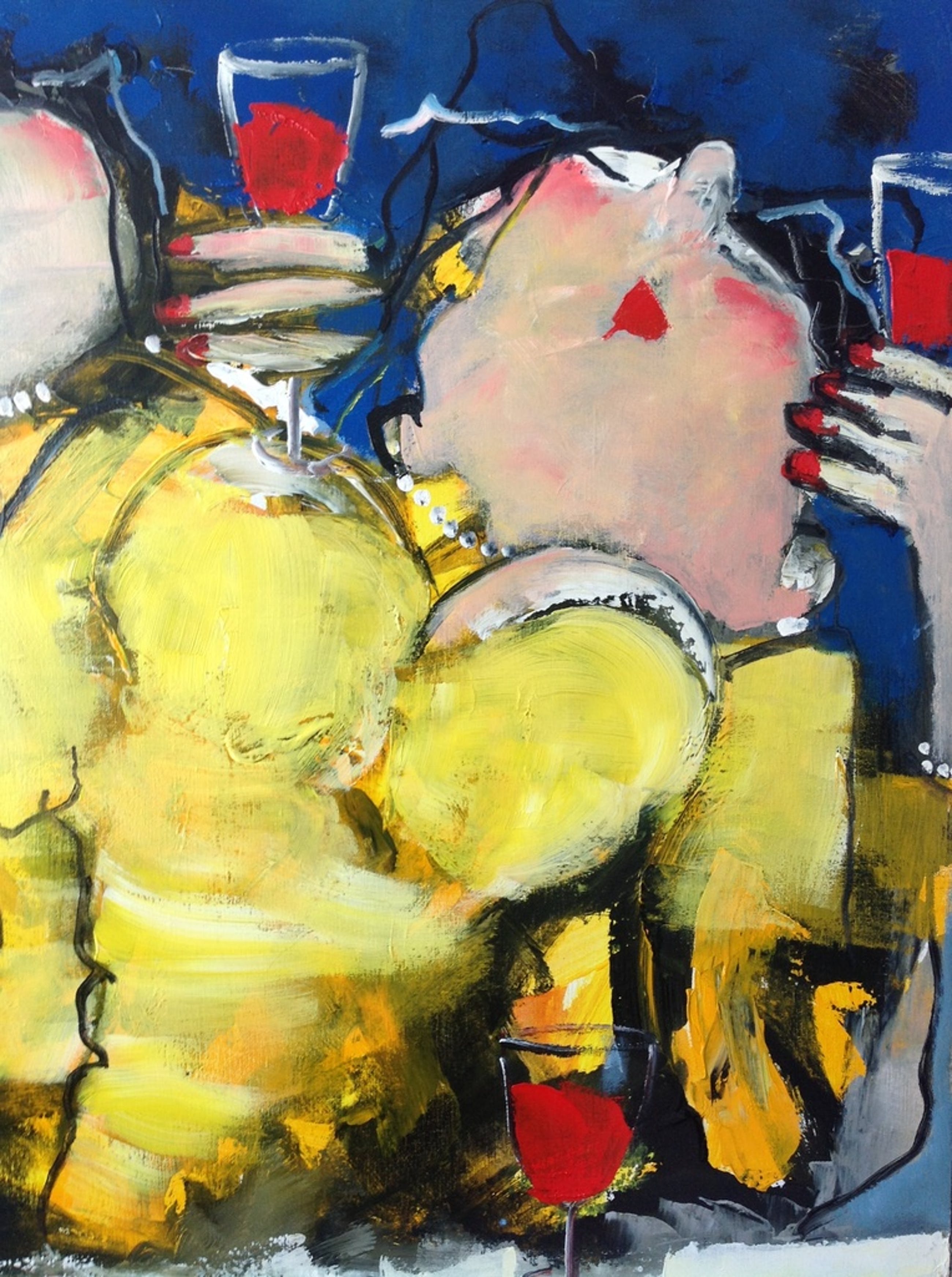 Uniek prachtig kleurrijk werk in haar herkenbare stijl met ( de enige echte ) figuren.