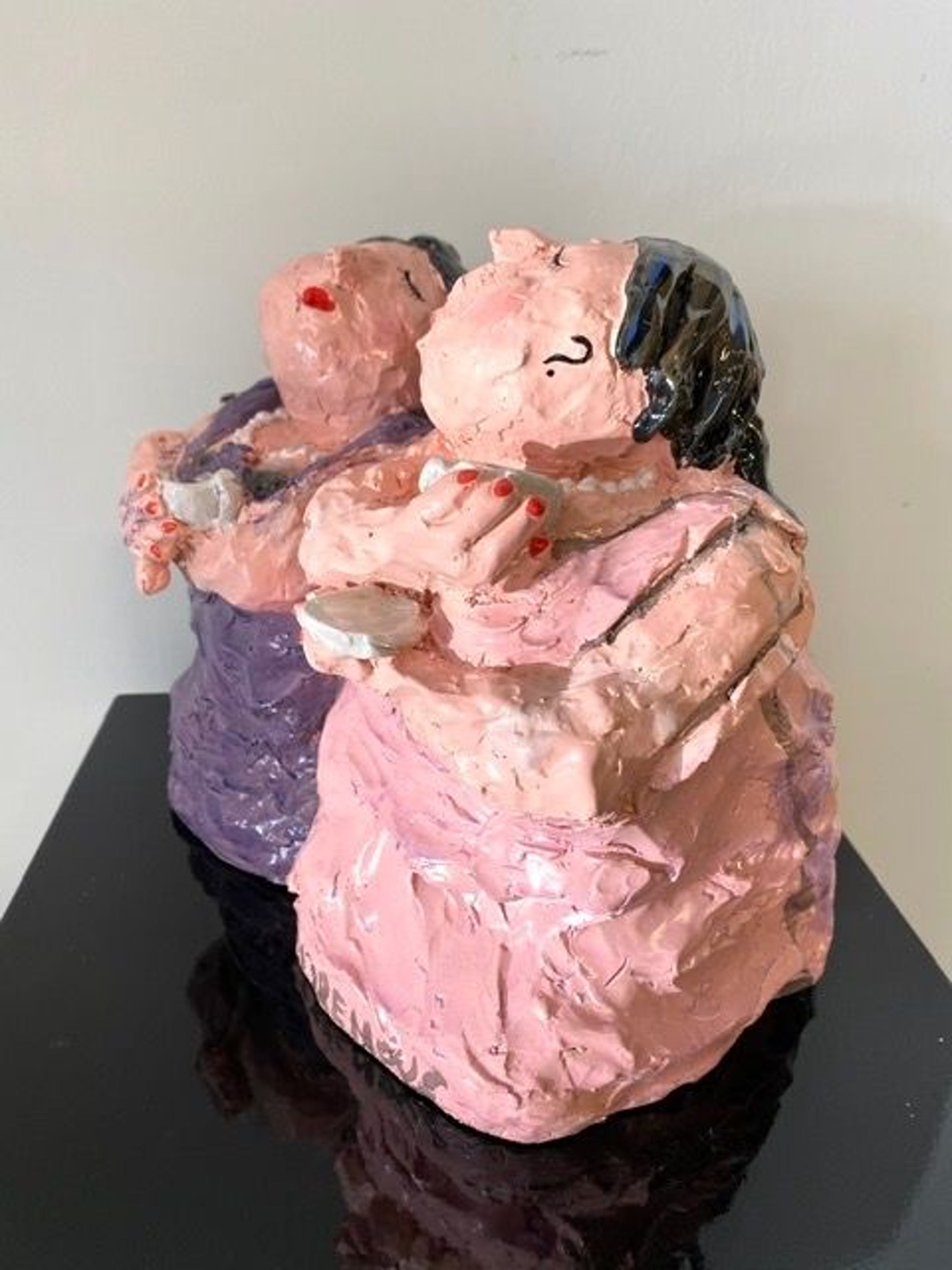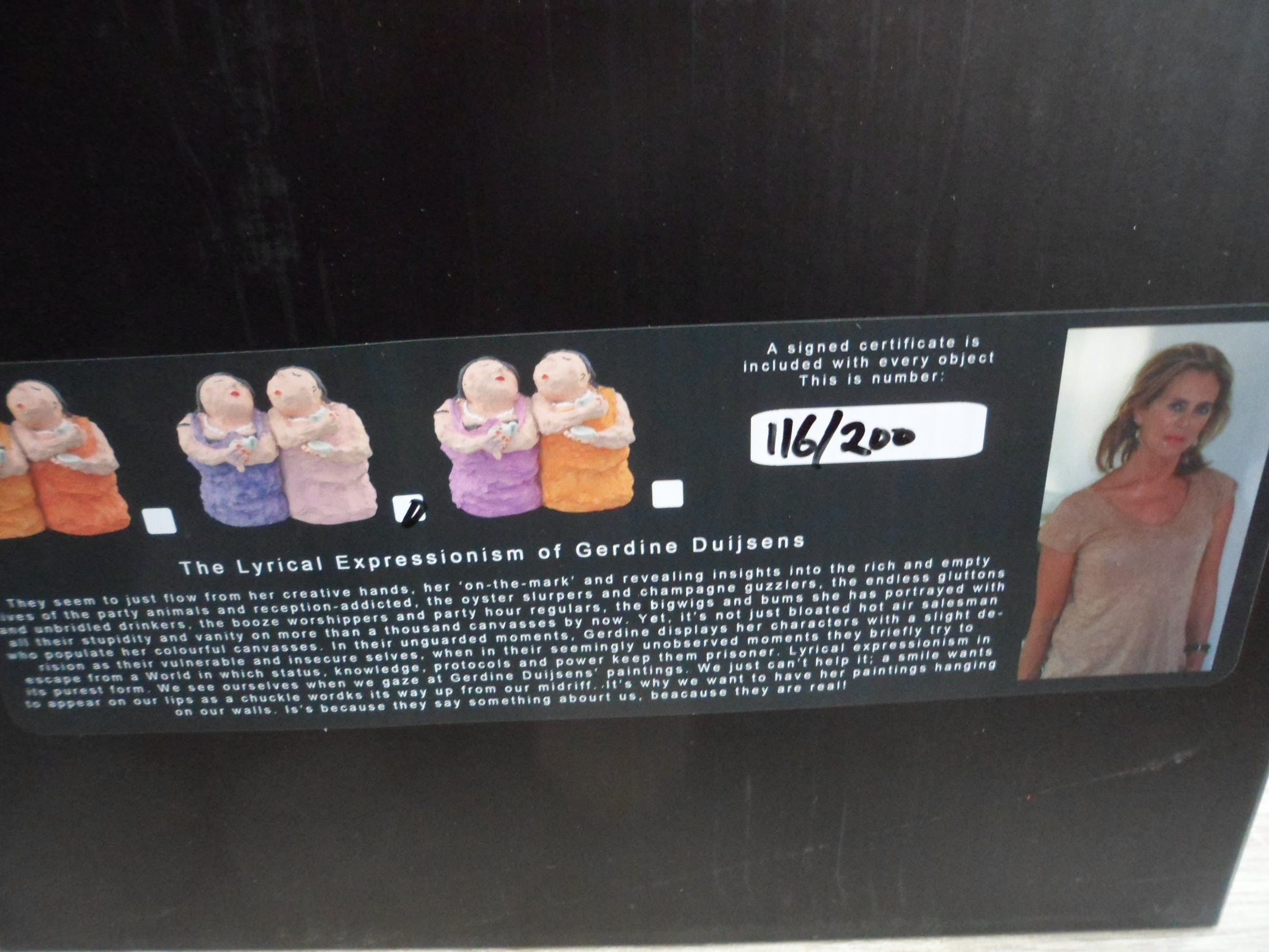 Een zeer fraai kunstobject uit de serie Entre Nous van Gerdine Duijsens genaamd Tea Ladies. Het kunstobject is met de hand beschilderd, genummerd en voorzien van een fraaie gift box.