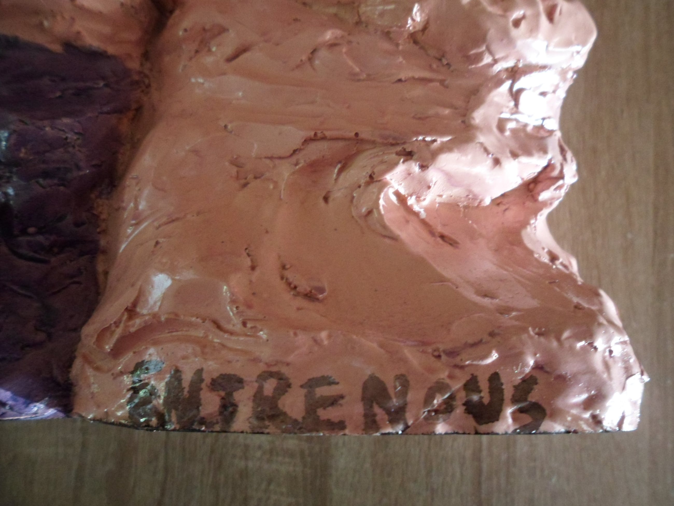 hoofdzakelijk met acrylverf, maar ook met olieverf, houtskool, krijt