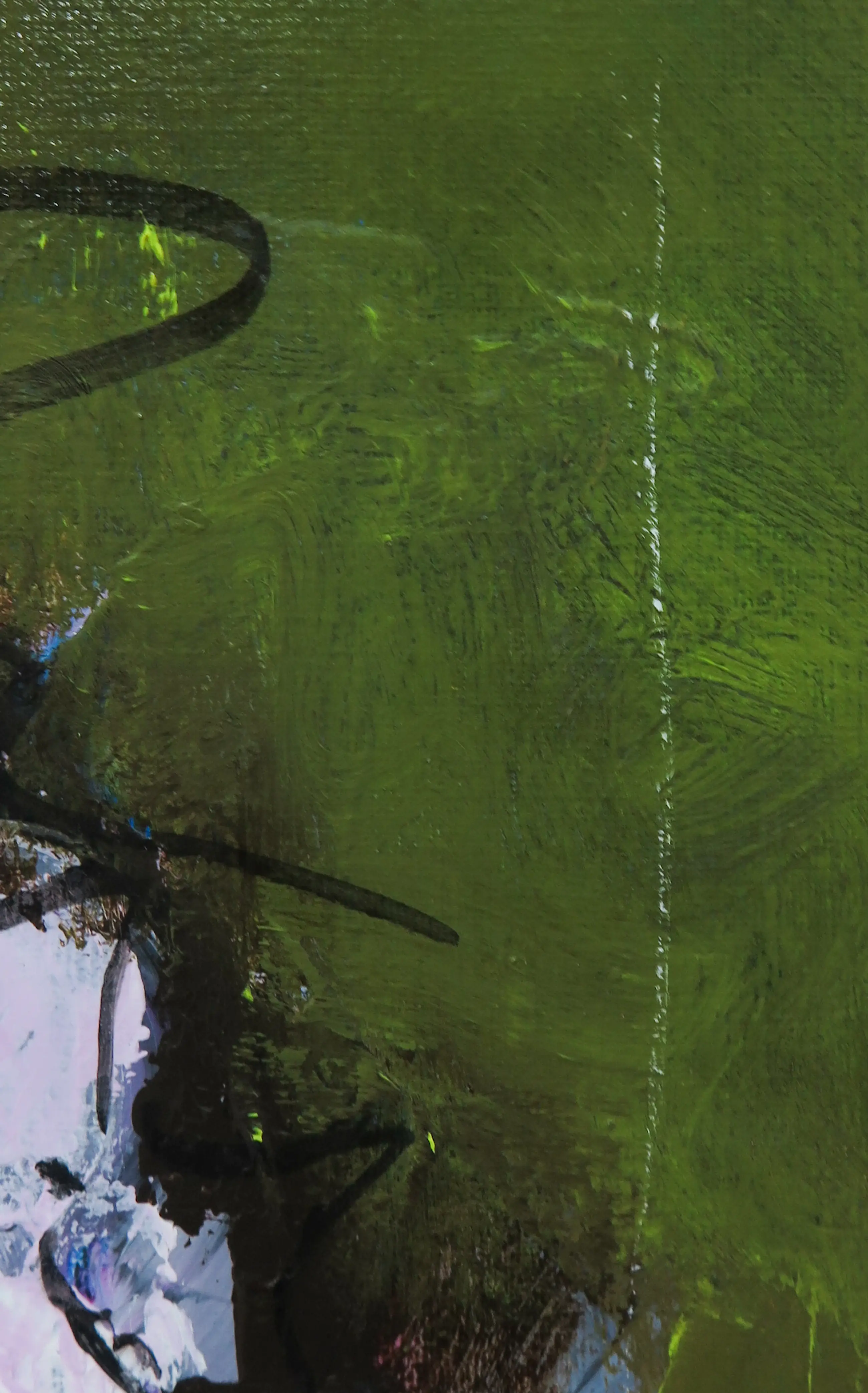 | Het werk is in goede staat, afgezien van de minimale slijtagesporen aan de randen en hoeken van het doek. Aan de rechterzijde van de compositie zit een oppervlaktekras, zie hiervoor de detailfoto. | |