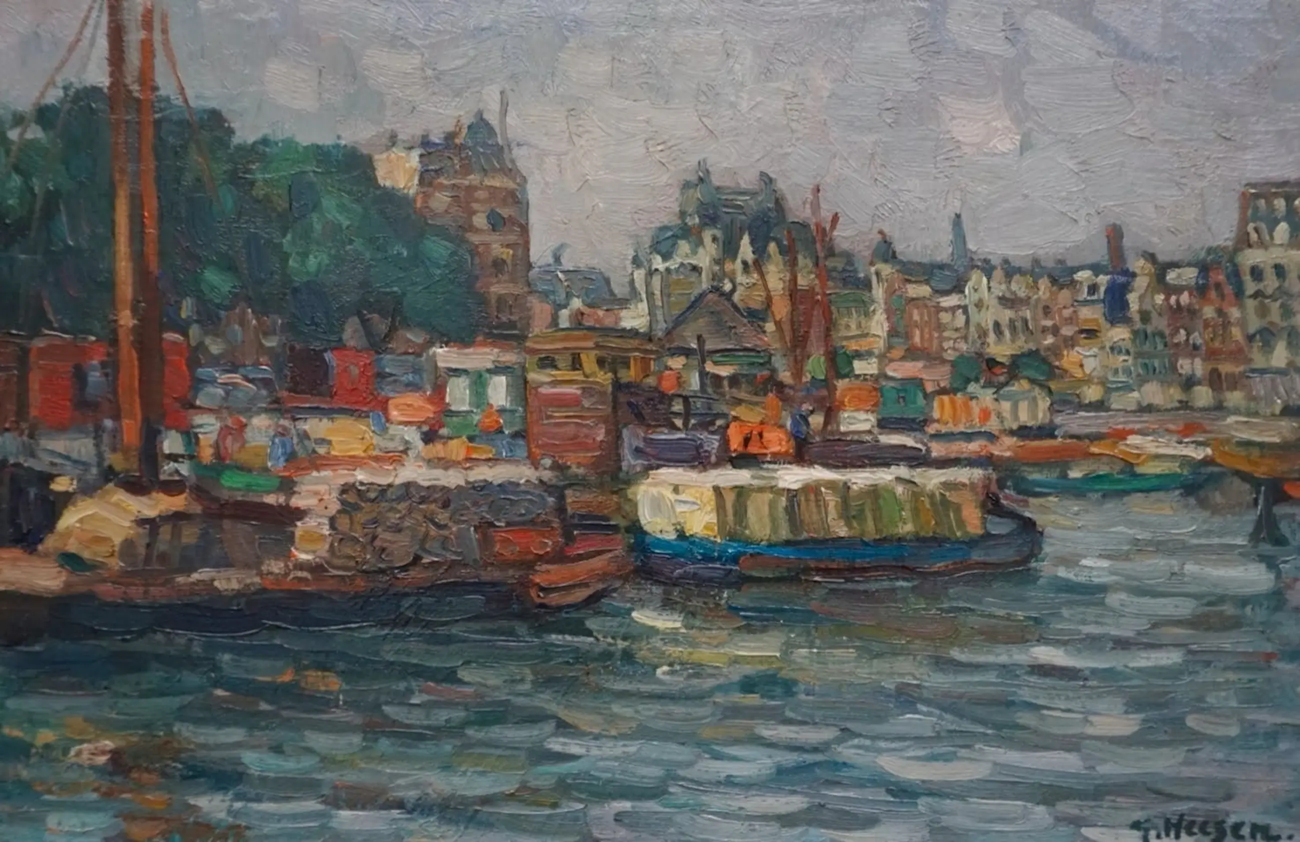 Aangeboden een kunstwerk (schilderij) van de Winterswijkse kunstenaar Ger (Gerhard) Heesen (Winterswijk 1924 -2011) Waarschijnlijk een werk uit de jaren vijftig toen hij in Amsterdam woonde en werkte als leraar aan de Vrije Academie (1948 tot 1960)