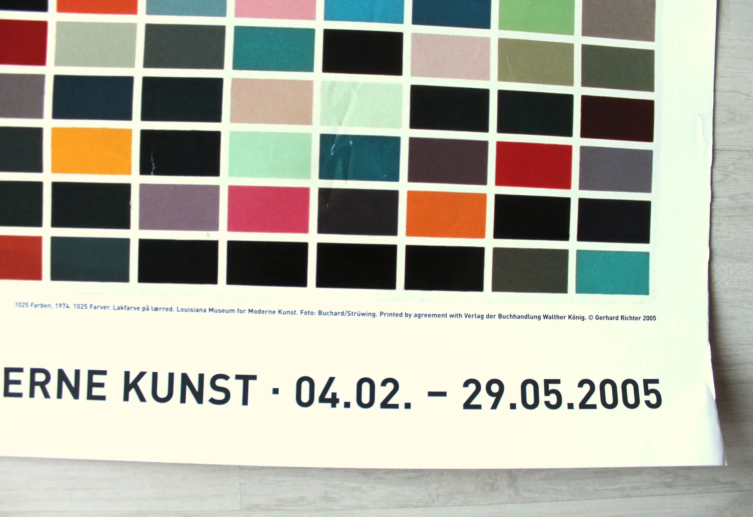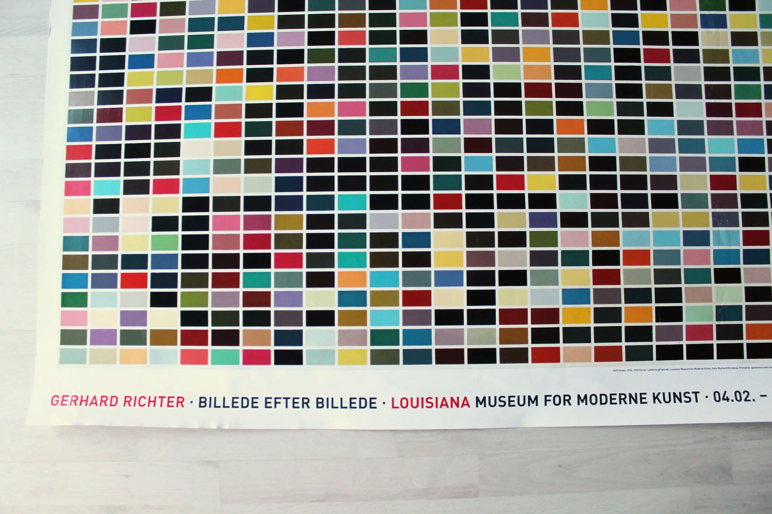 Originele poster van prof. Gerhard Richter (*1932). Titel: "Billede efter Billede" Louisiana Museum of Modern Art" 2005 - De uitgave is gebaseerd op een foto van het olieverfschilderij "1025 Colors" uit 1974. Techniek: Offsetdruk in kleur op hoogwaardig papier. Niet ondertekend. Formaat van het vel: 124 x 124 cm. In goede staat. De foto's maken deel uit van de beschrijving van de staat van het product.