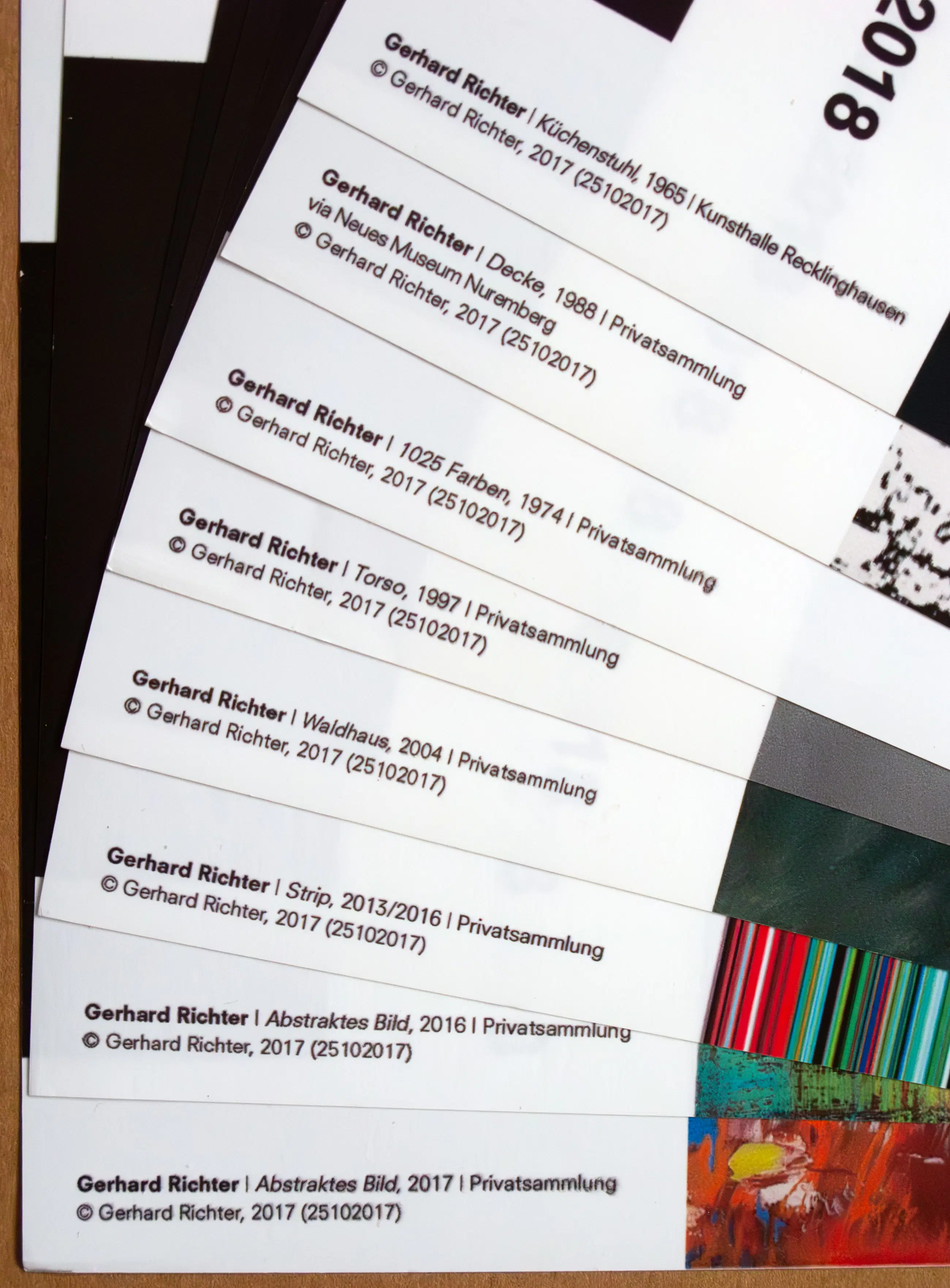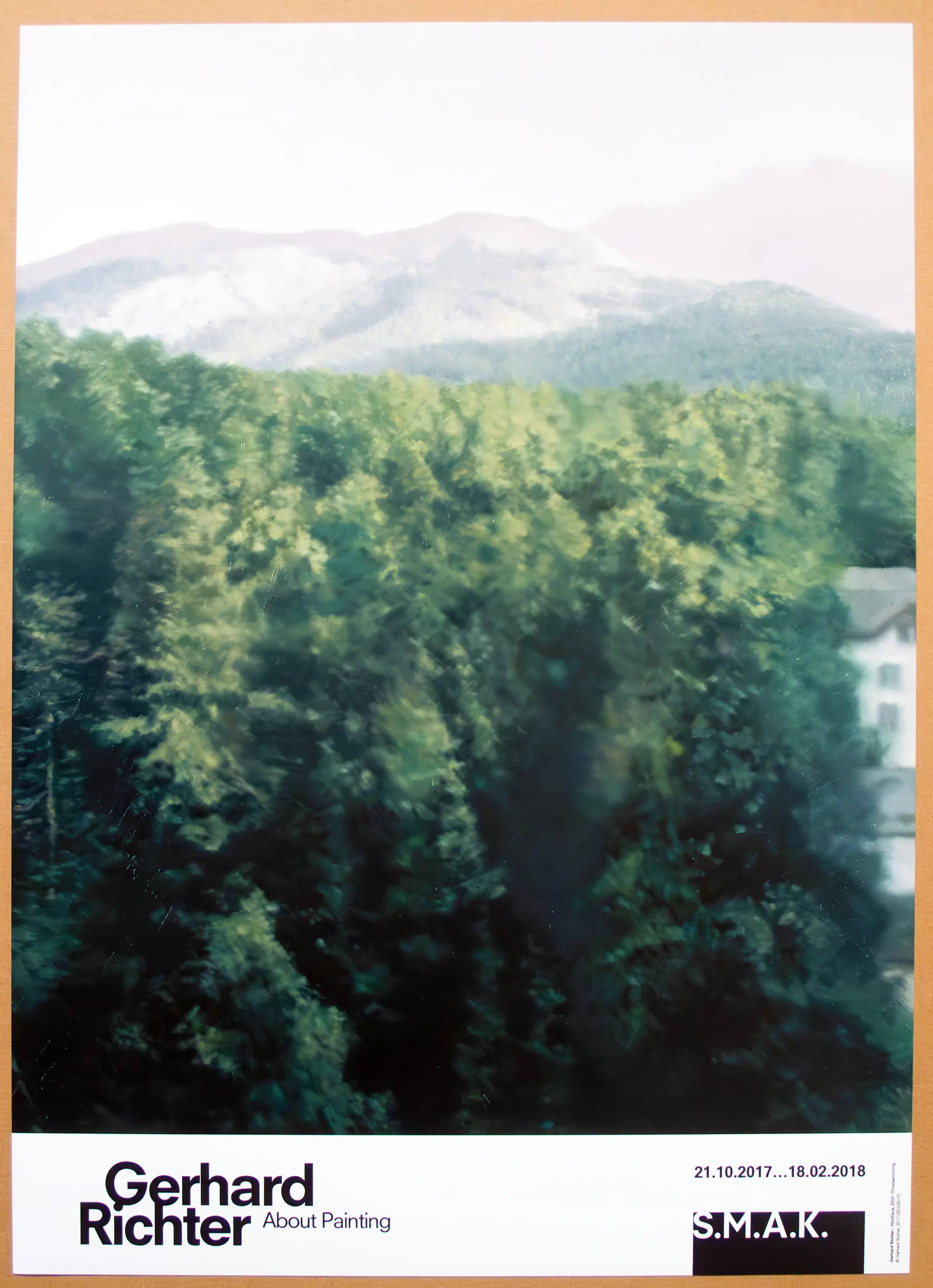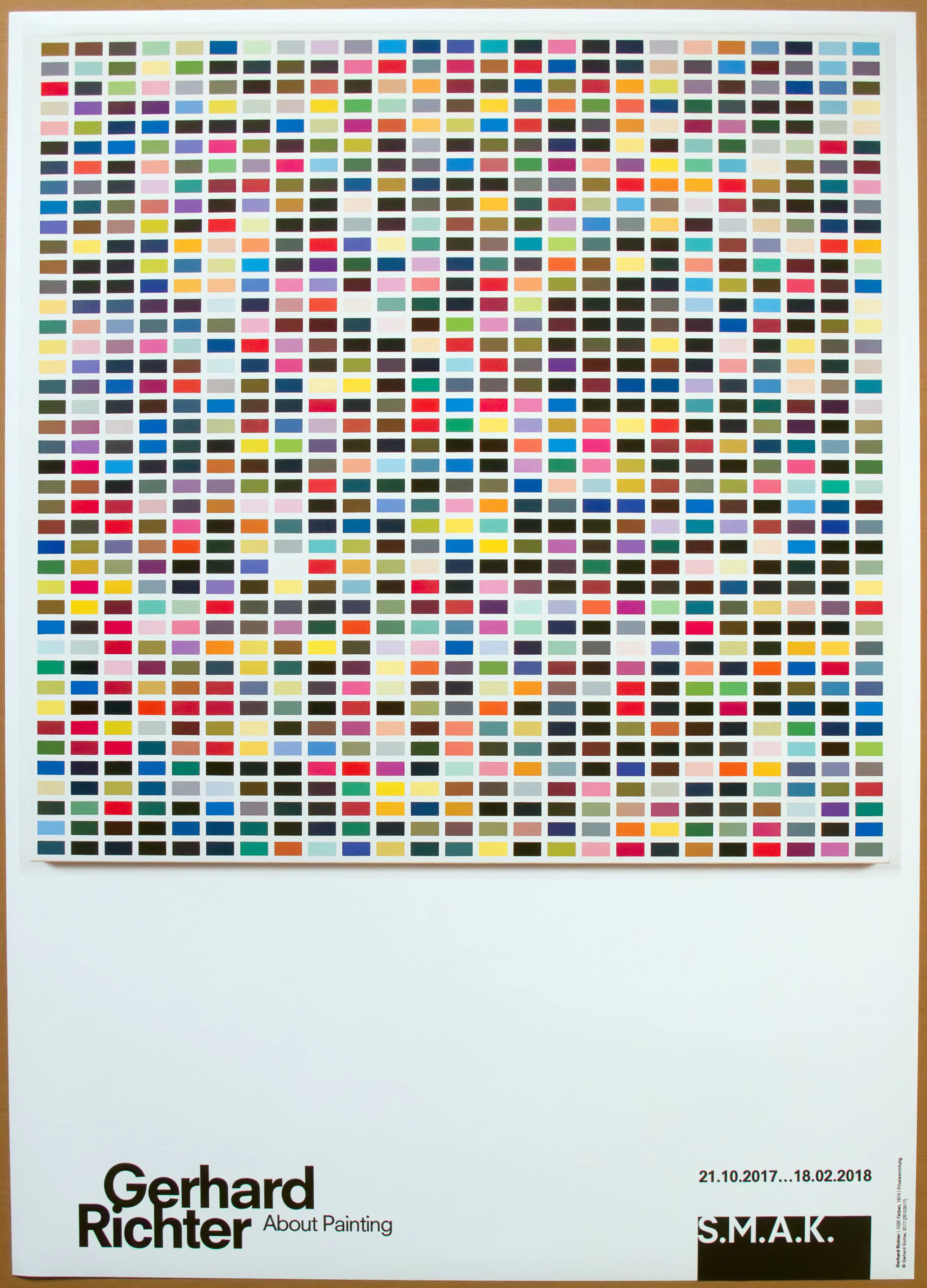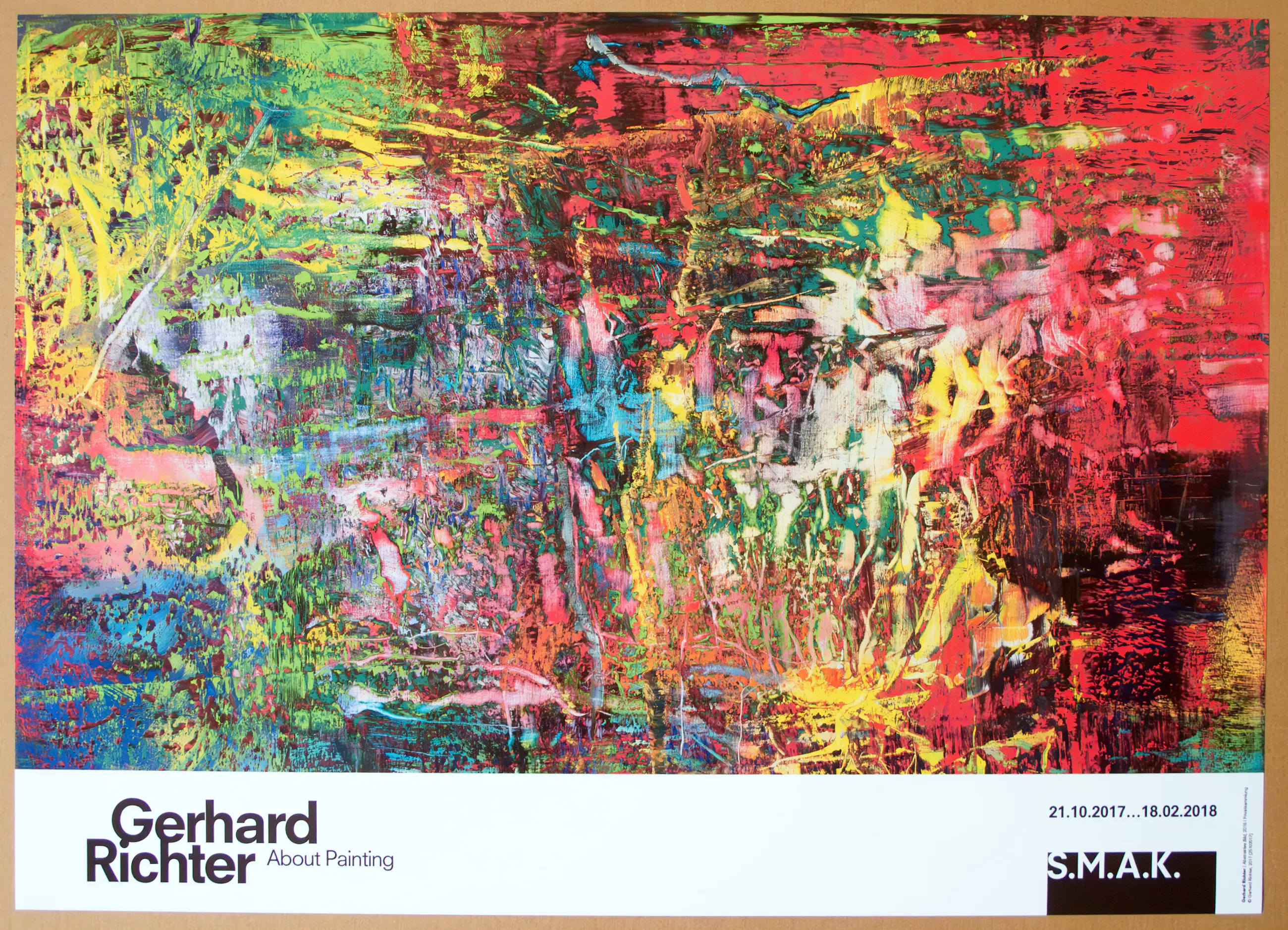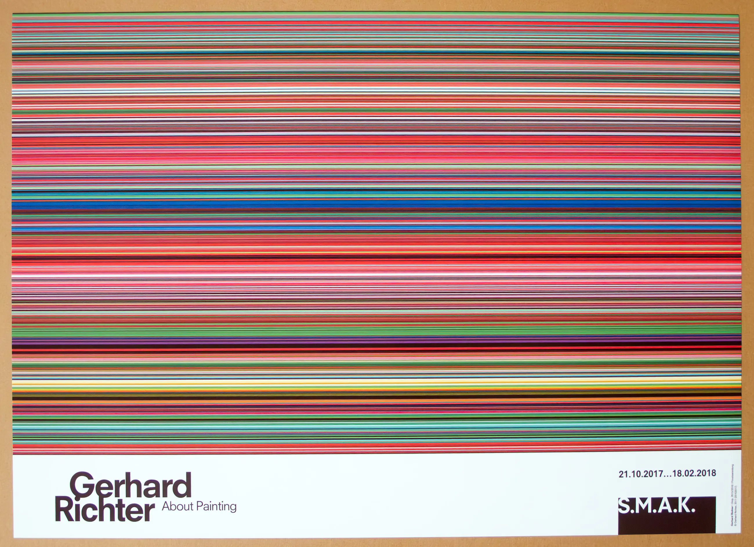 Alle acht offsetlithoposters die het SMAK Gent (Stedelijk Museum voor Actuele Kunst) ooit publiceerde voor de tentoonstelling "About Painting" van Gerhard Richter uit 2017.