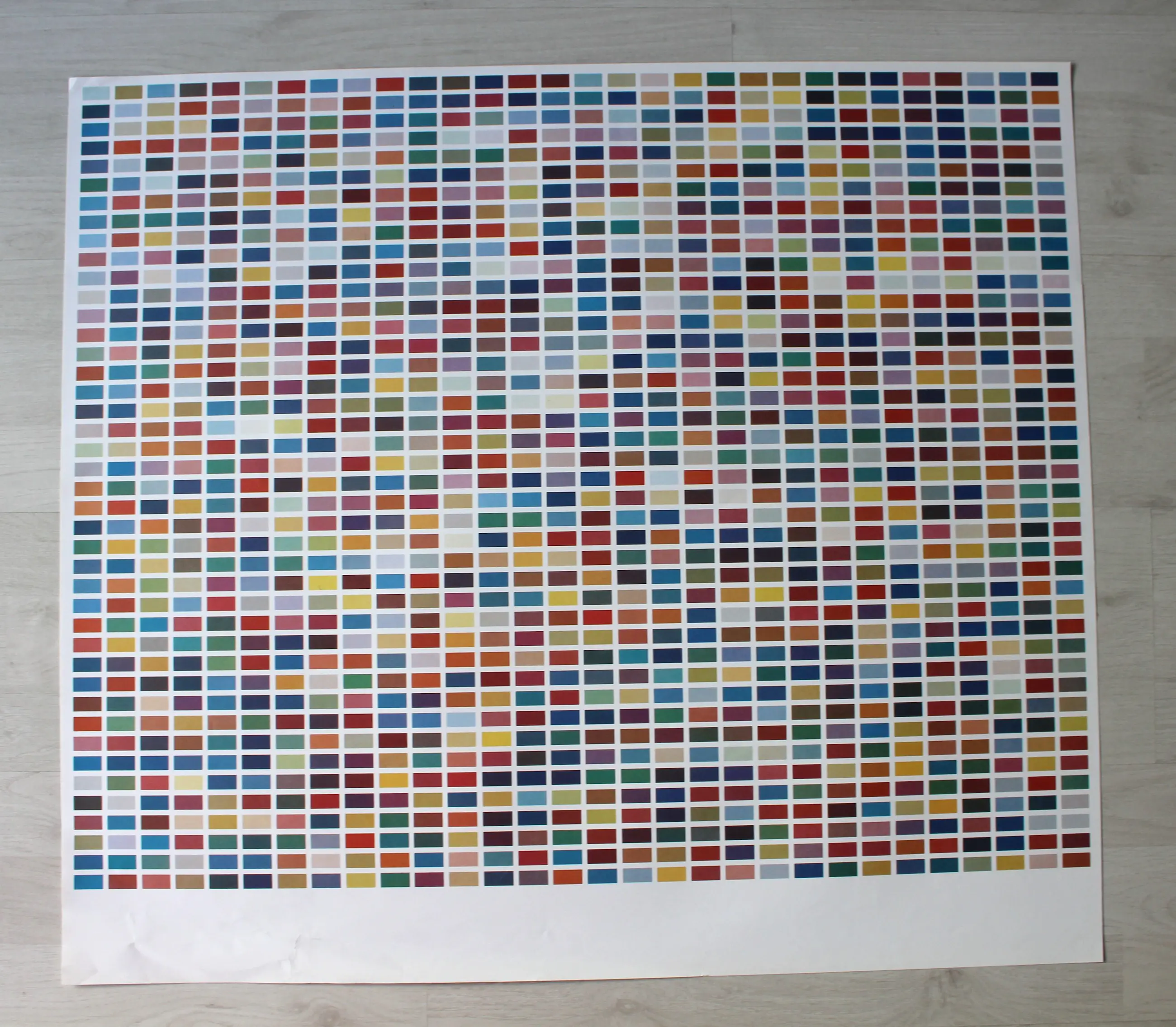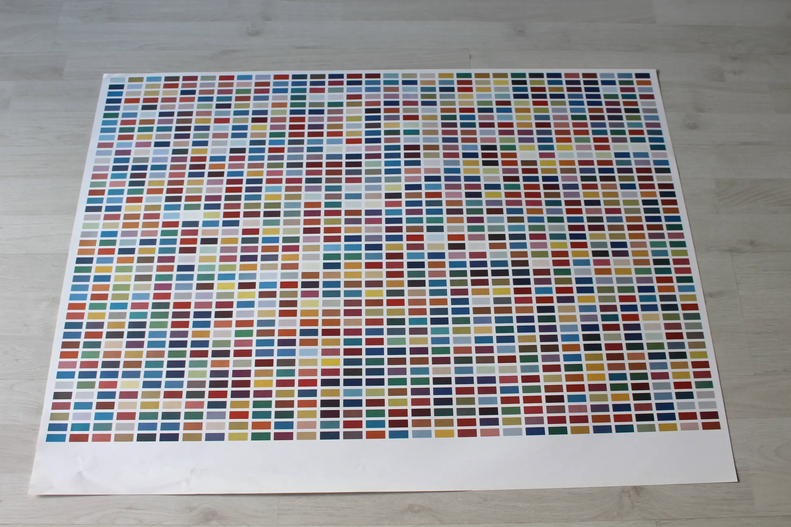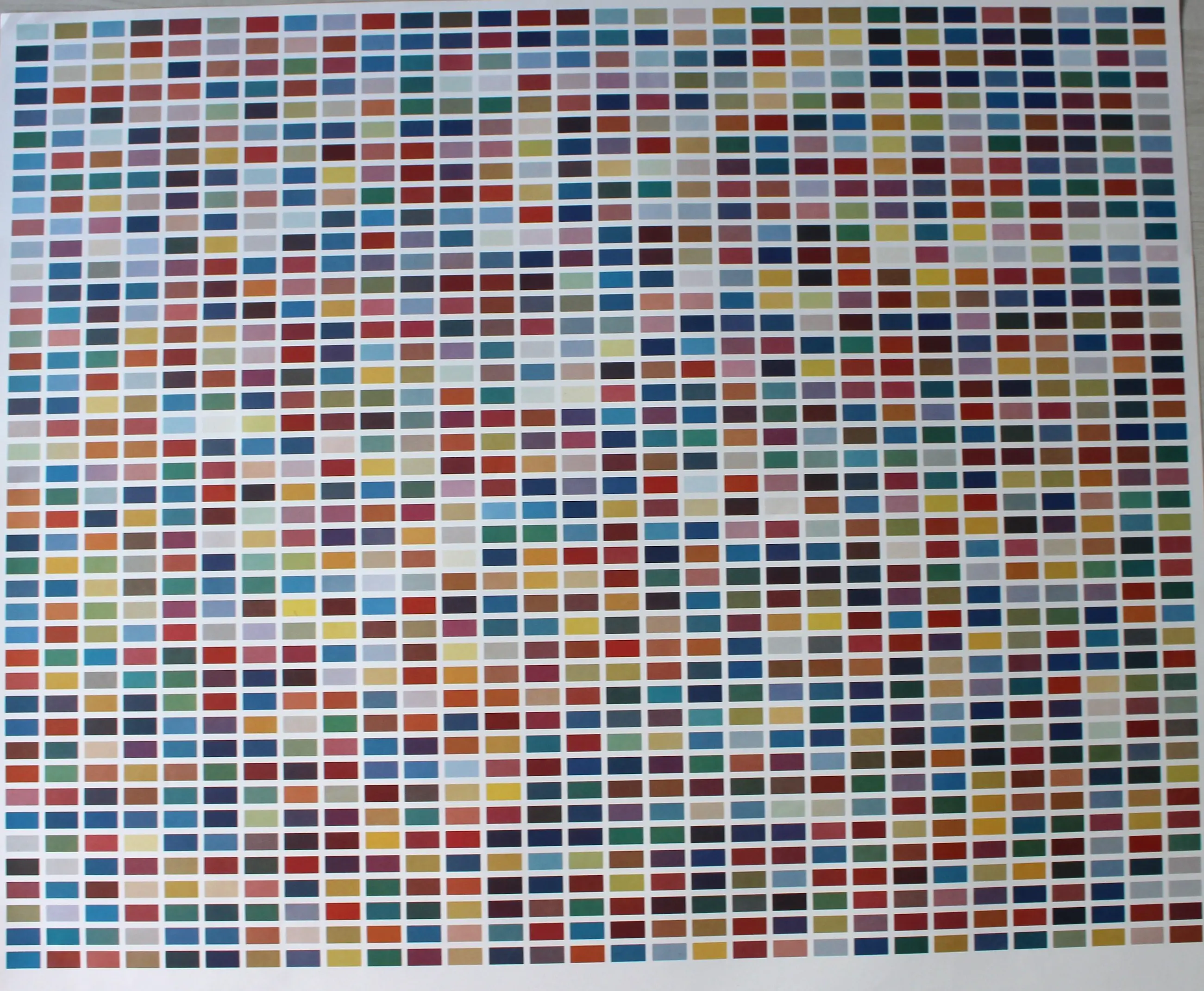 Origineel affiche van prof. Gerhard Richter (*1932). Titel: "1025 Colors" 1989 - De uitgave is gebaseerd op een foto van het olieverfschilderij "1025 Colors". Techniek: Offsetdruk in kleuren op papier. Niet ondertekend. Bladformaat: 76,5 x 68 cm. Het beeld is in uitstekende staat - gerepareerd scheurtje aan de rand (linksonder) - zie foto's. Houd er rekening mee dat! Verzending is verzekerd en professioneel verpakt opgerold, vastgezet in een sterke kartonnen koker.