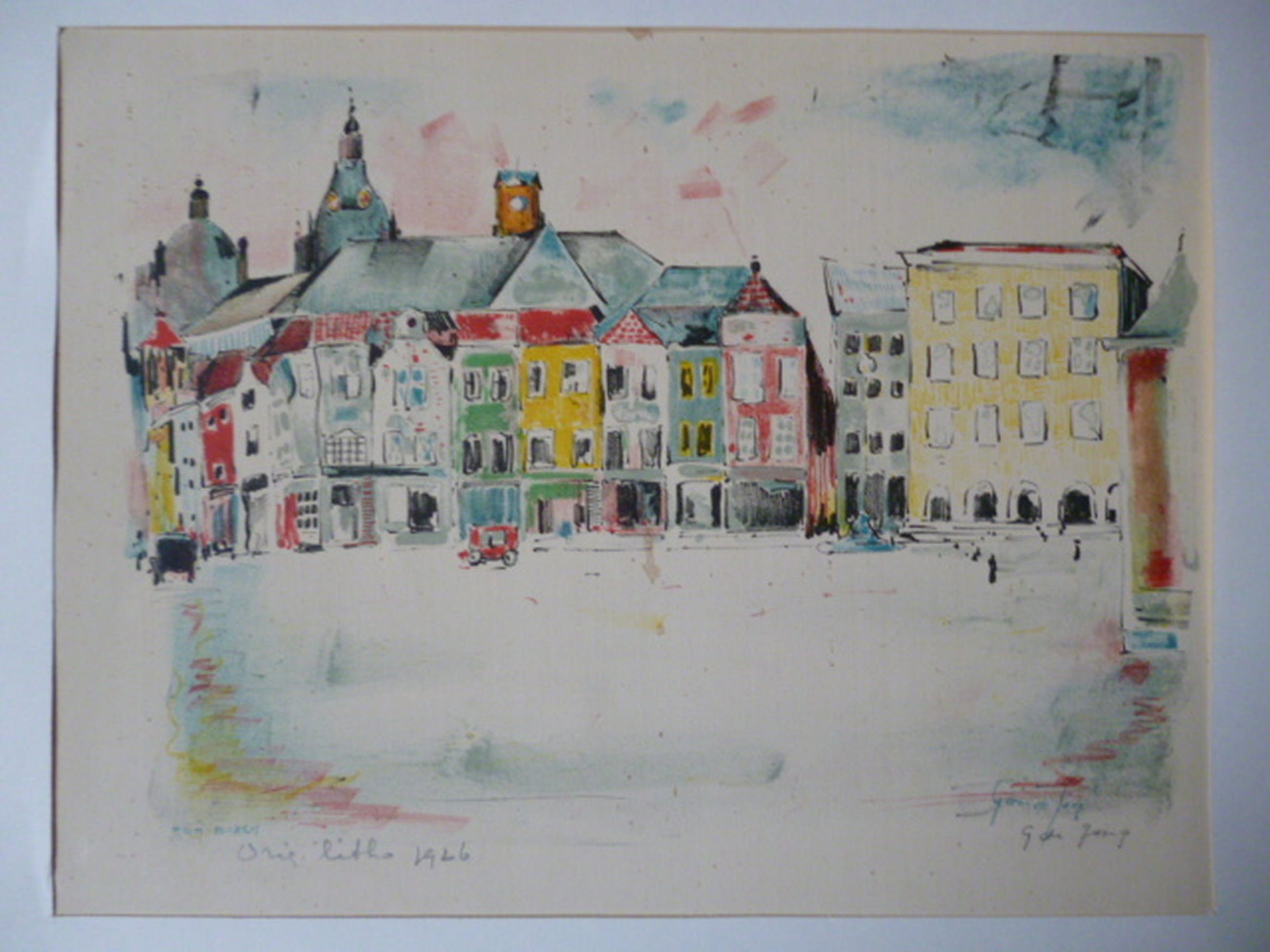 Kleurenlitho, potlood gesigneerd rechtsonder. Orig.litho 1926 linksonder.