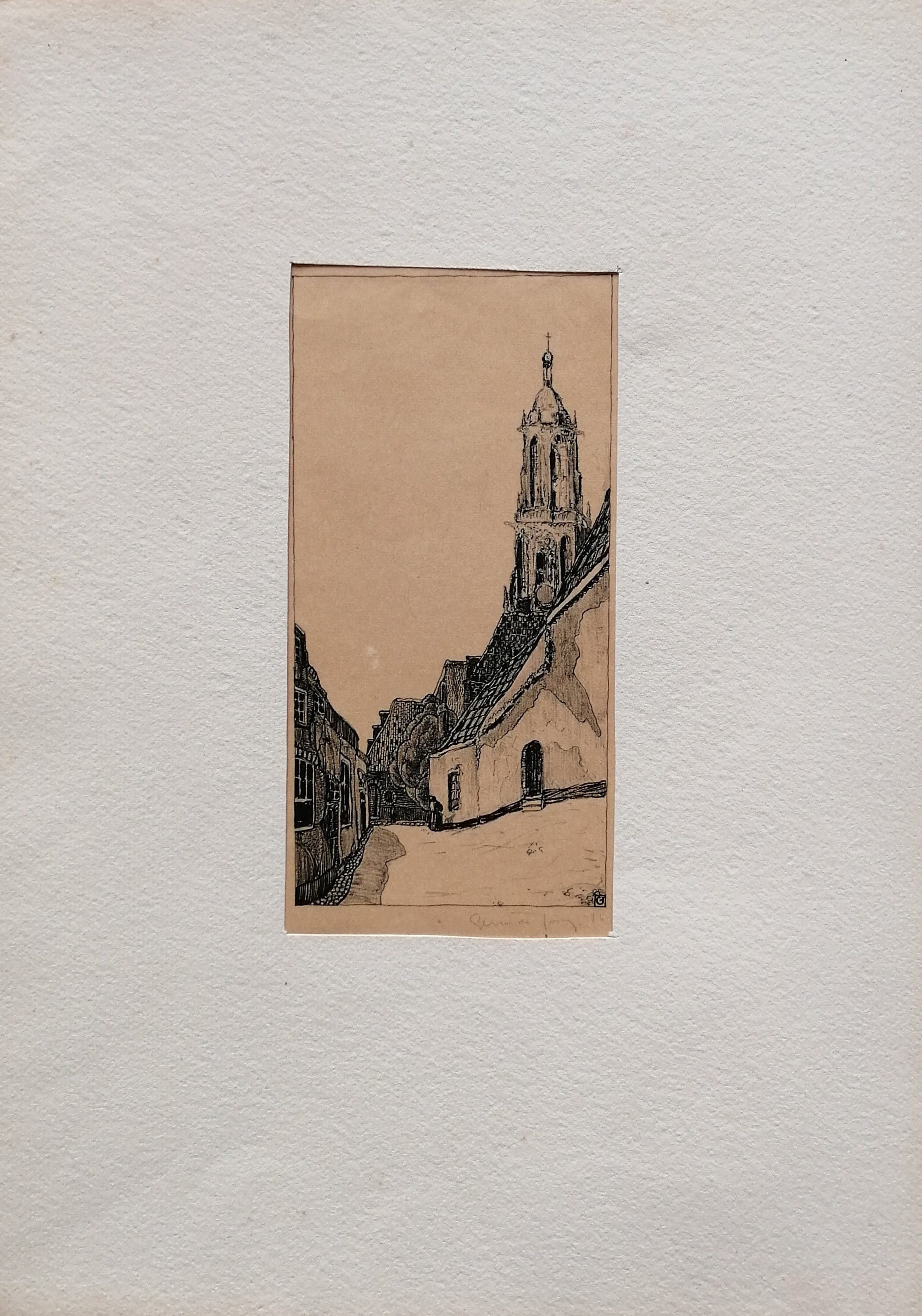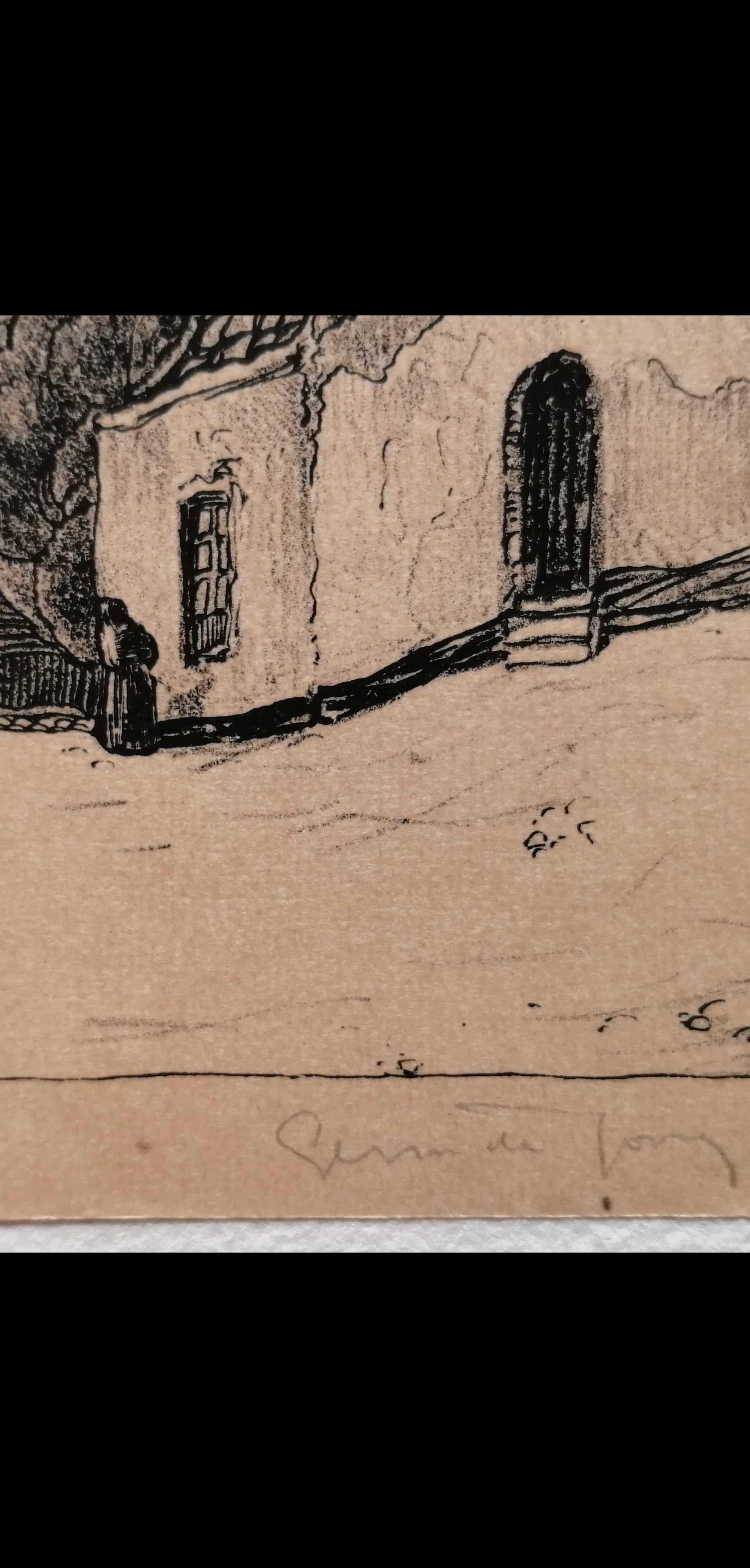 Litho uit 1916.Potlood gesigneerd en gedateerd rechtsonder.Getipt onder papieren passe-partout.Beeldmaat 20x10 cm.Bladmaat 22x11,5 cm.