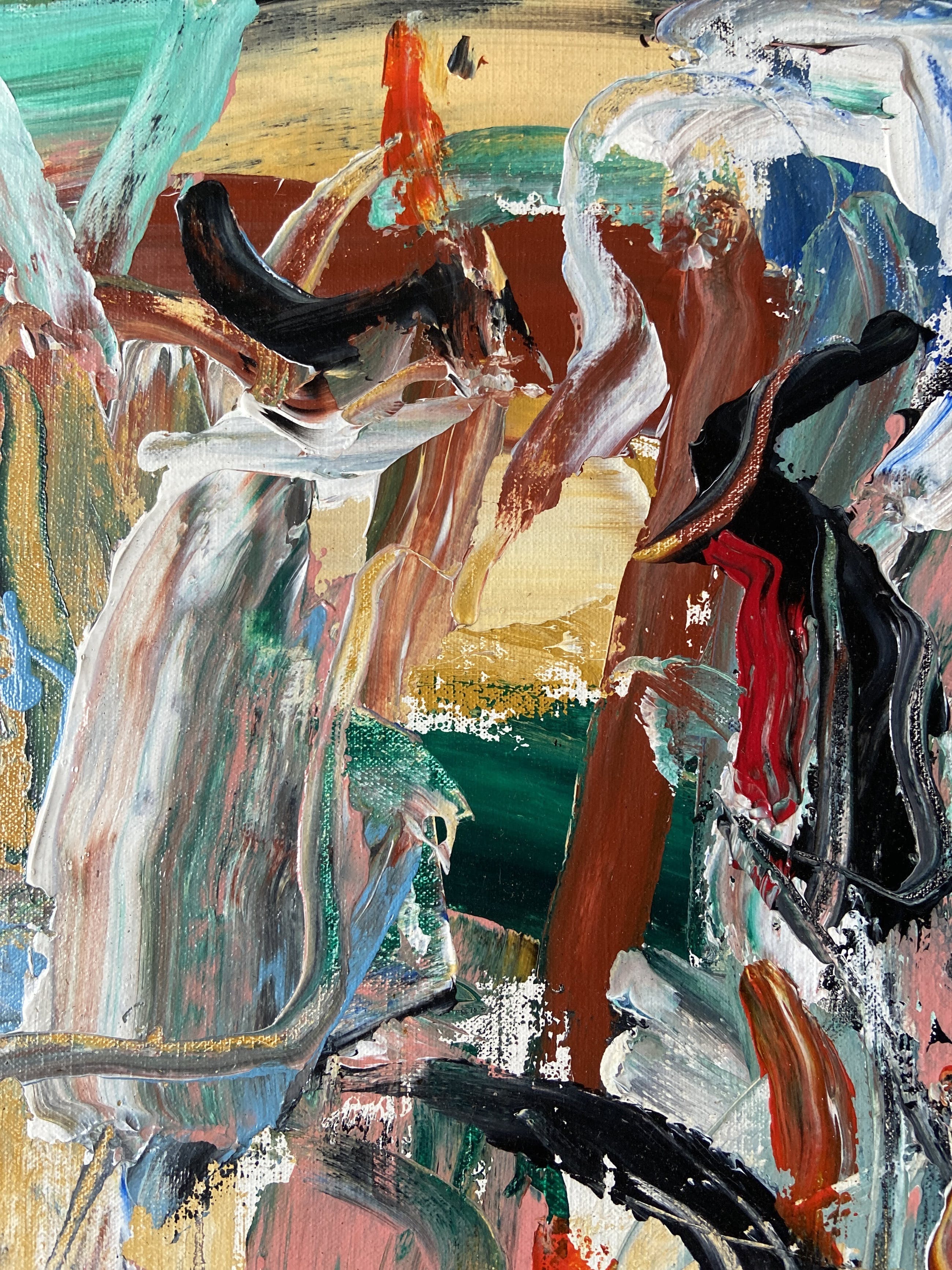 Postma was te omschrijven als een hevige man die heftige schilderijen maakte, met verfexplosies en abstracte kleurkluwens waar figuratie in doorschemert.