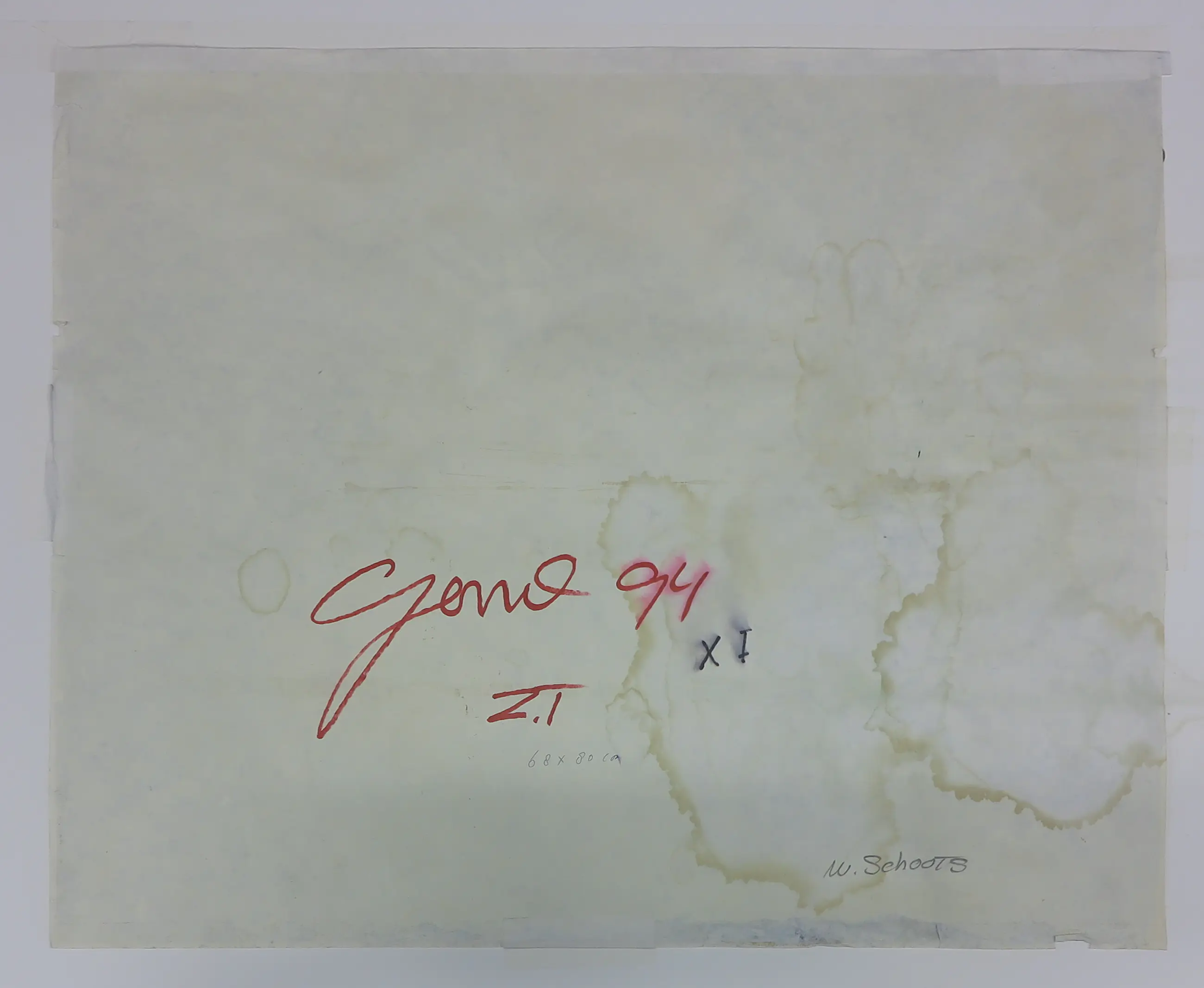 Passe-partout/lijsten: Beschadigingen aan lijsten worden niet beschreven. Indien een werk achter glas is ingelijst en het glas gebroken is, zal dit wel vermeld worden. Passe-partouts worden op geen enkele manier gegarandeerd en ook niet altijd meegezonden.