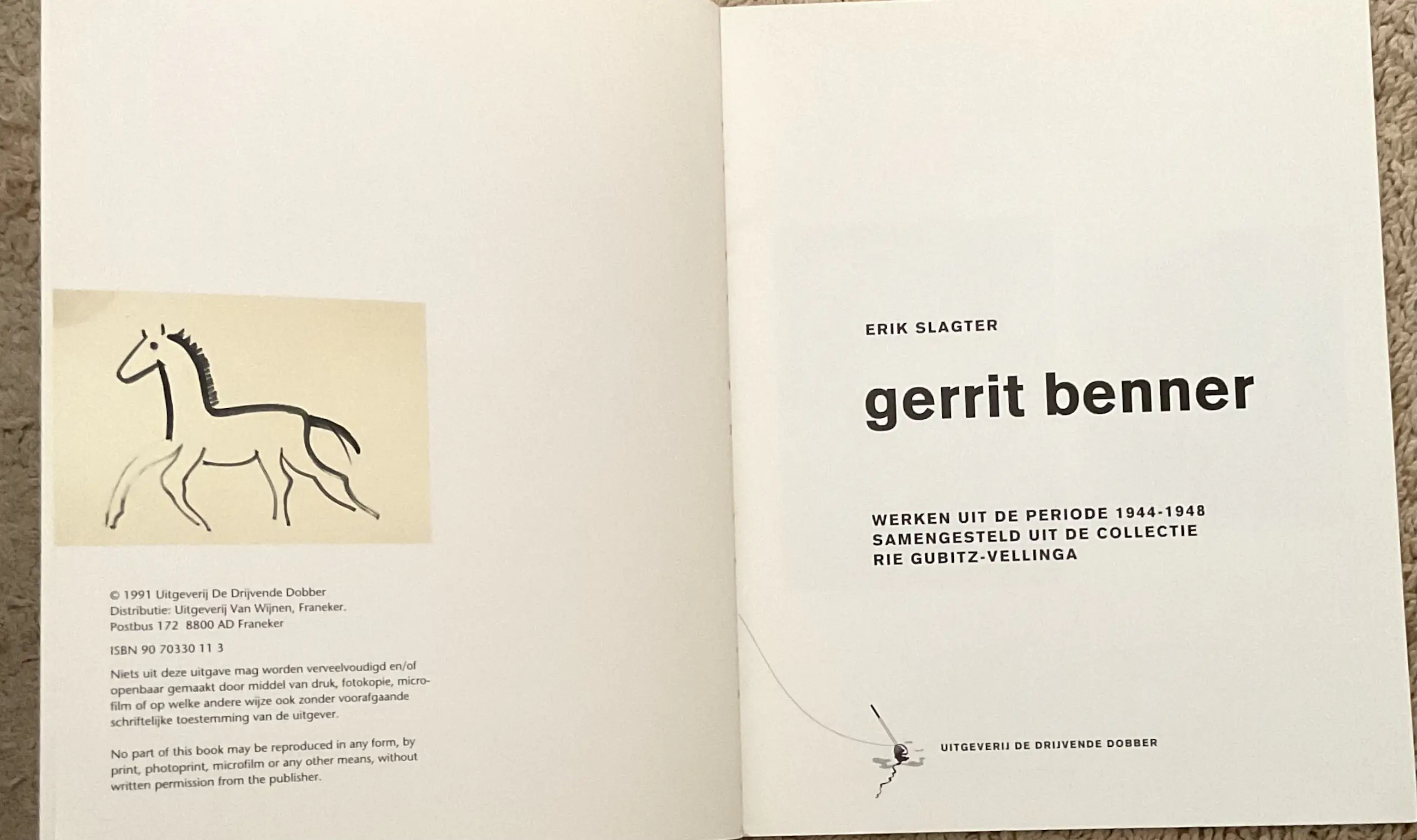 Gerrit Benner. Boek met werk van 1944-1948 Jaar 1991 Softcover Rijk geïllustreerd Uitgever, De Drijvende Dobber Auteur, Erik Slagter 1e druk Nederlands 63 pagina’s