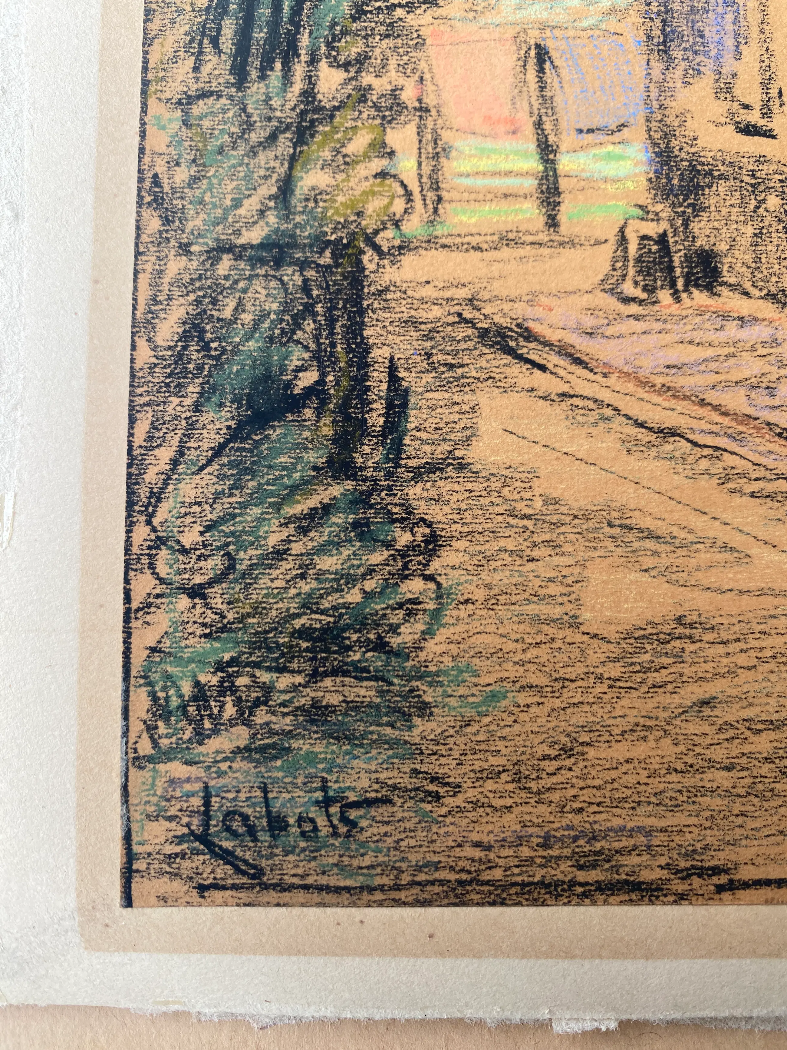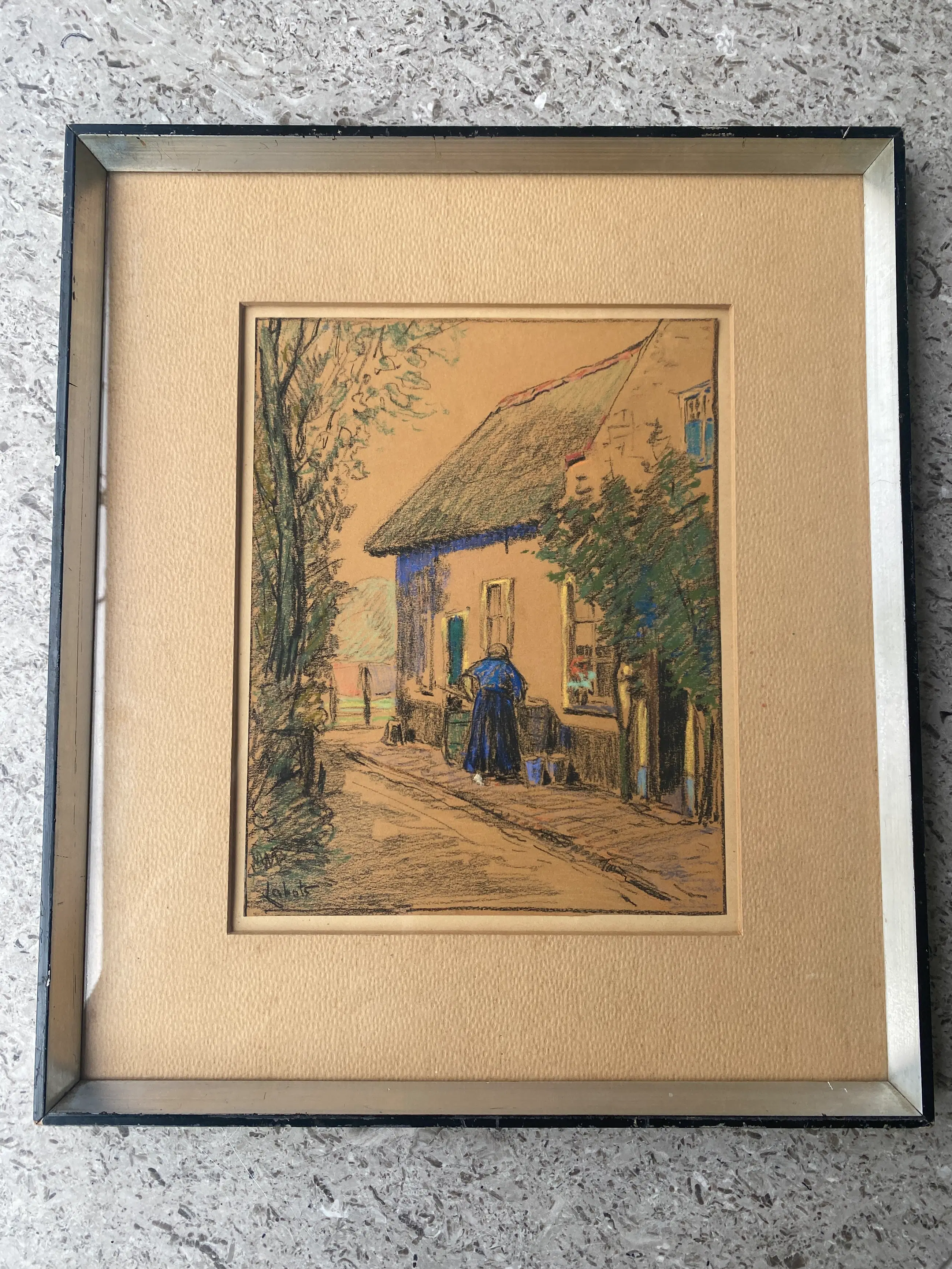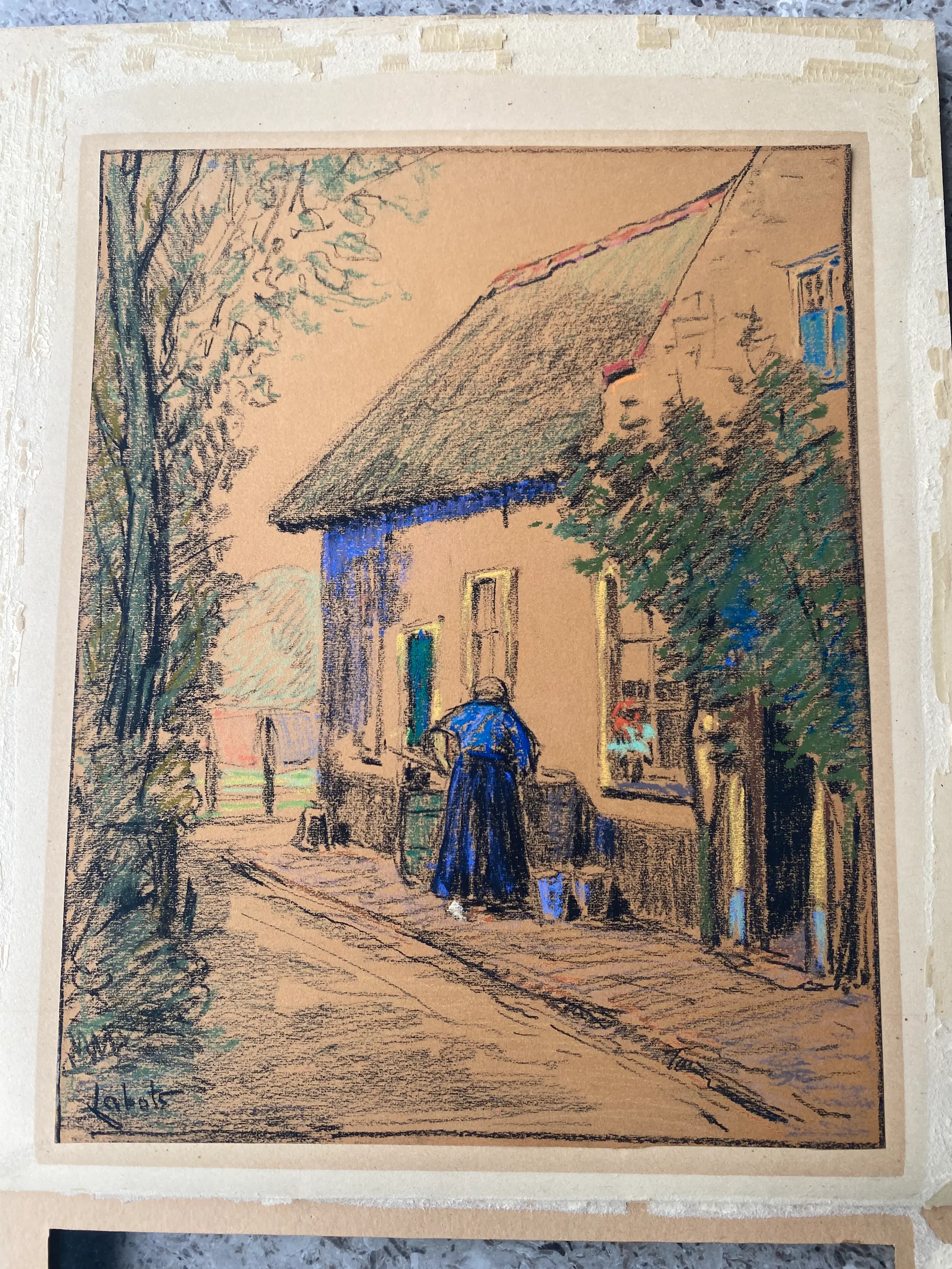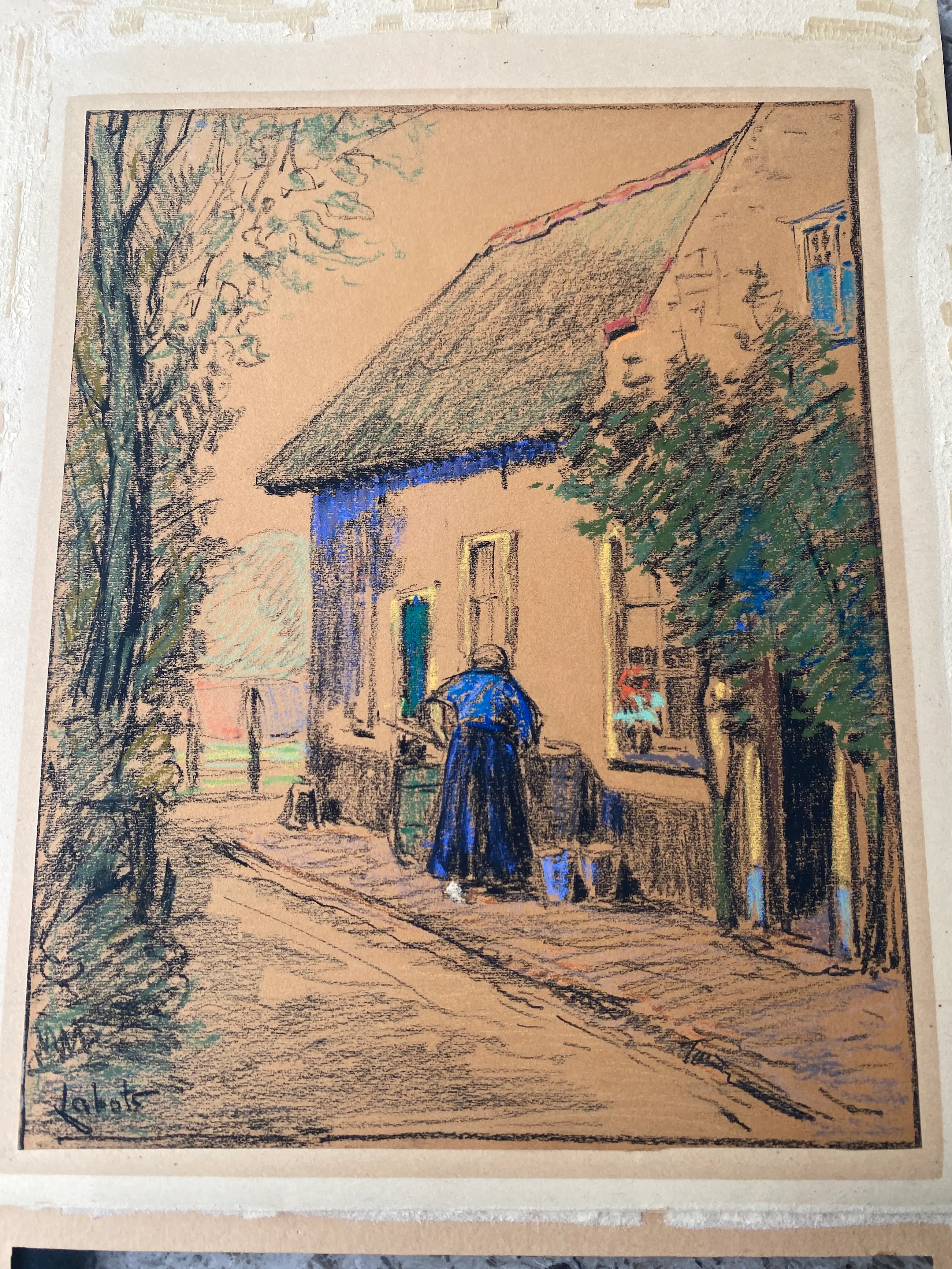 ‘Huisje te Veere’ Pastel / krijt tekening op karton van Gerrit David Labots (1869-1959)