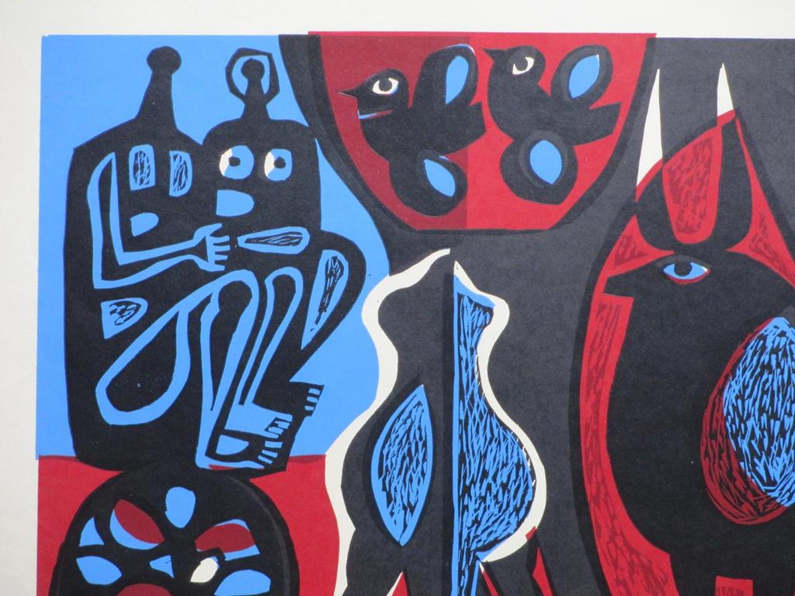 Krachtige kleurenlinosnede door Gerrit de Morée.